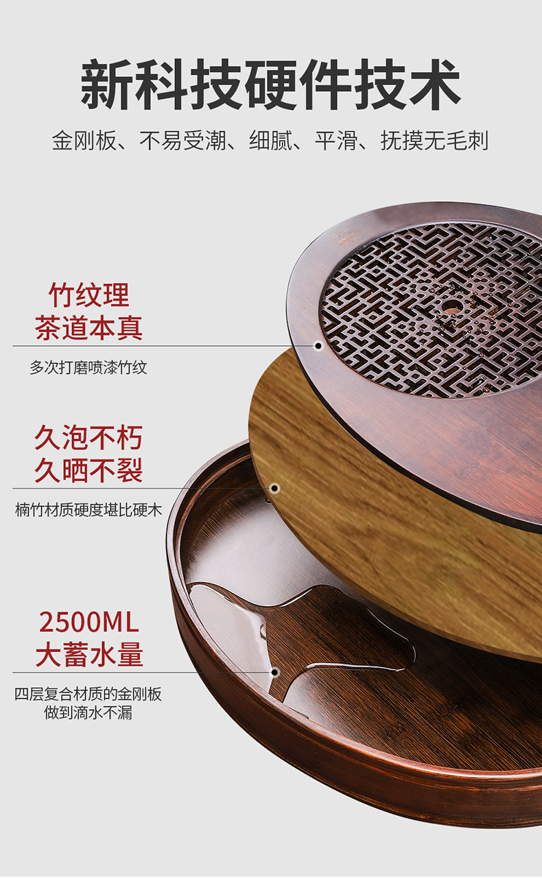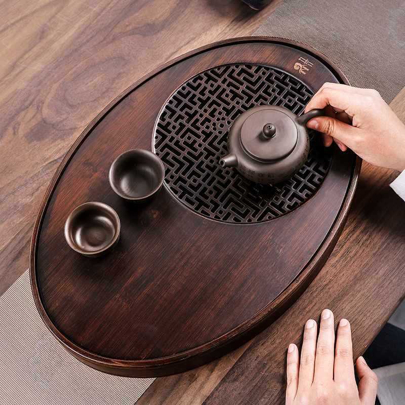 ✅ 2025 새로운 차 트레이 가정용 작은 차 테이블 대나무 차 트레이 물 저장 차 세트 라운드 사무실 단단한 차