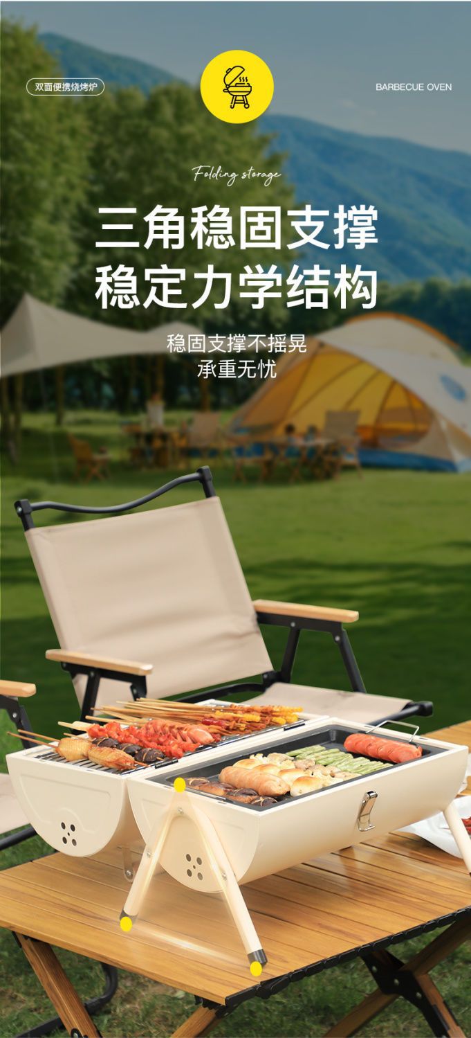 스토브 바베큐 그릴 바베큐 휴대용 다기능 가정용 굴뚝 바베큐 그릴 숯 야외 캠핑 양면스토어 가기