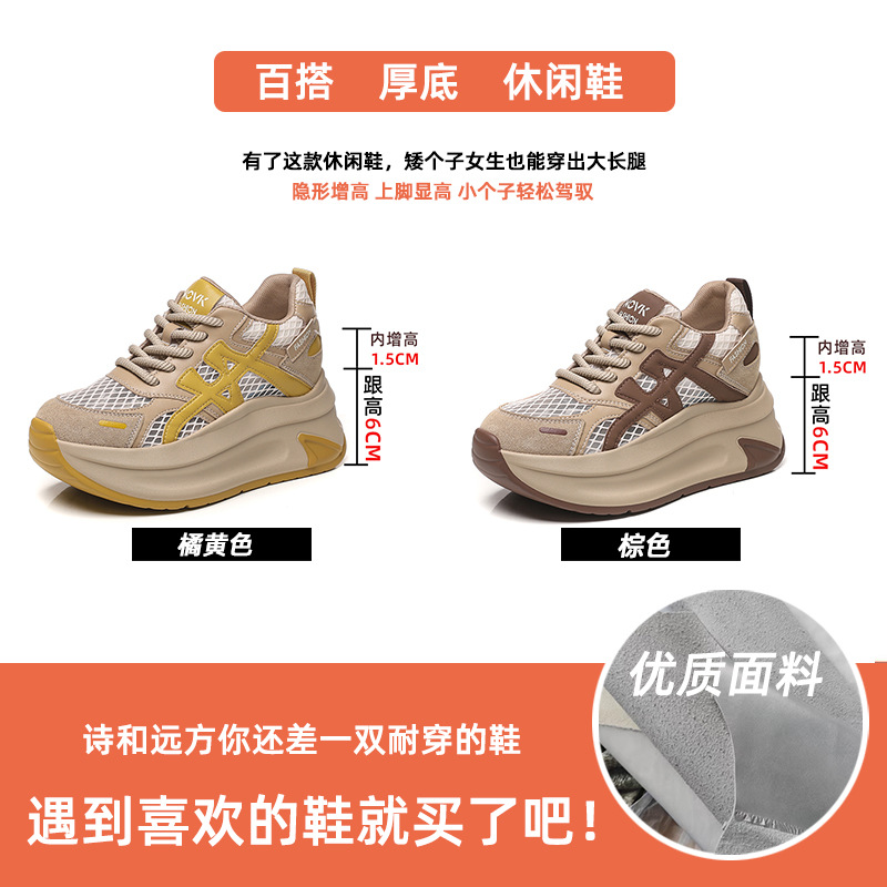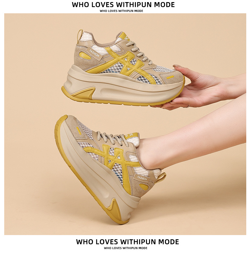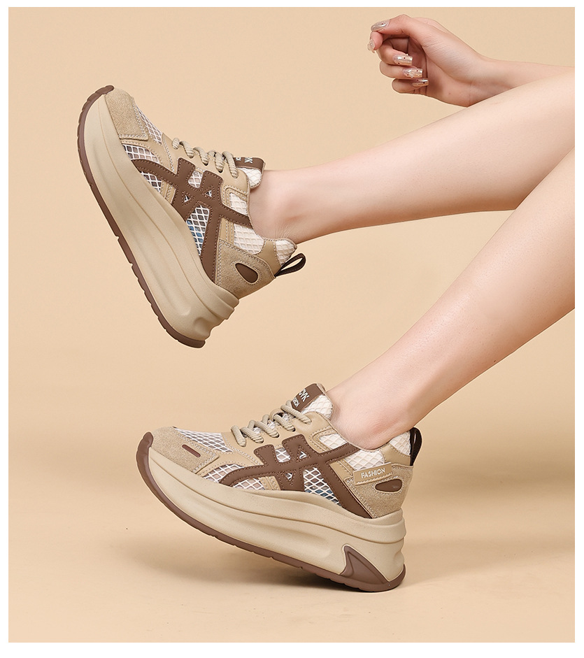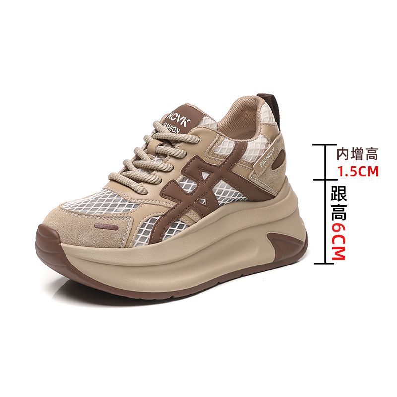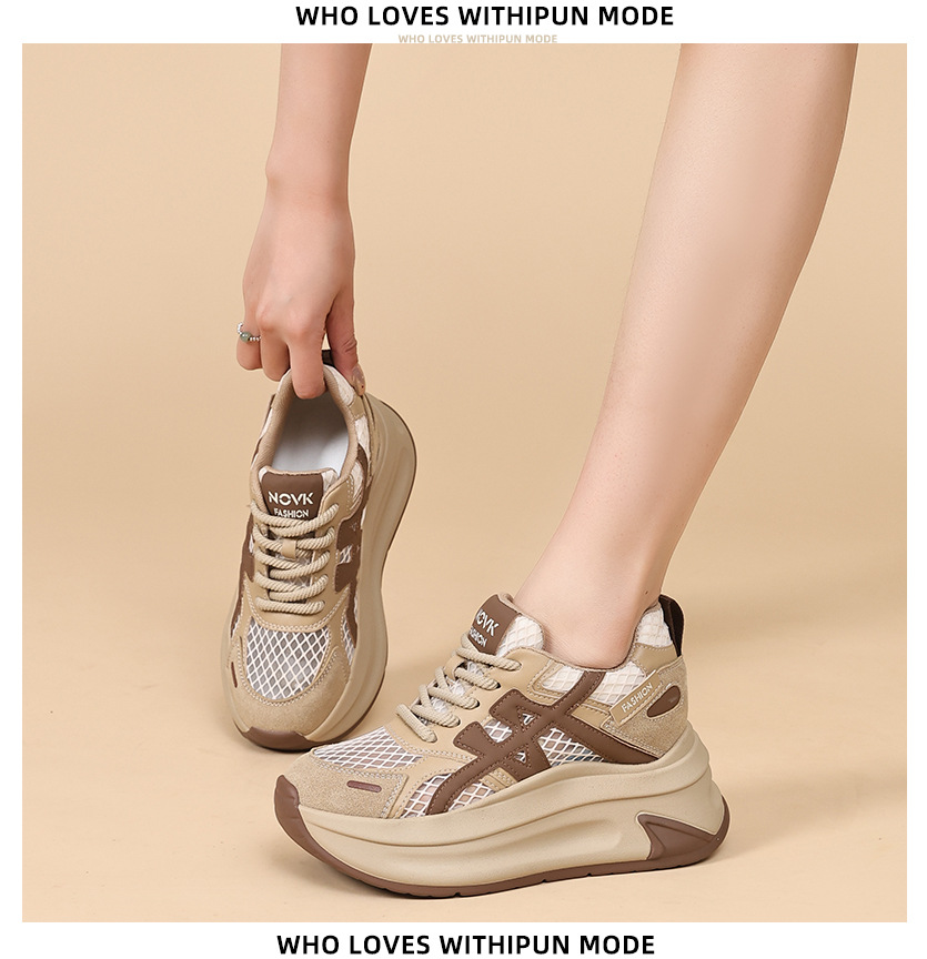 메쉬 소재 통기성 8CM 키높이 폴리우레탄 밑창 여성용 런닝화, 봄 여름 신상 만능 스포츠 캐주얼화스토어 가기