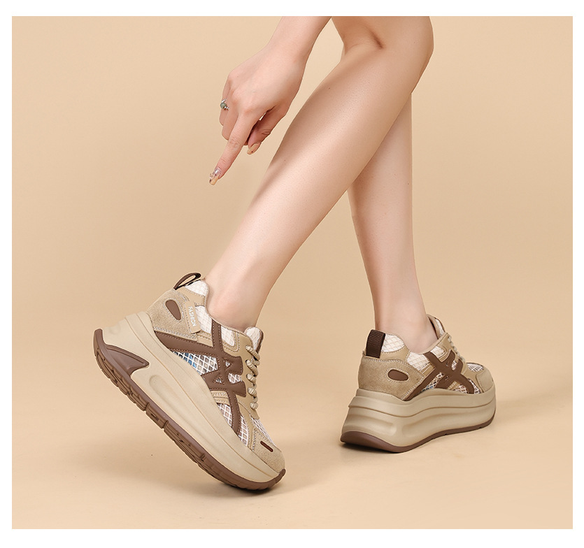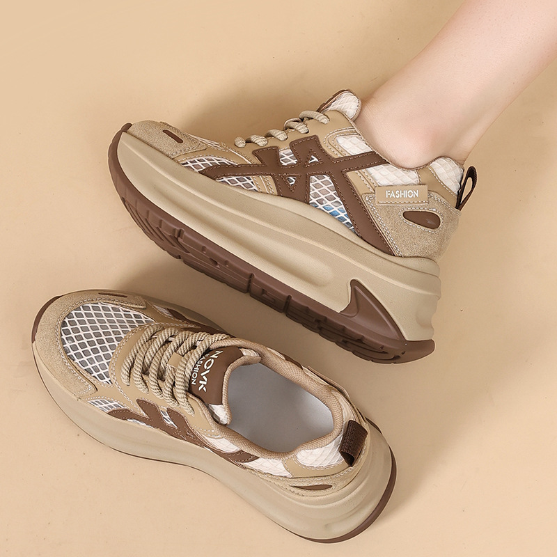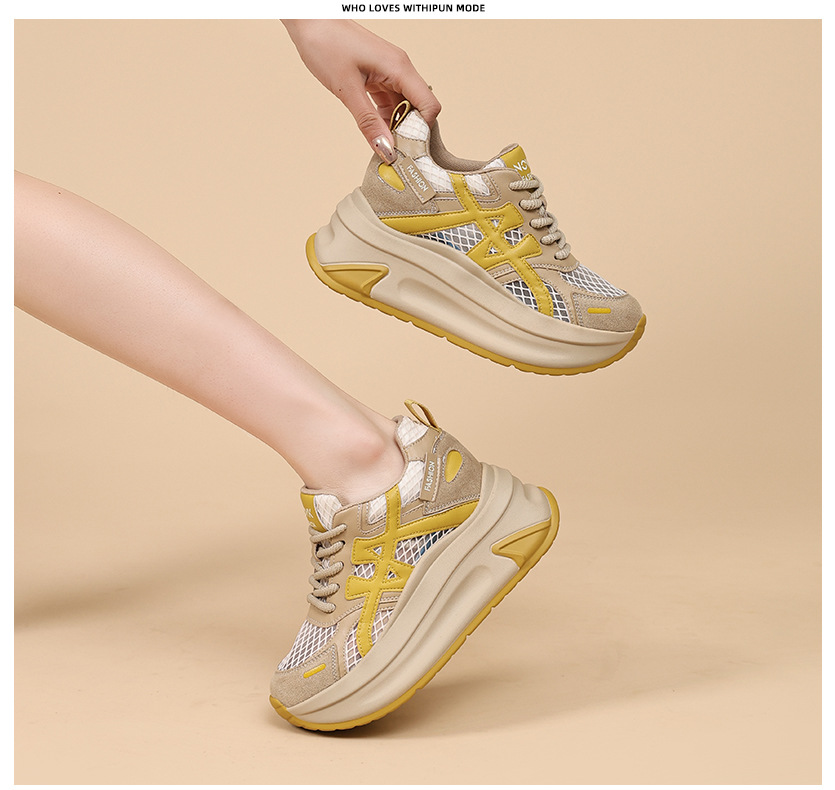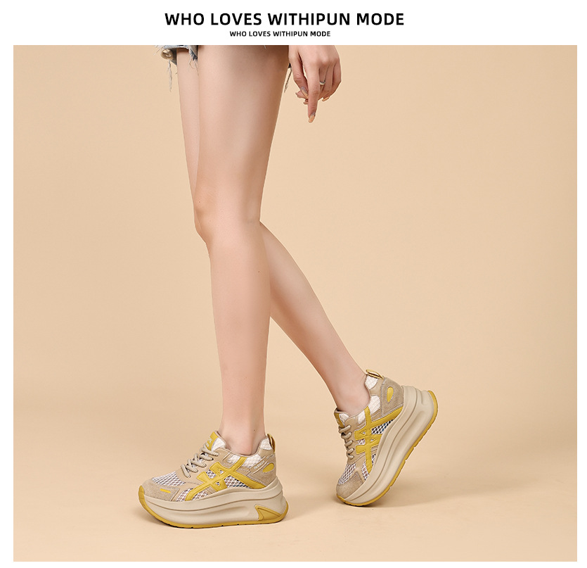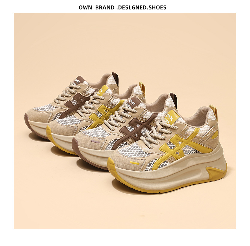메쉬 소재 통기성 8CM 키높이 폴리우레탄 밑창 여성용 런닝화, 봄 여름 신상 만능 스포츠 캐주얼화스토어 가기