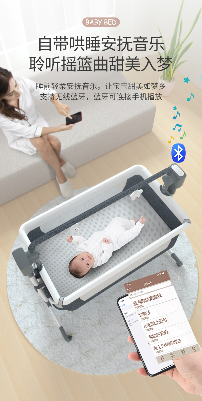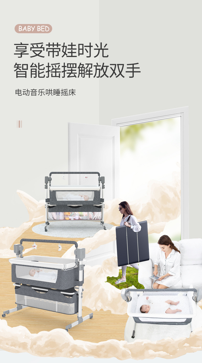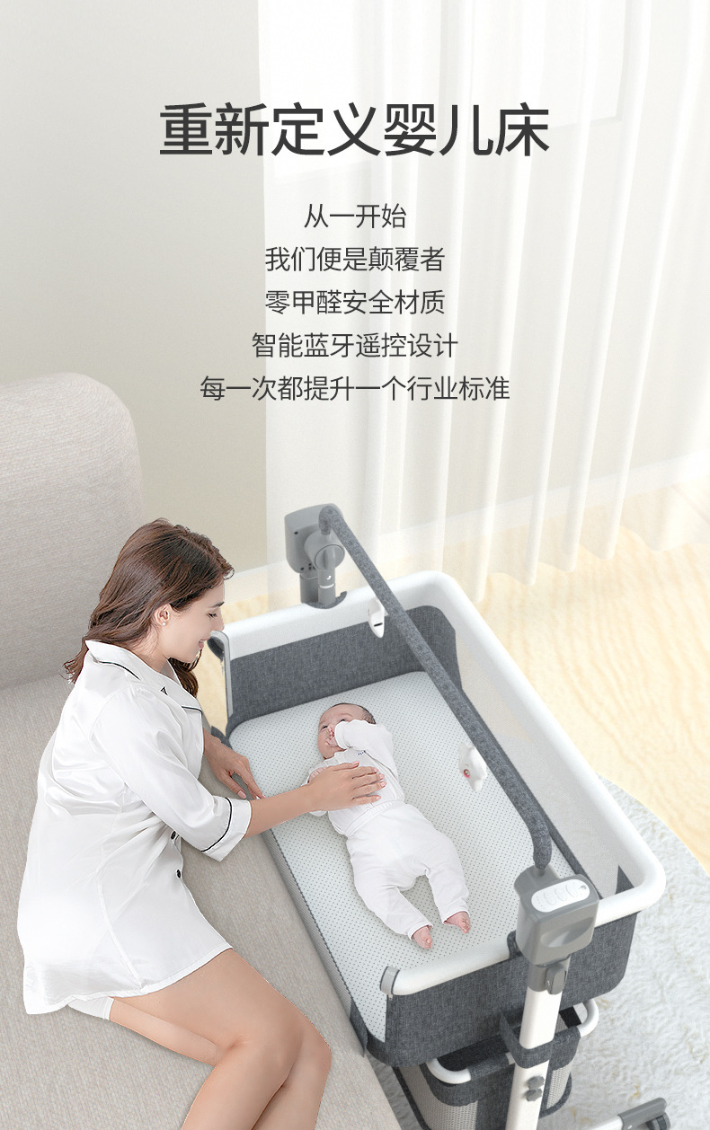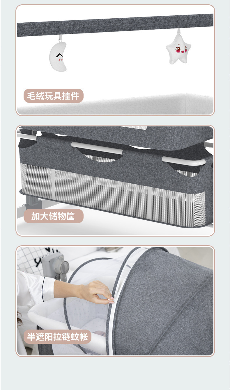 국경 간 아기 다기능 전기 요람 흔들 의자 신생아 지능형 아기 침대 옆 침대 수면 바구니
