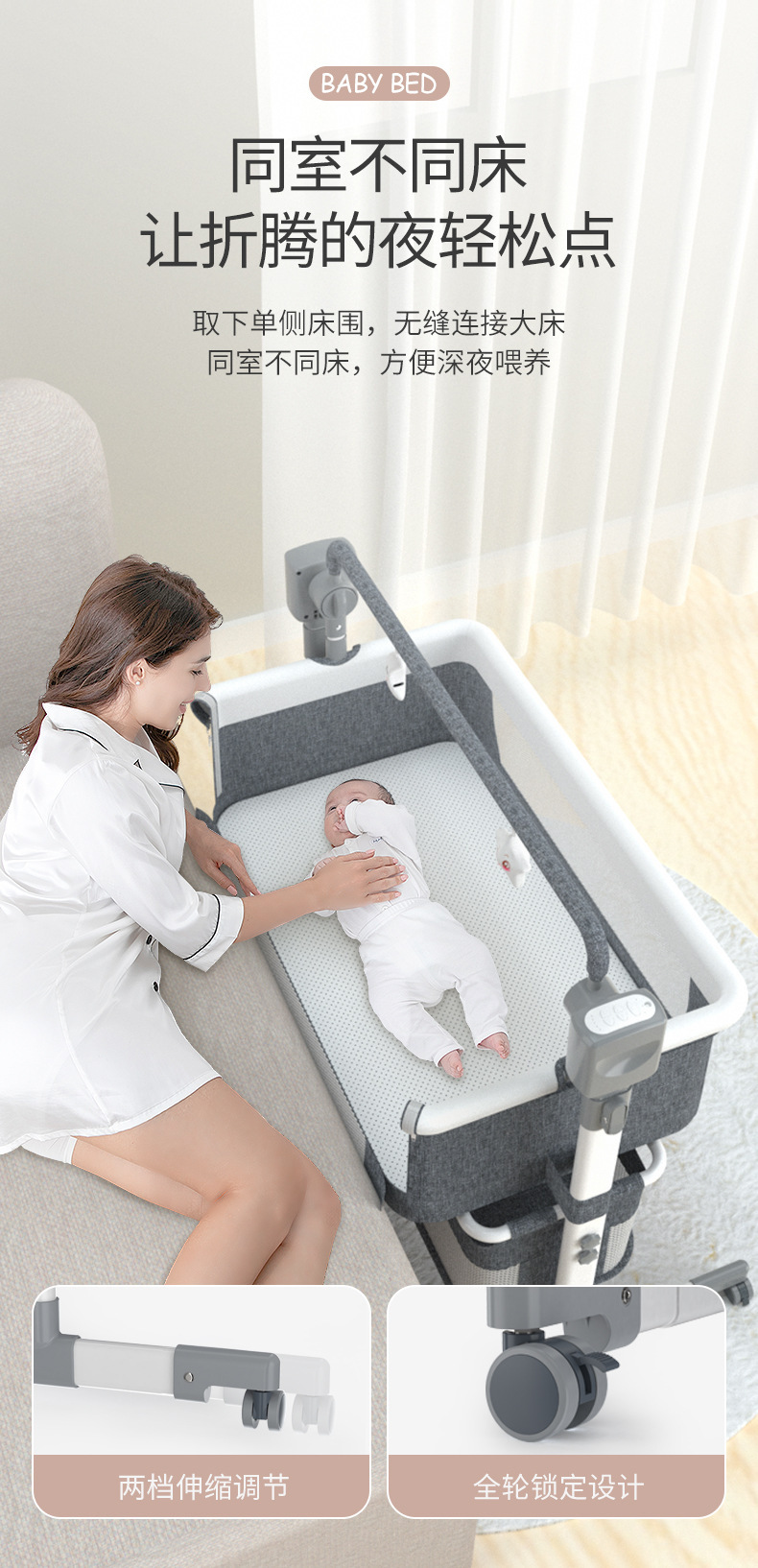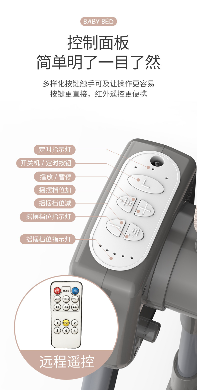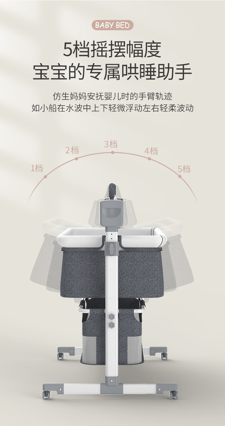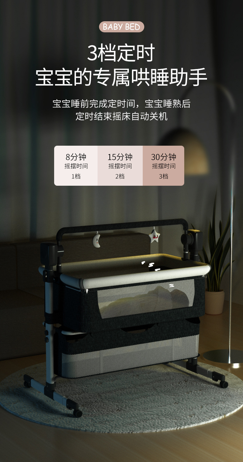 국경 간 아기 다기능 전기 요람 흔들 의자 신생아 지능형 아기 침대 옆 침대 수면 바구니
