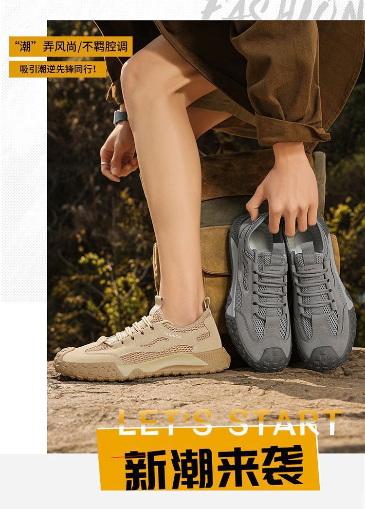 남성용 신발 2025 여름 통기성 메쉬 작업복 스타일 캐주얼 스포츠 신발 야외 미끄럼 방지 내마모성 신발 노동 보호 신발스토어 가기