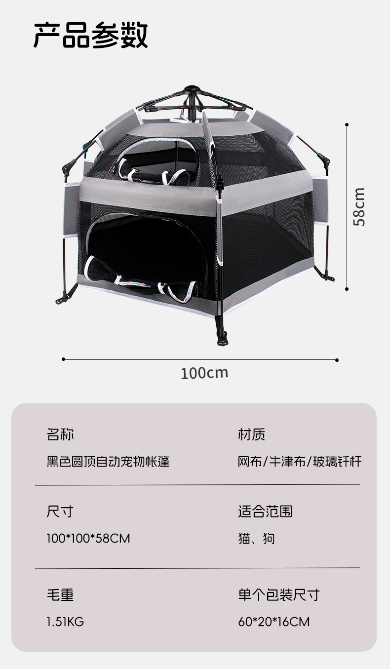 맞춤형 케이지 텐트 검정색 자동 소스 공장 애완 동물 고양이 개집 통기성 사계절 실내 실외 메쉬스토어 가기