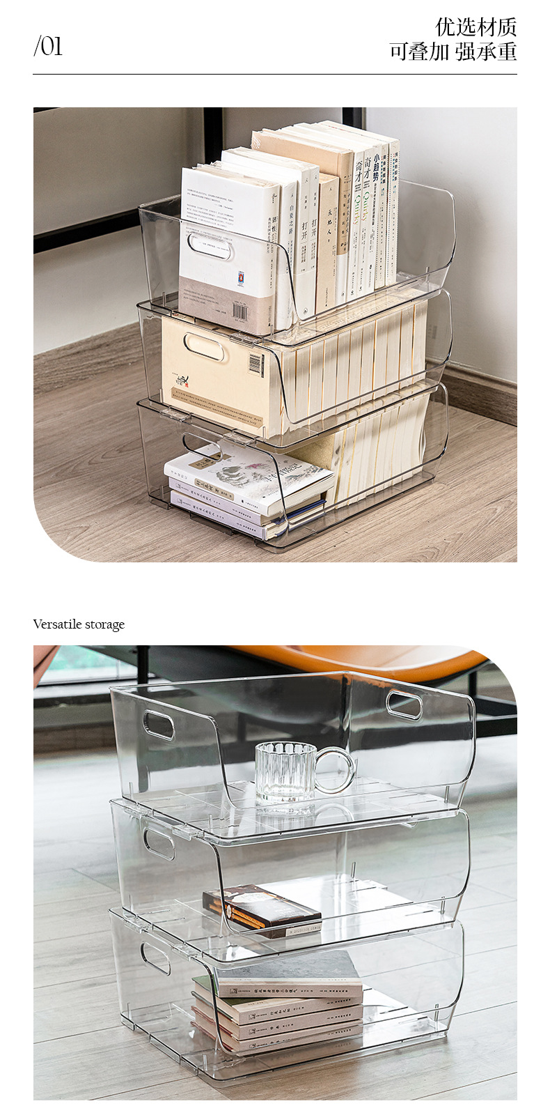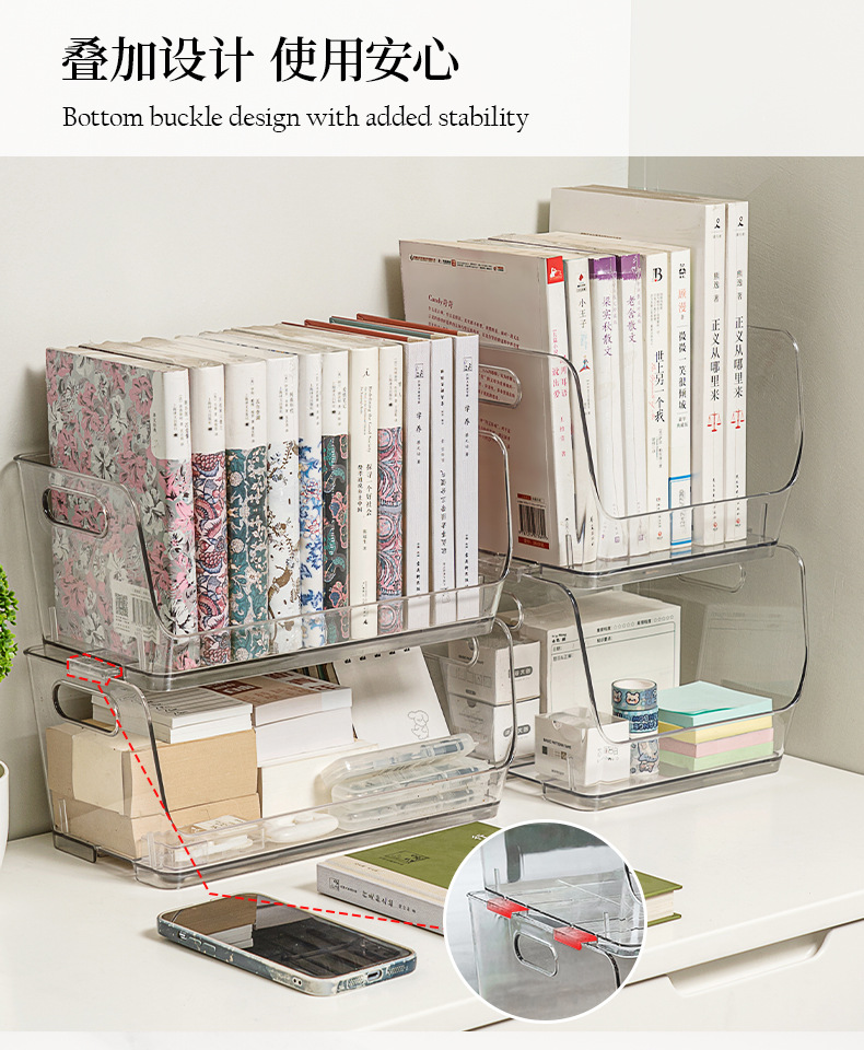 투명 책 보관 상자 대용량 사무실 데스크탑 쌓을 수있는 보관함 책상 문구 책장 정리 상자스토어 가기