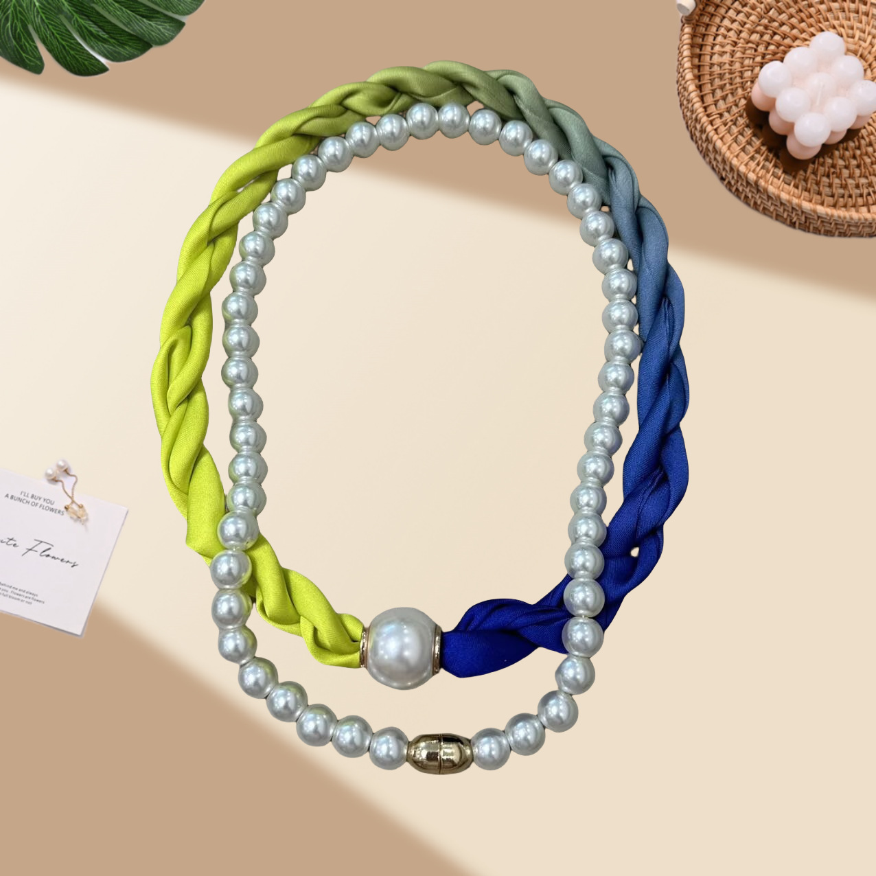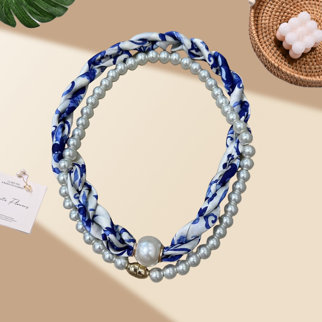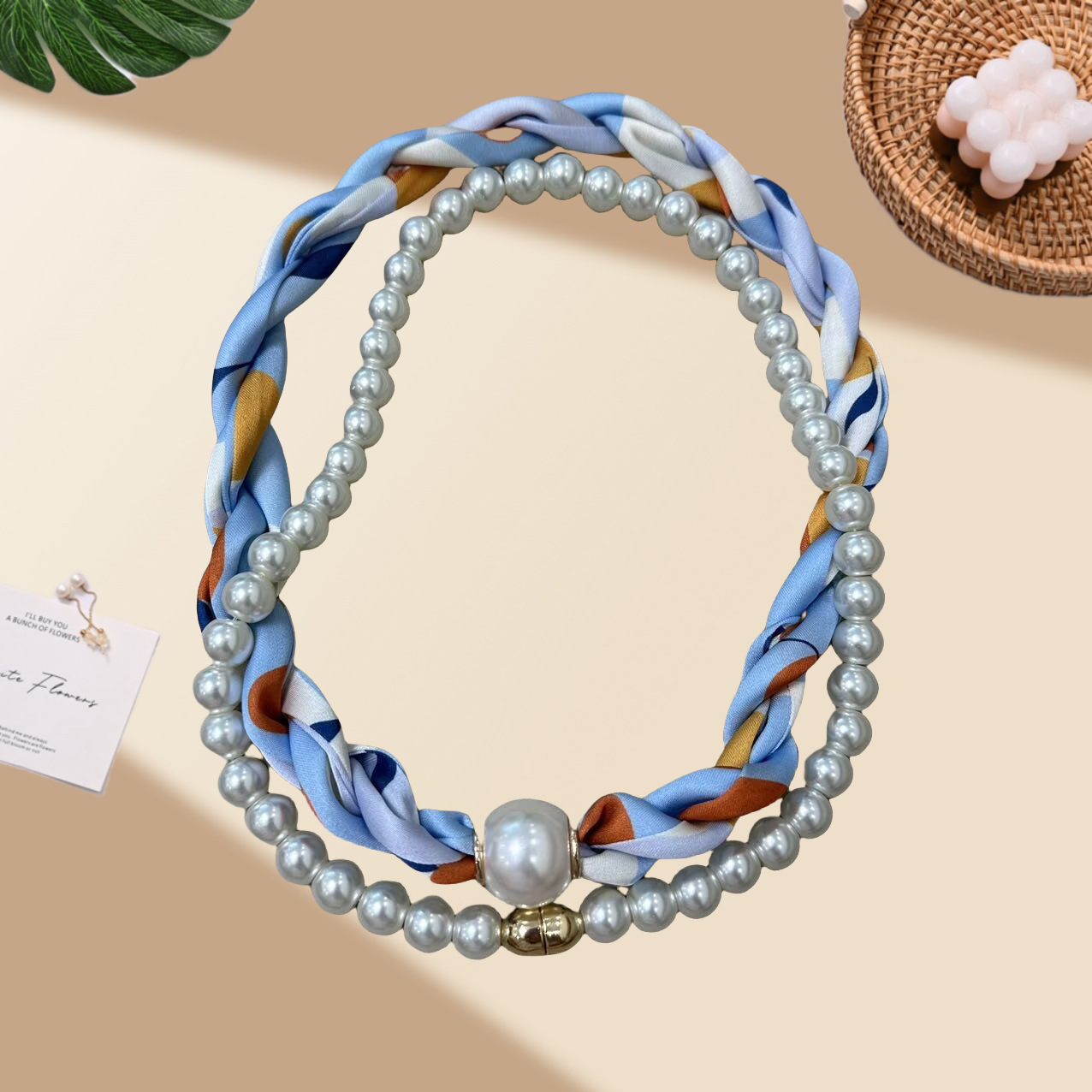 • 트위스트 마그네틱 실크 스카프 목걸이 03 + 진주 체인