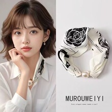 자석 버클 진주 목걸이, 여성용 좁고 긴 실크 스카프, 셔츠 스카프와 매치한 넥 워머, 고급 크로스보더스토어 가기