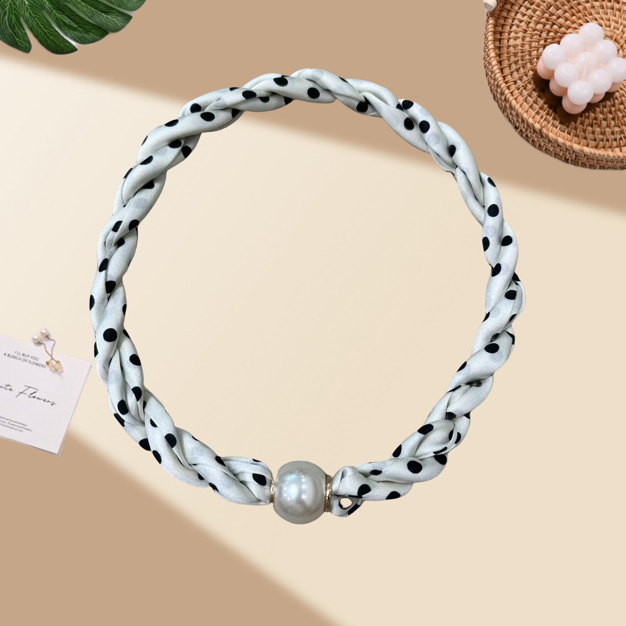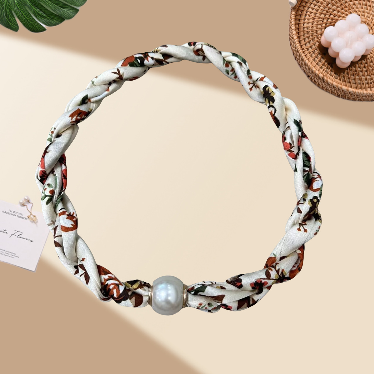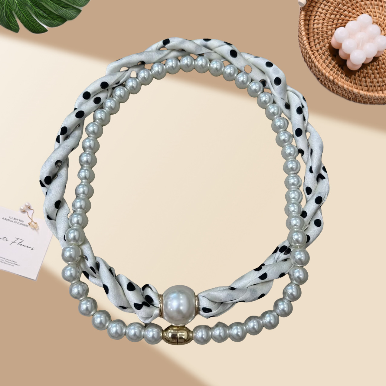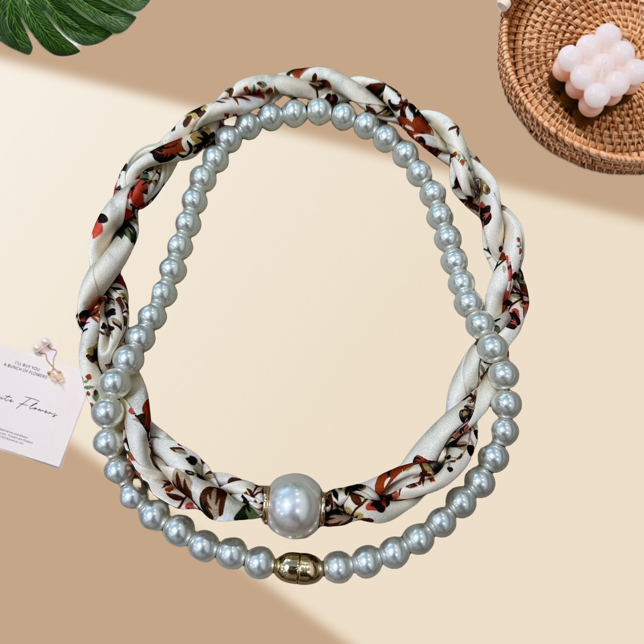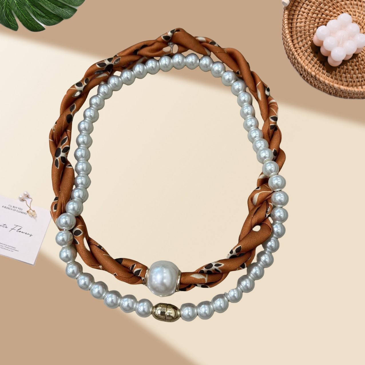 • 트위스트 마그네틱 실크 스카프 목걸이 01 + 진주 체인