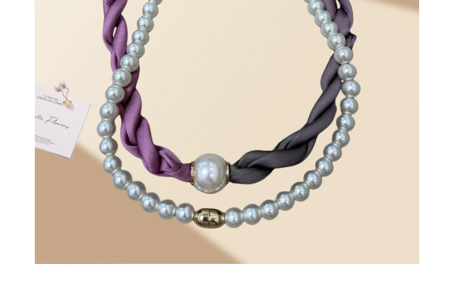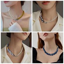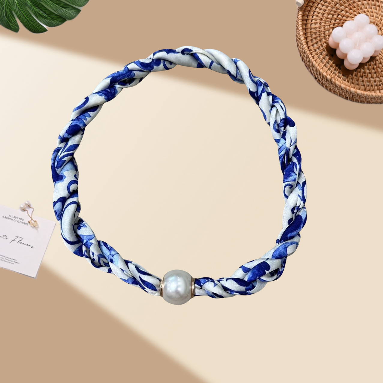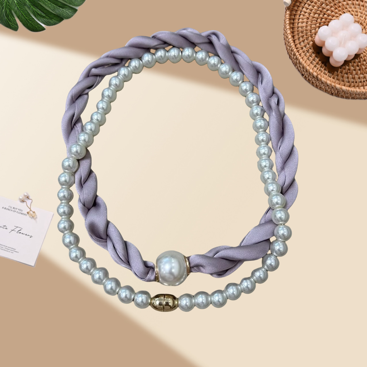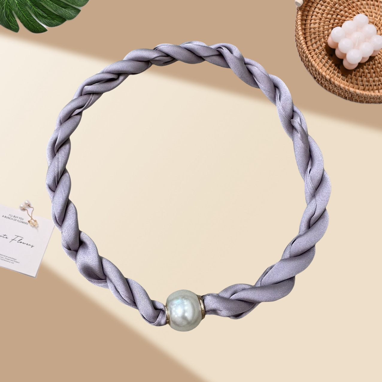 • 트위스트 마그네틱 실크 스카프 목걸이 01 + 진주 체인