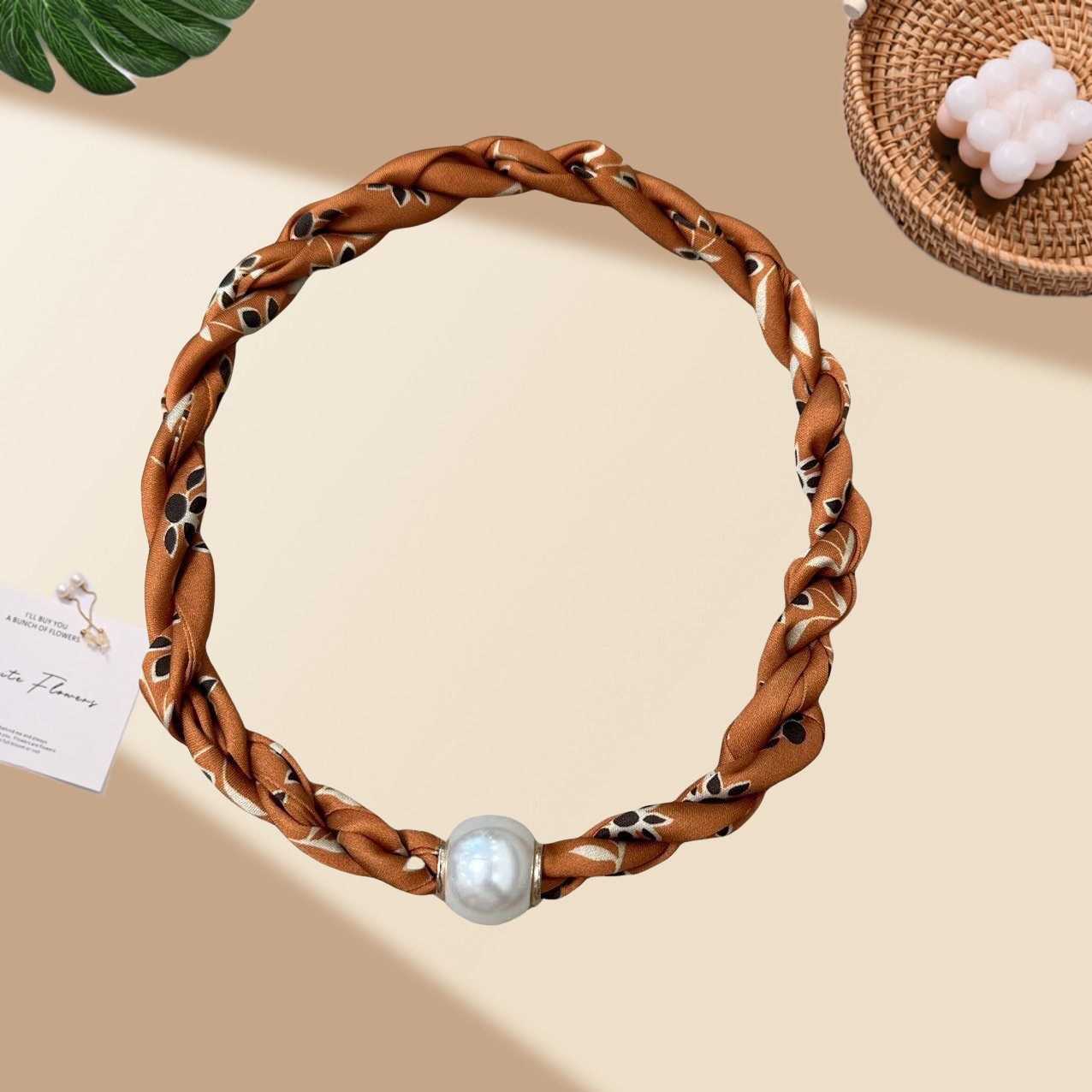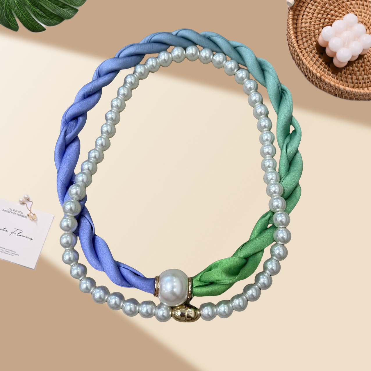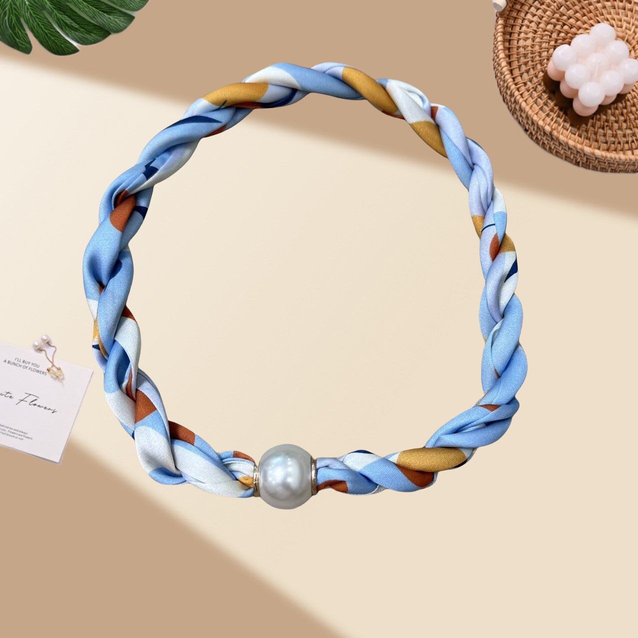 • 트위스트 마그네틱 실크 스카프 목걸이 02+진주 체인