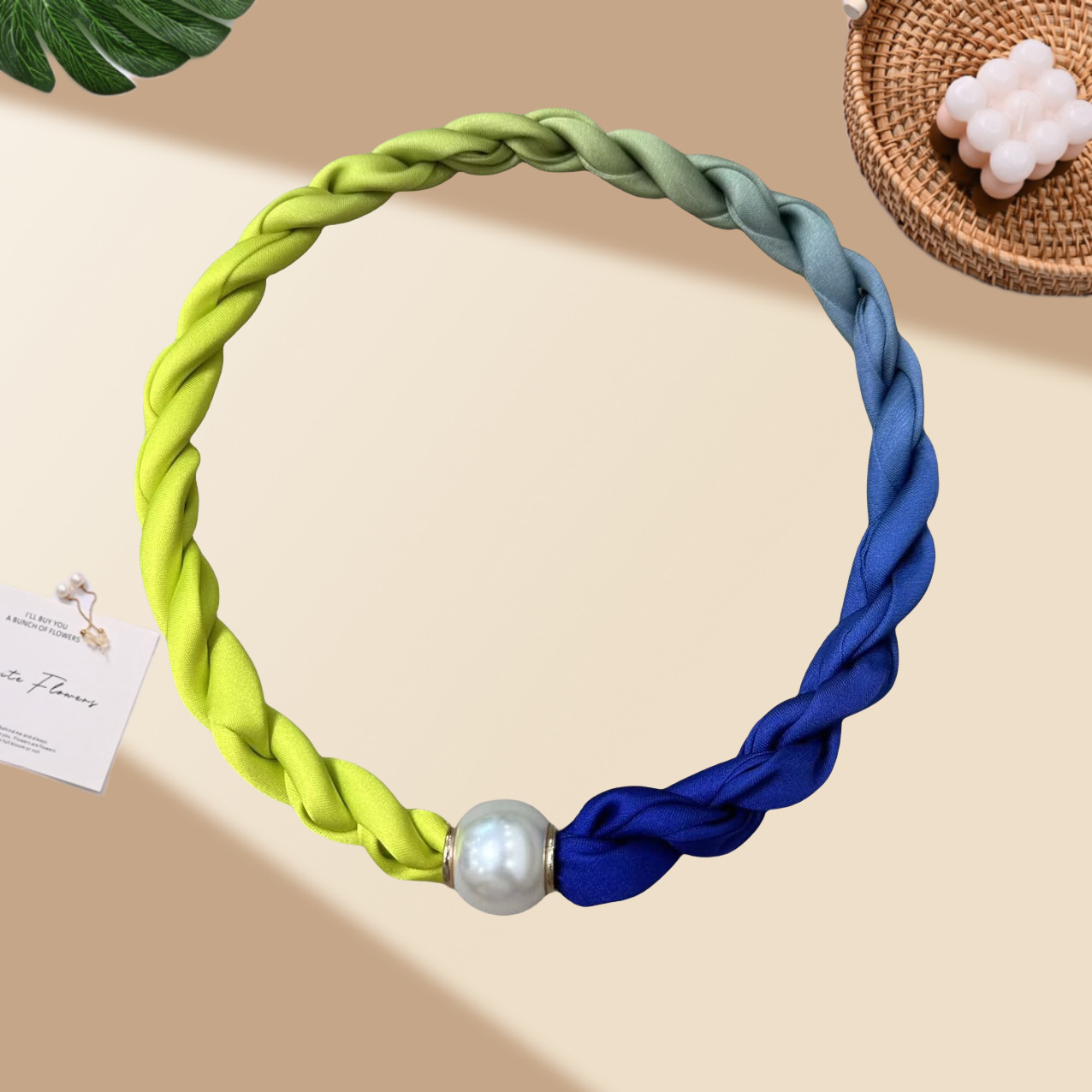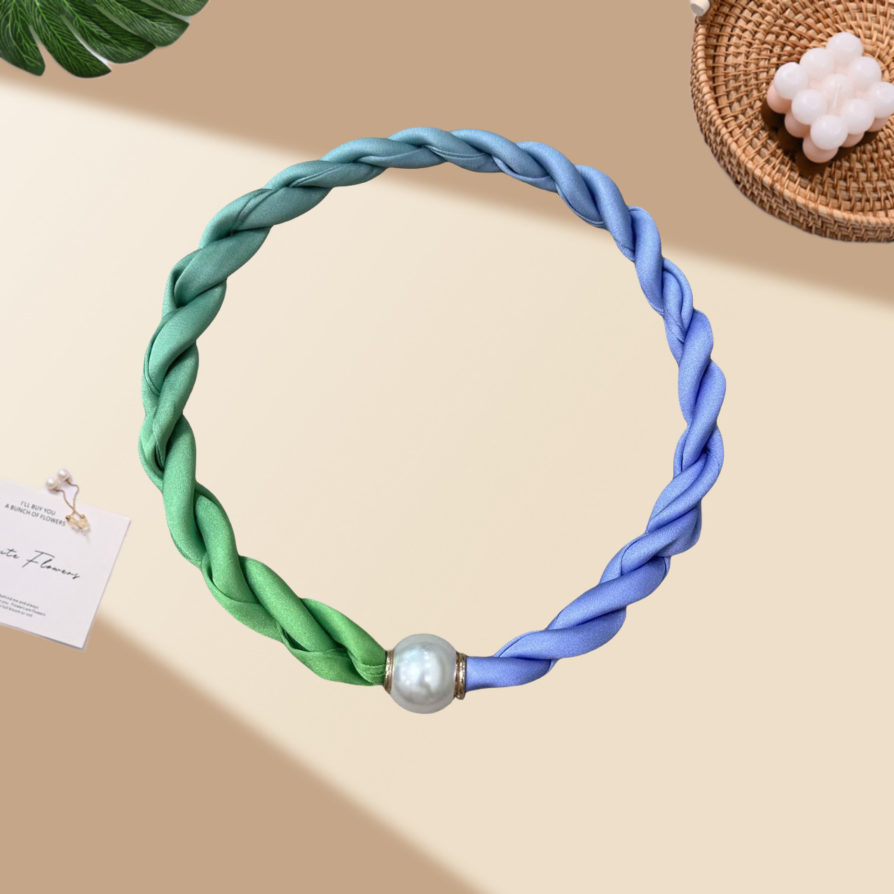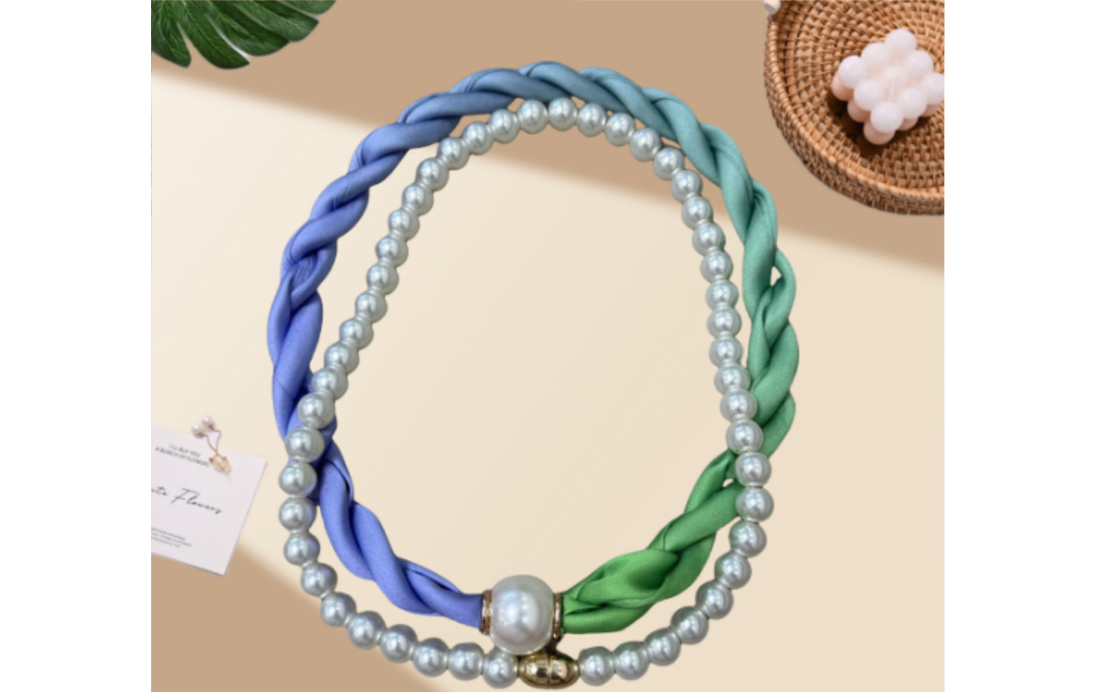 • 트위스트 마그네틱 실크 스카프 목걸이 02+진주 체인