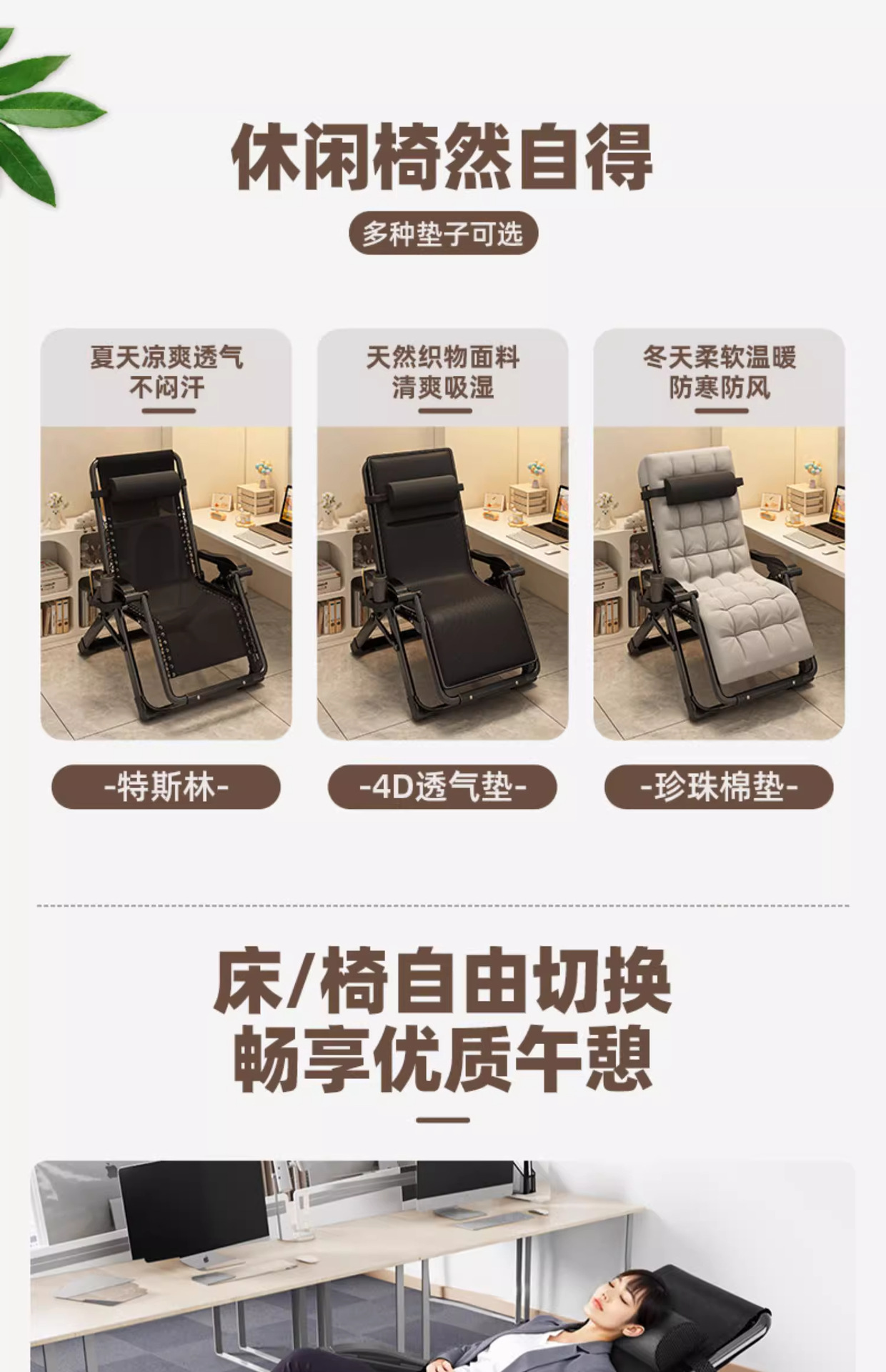 접이식 안락 의자 2025 새로운 앉고 자는 이중 목적 점심 휴식 침대 사무실 홈 발코니 노인 레저 등받이 안락 의자스토어 가기