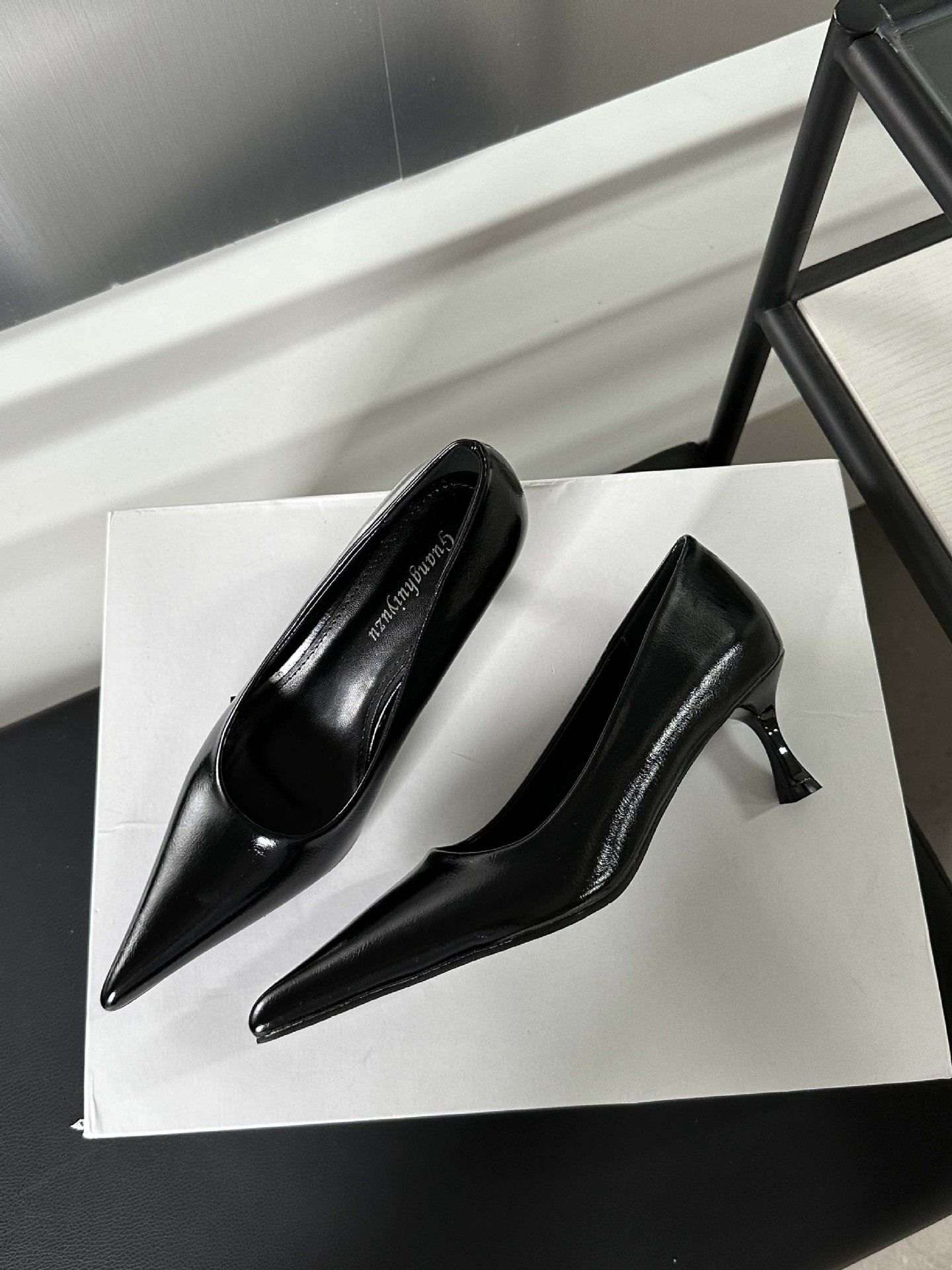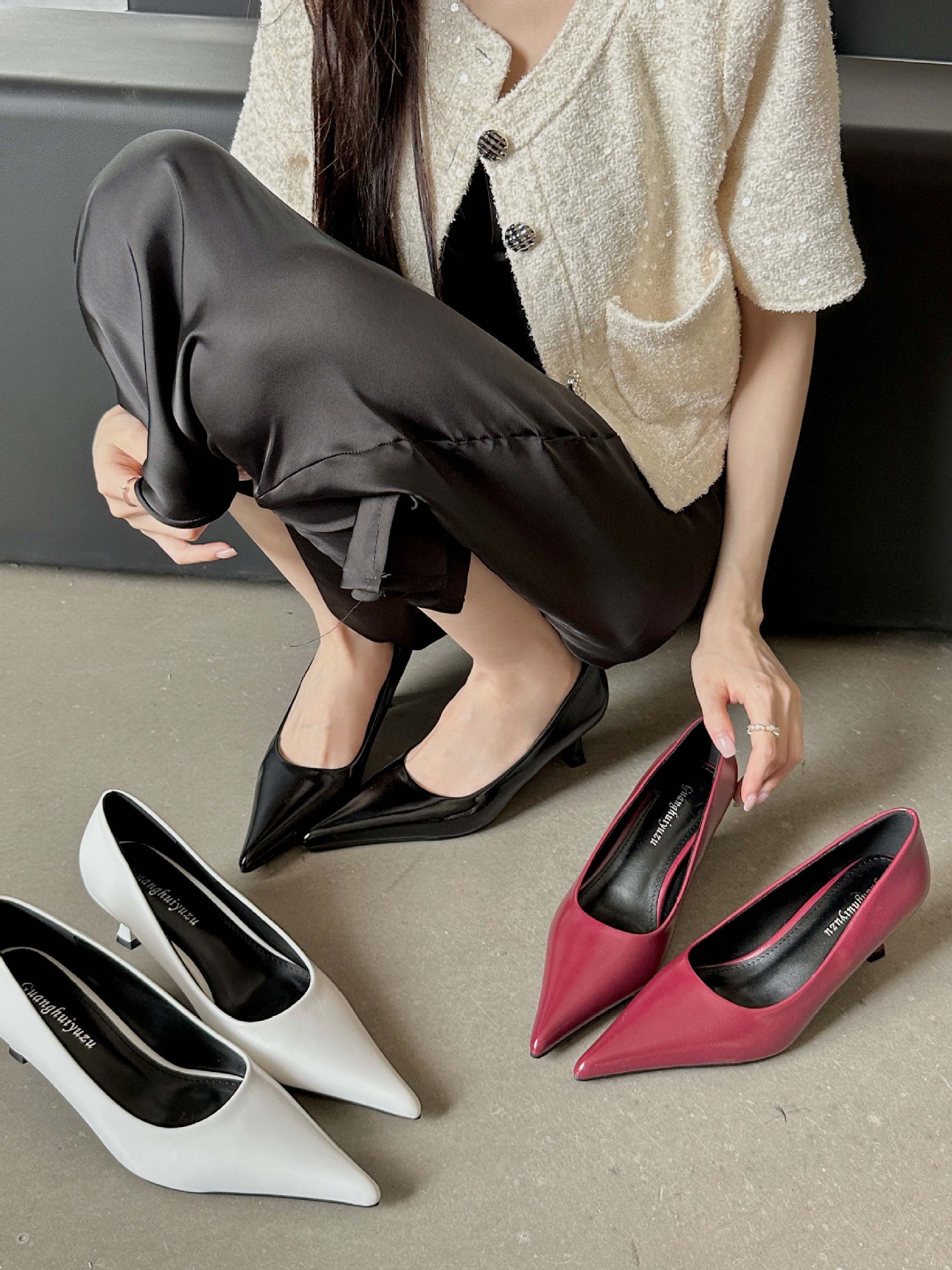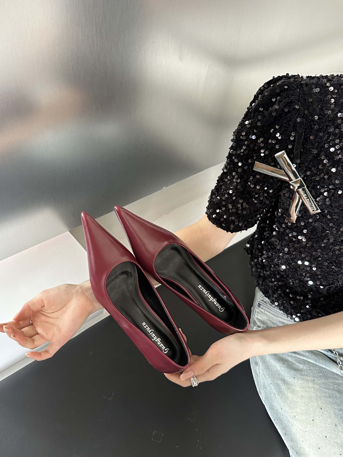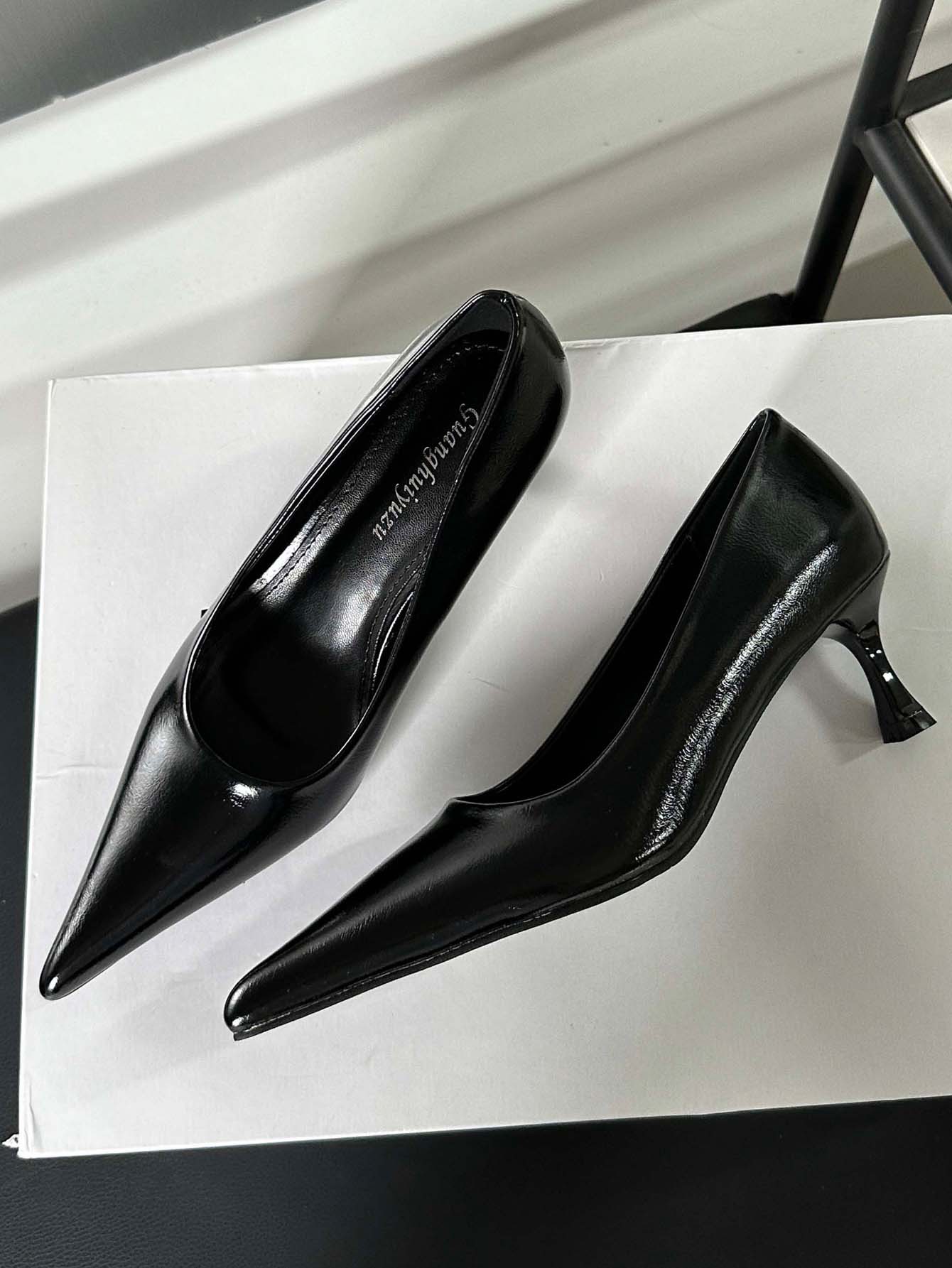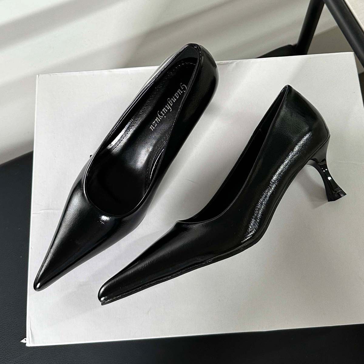 2025 새로운 봄, 가을 여성 신발 얕은 입 슬리밍 싱글 신발 하이힐 여성 뾰족한 발가락 스틸레토 힐스토어 가기