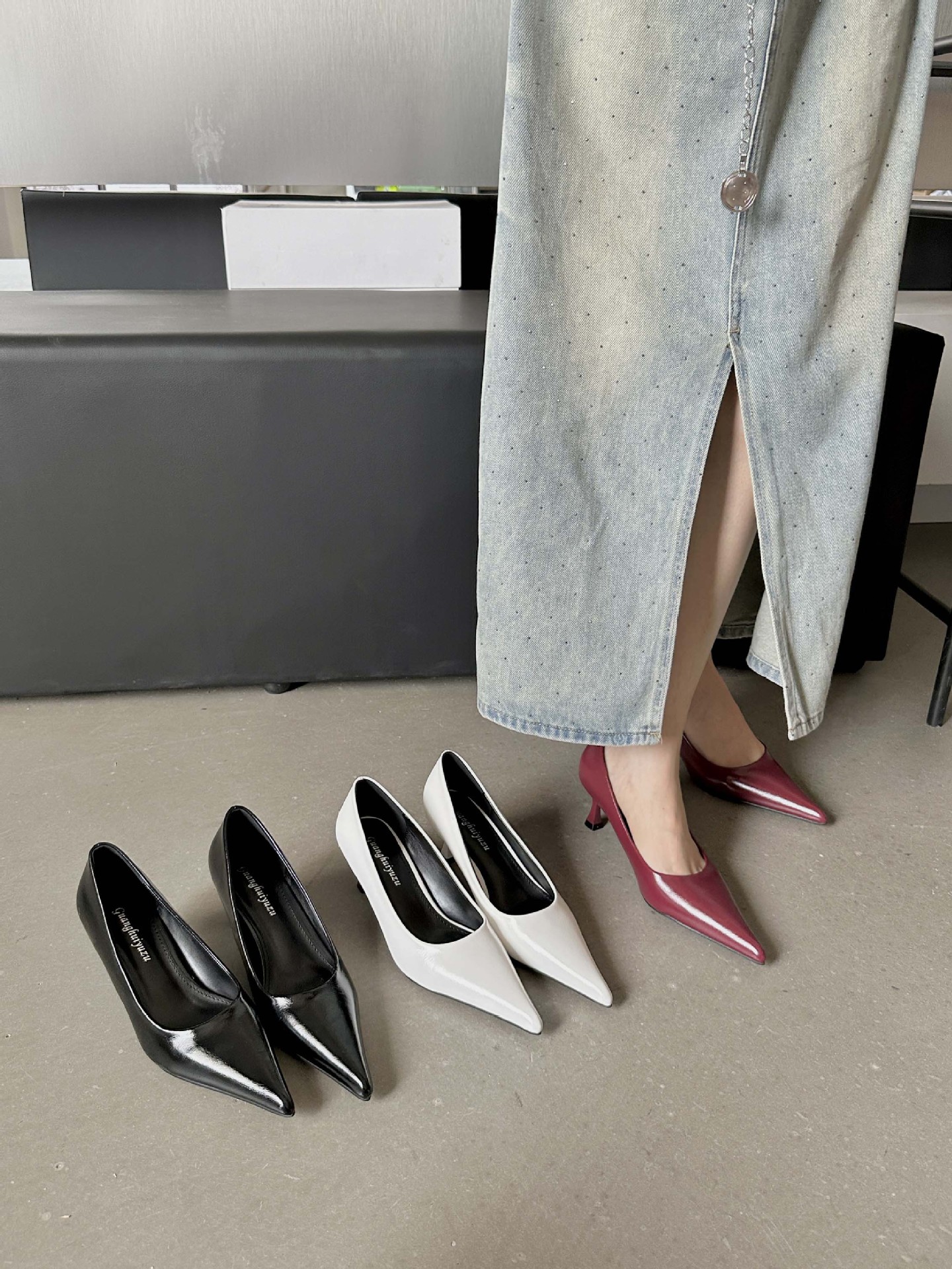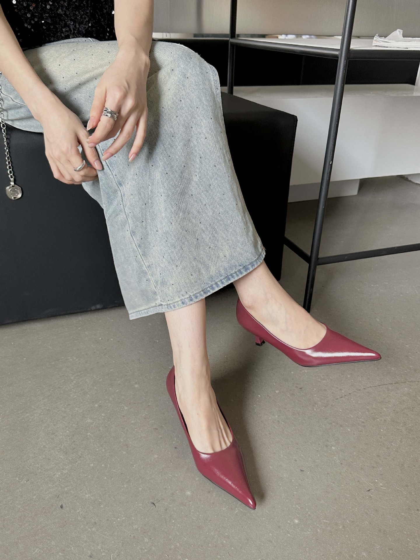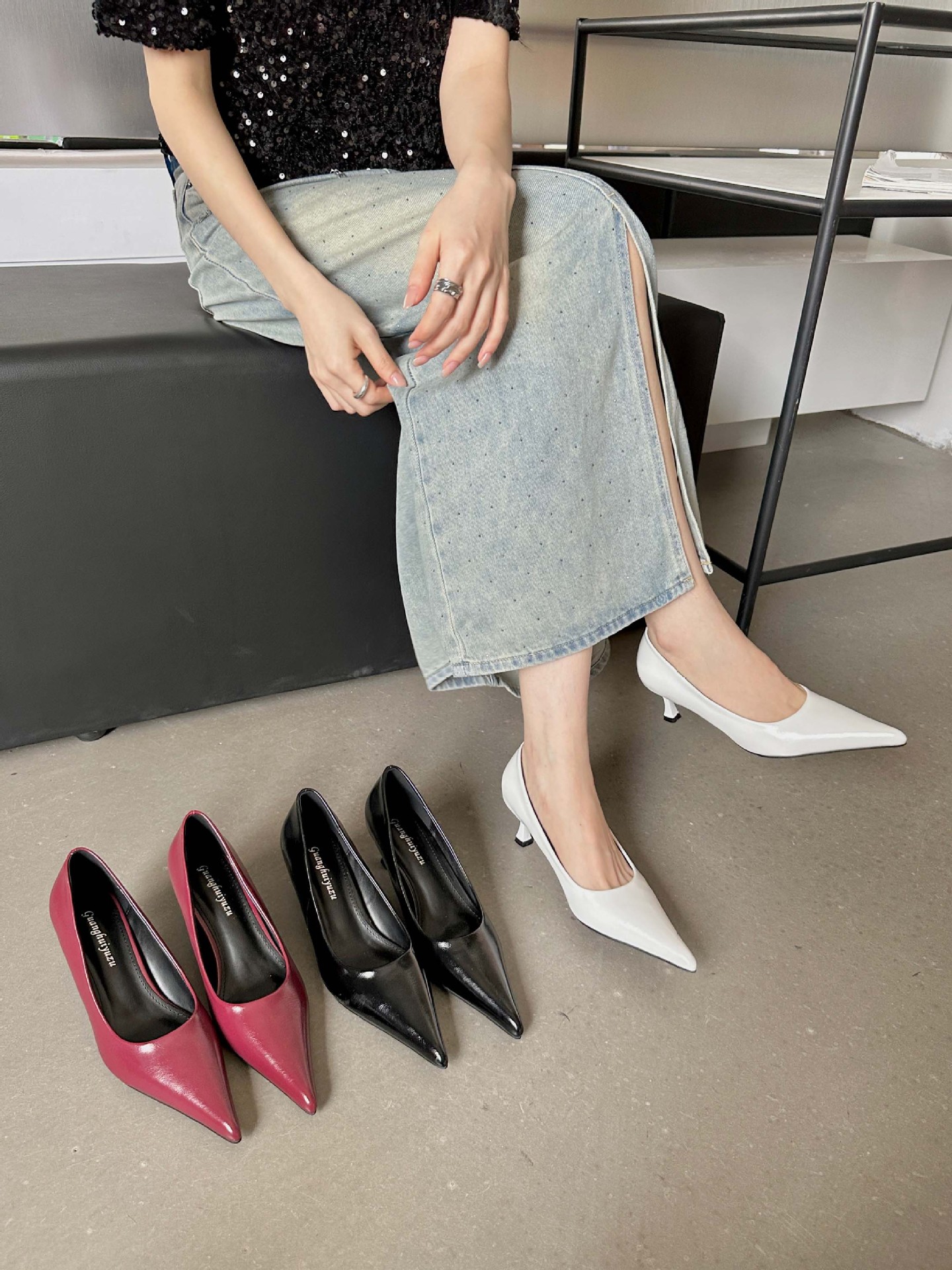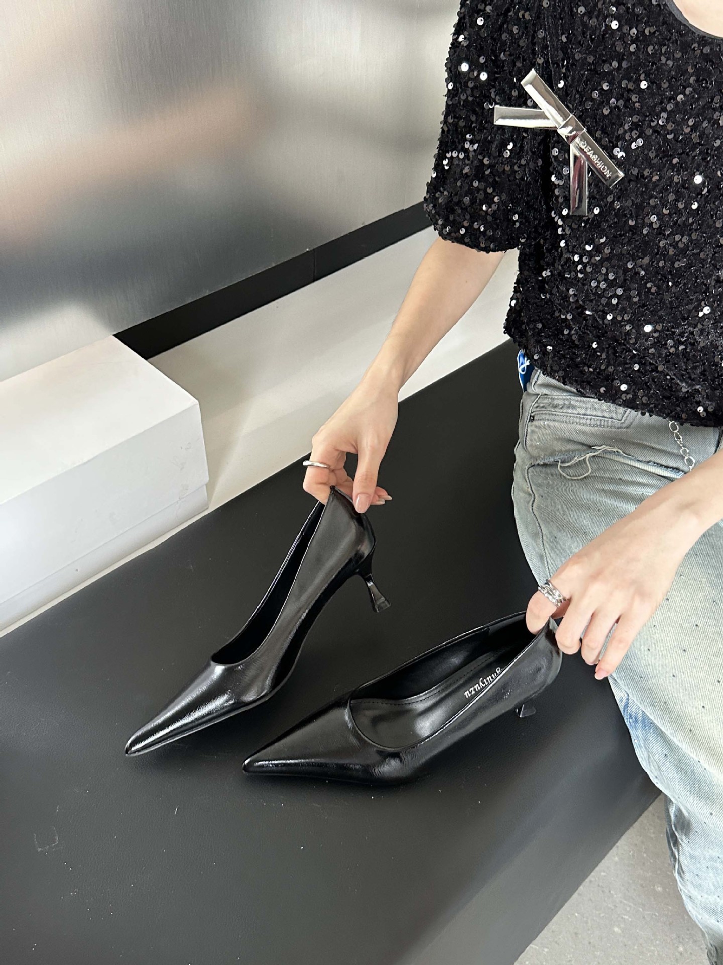 2025 새로운 봄, 가을 여성 신발 얕은 입 슬리밍 싱글 신발 하이힐 여성 뾰족한 발가락 스틸레토 힐스토어 가기