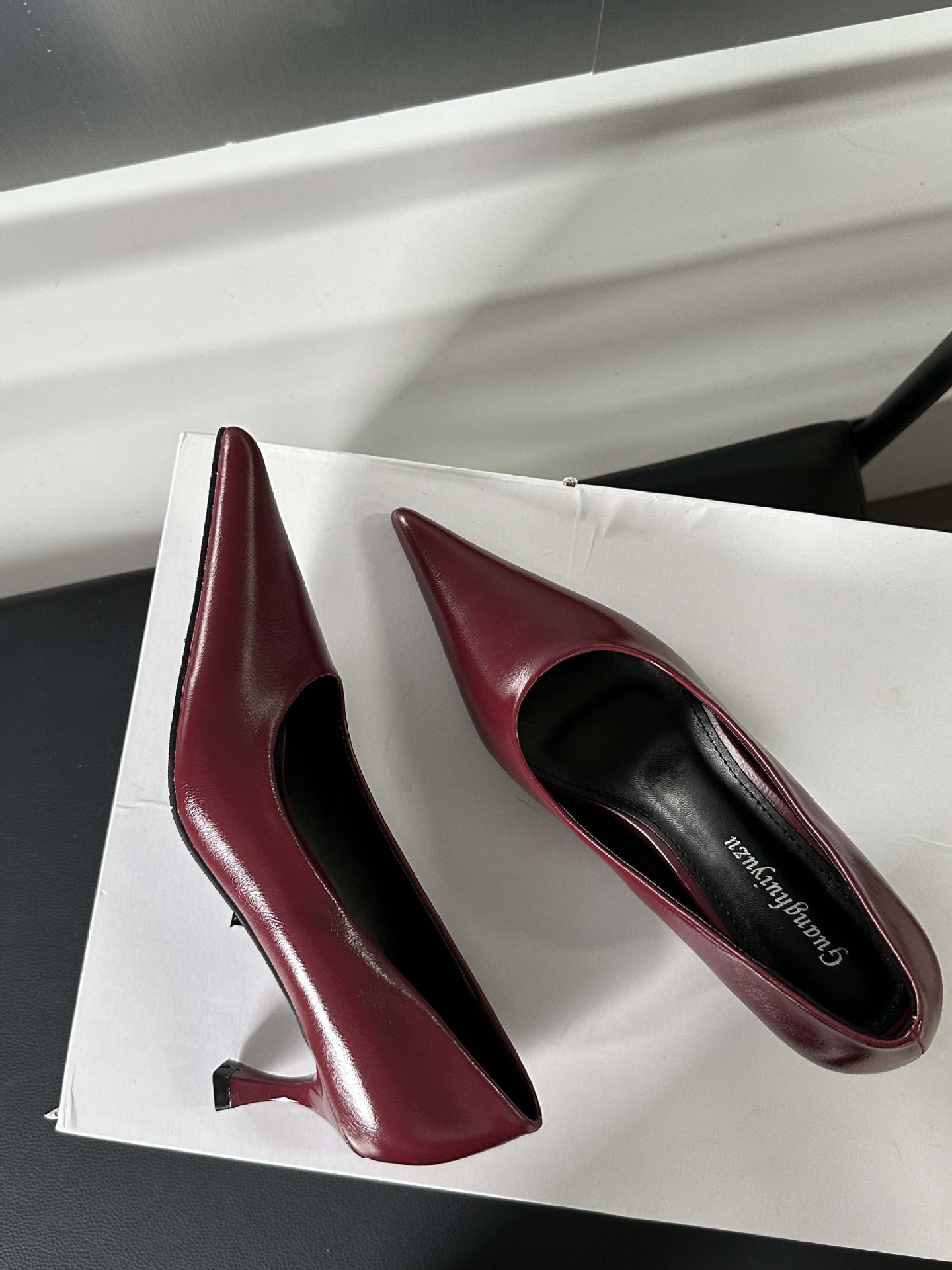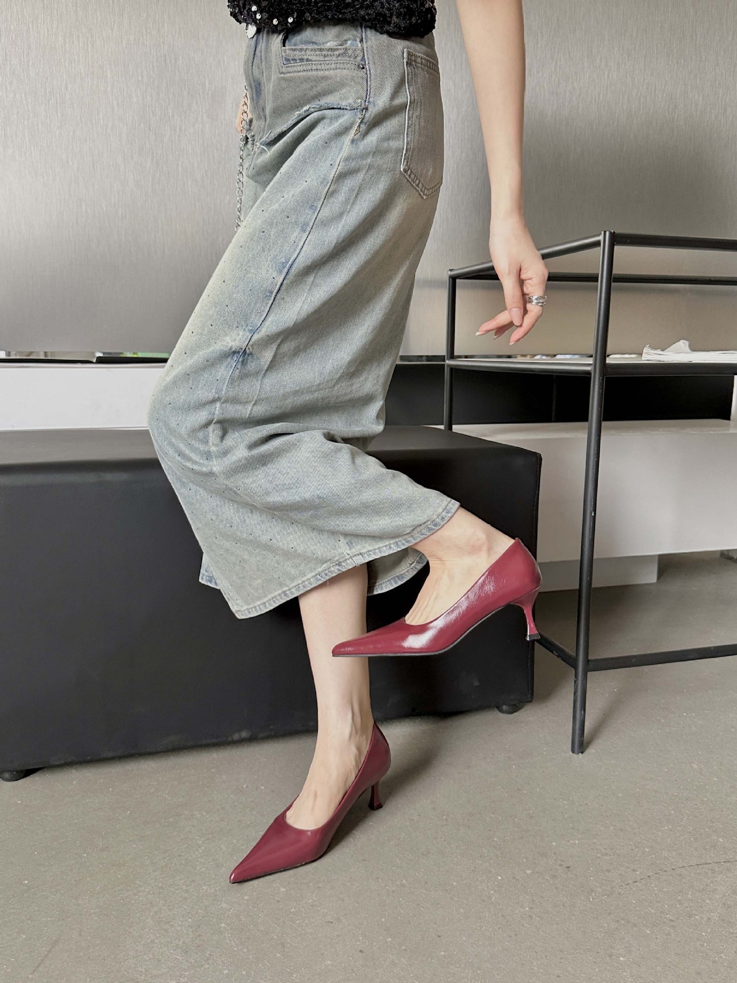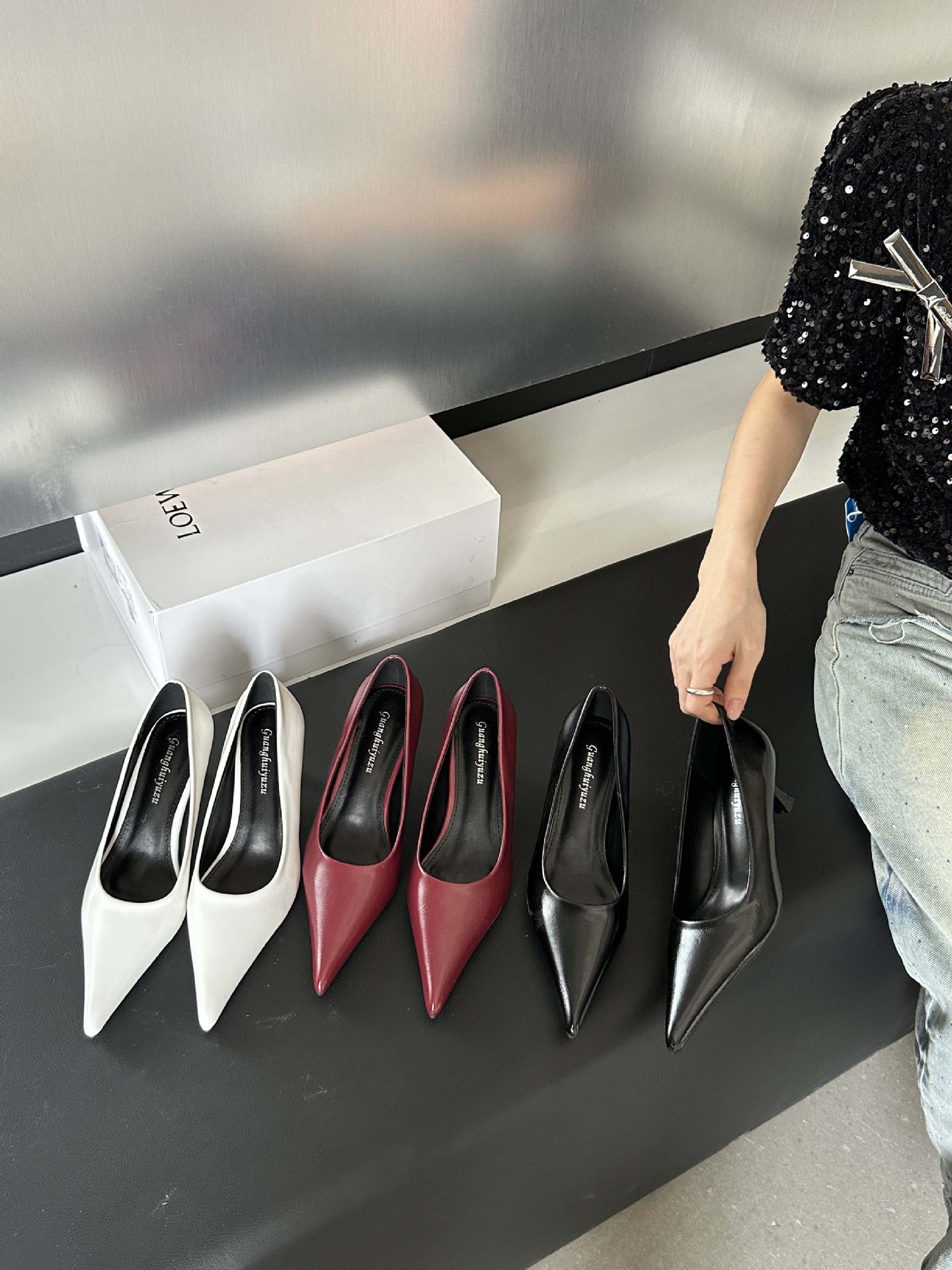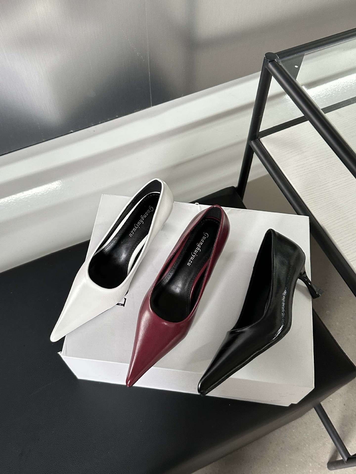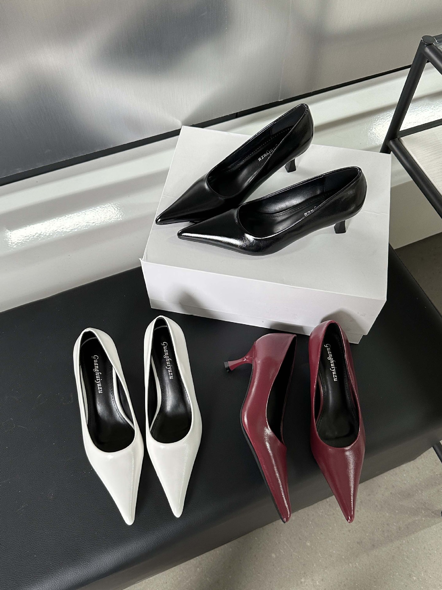 2025 새로운 봄, 가을 여성 신발 얕은 입 슬리밍 싱글 신발 하이힐 여성 뾰족한 발가락 스틸레토 힐스토어 가기