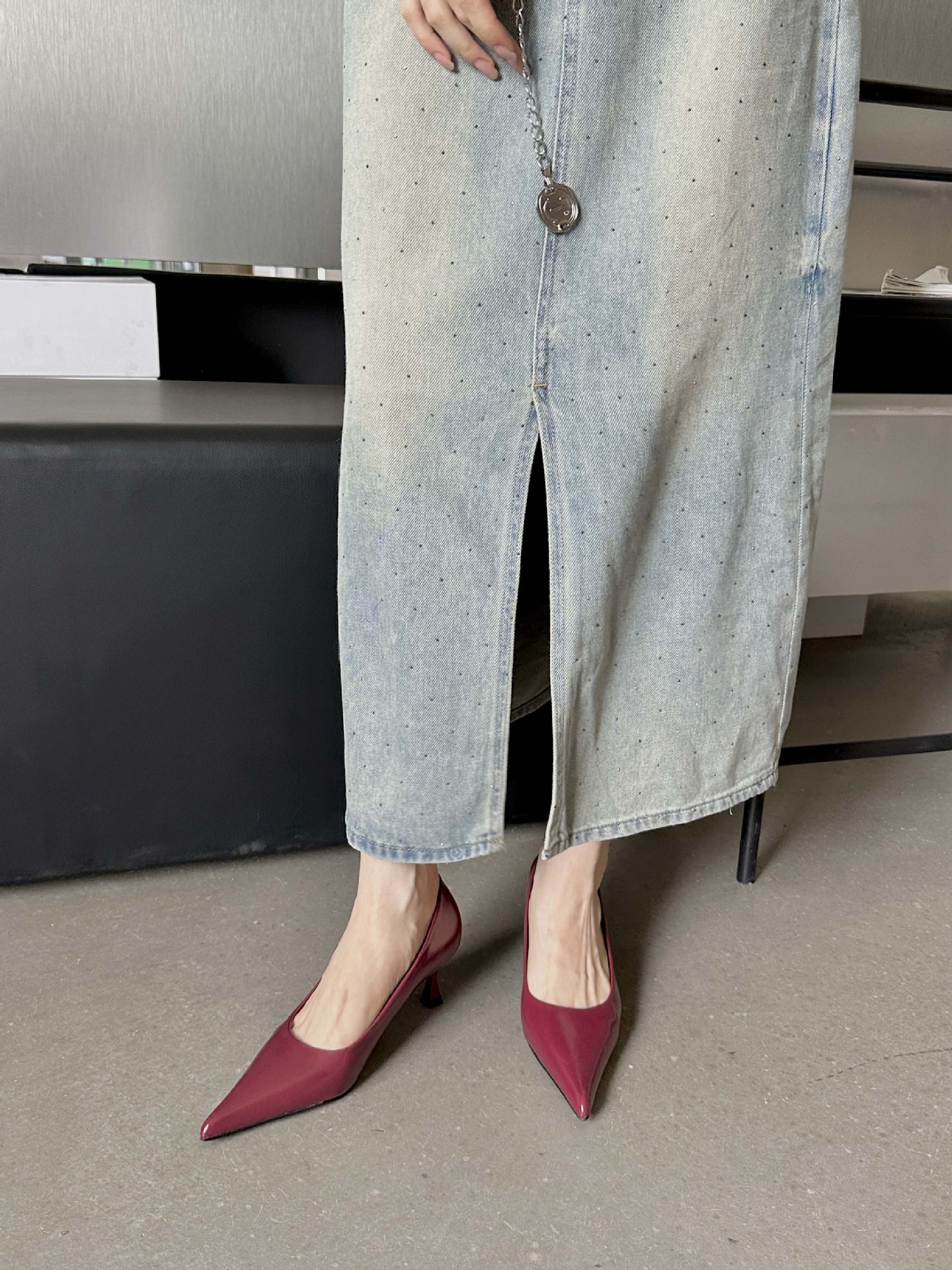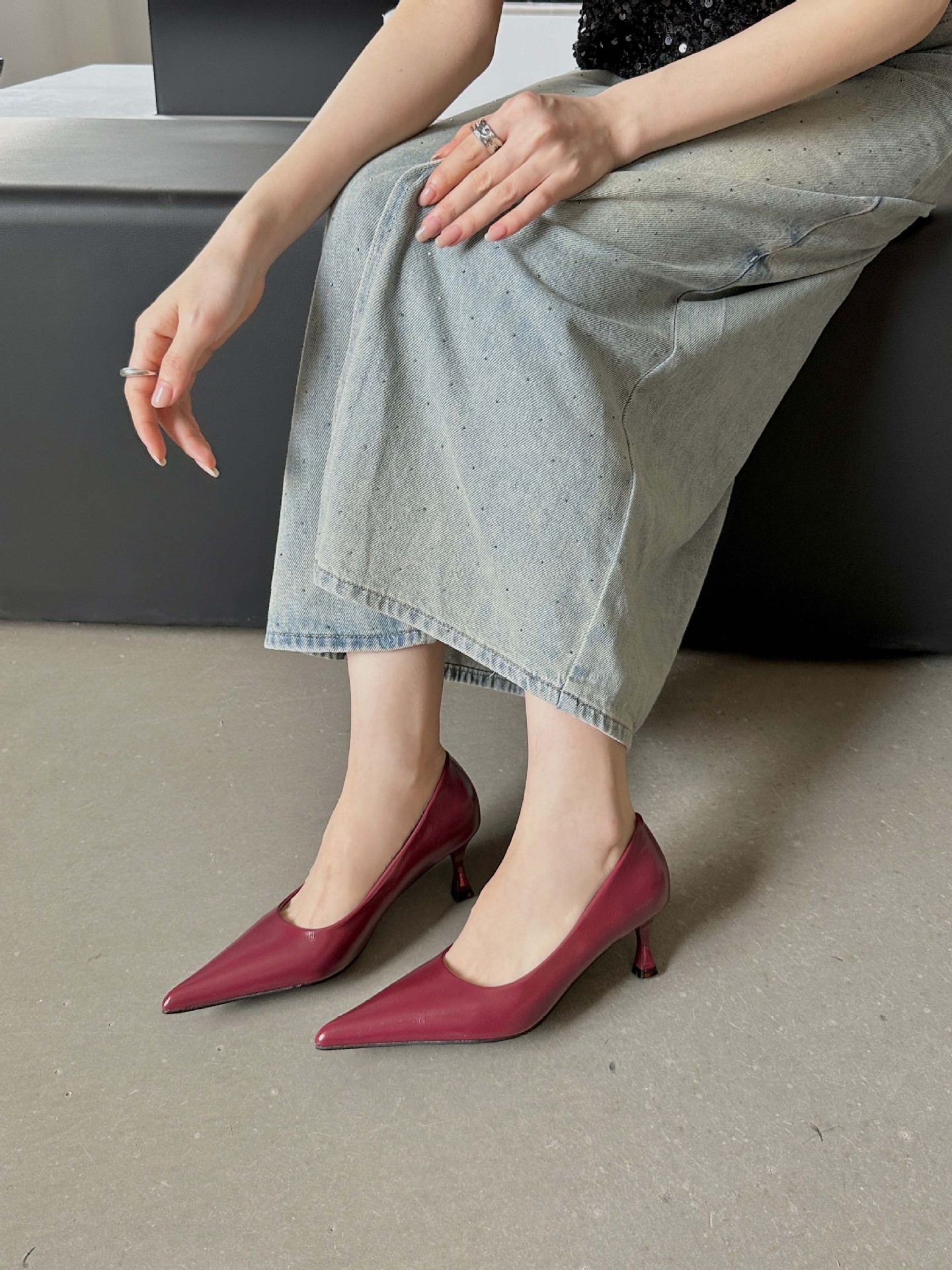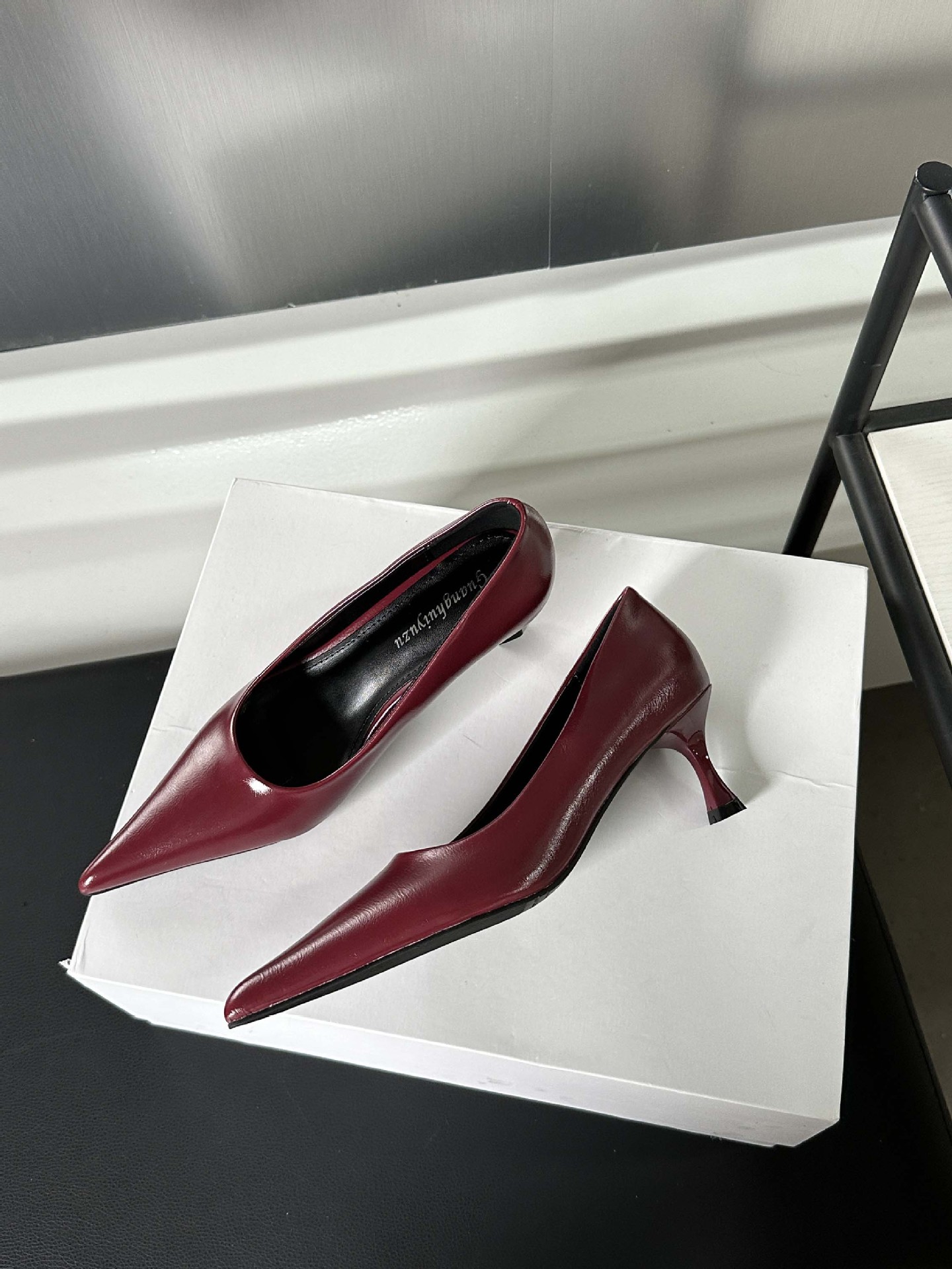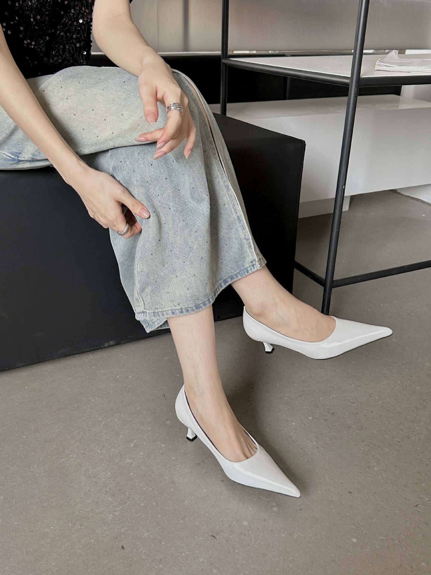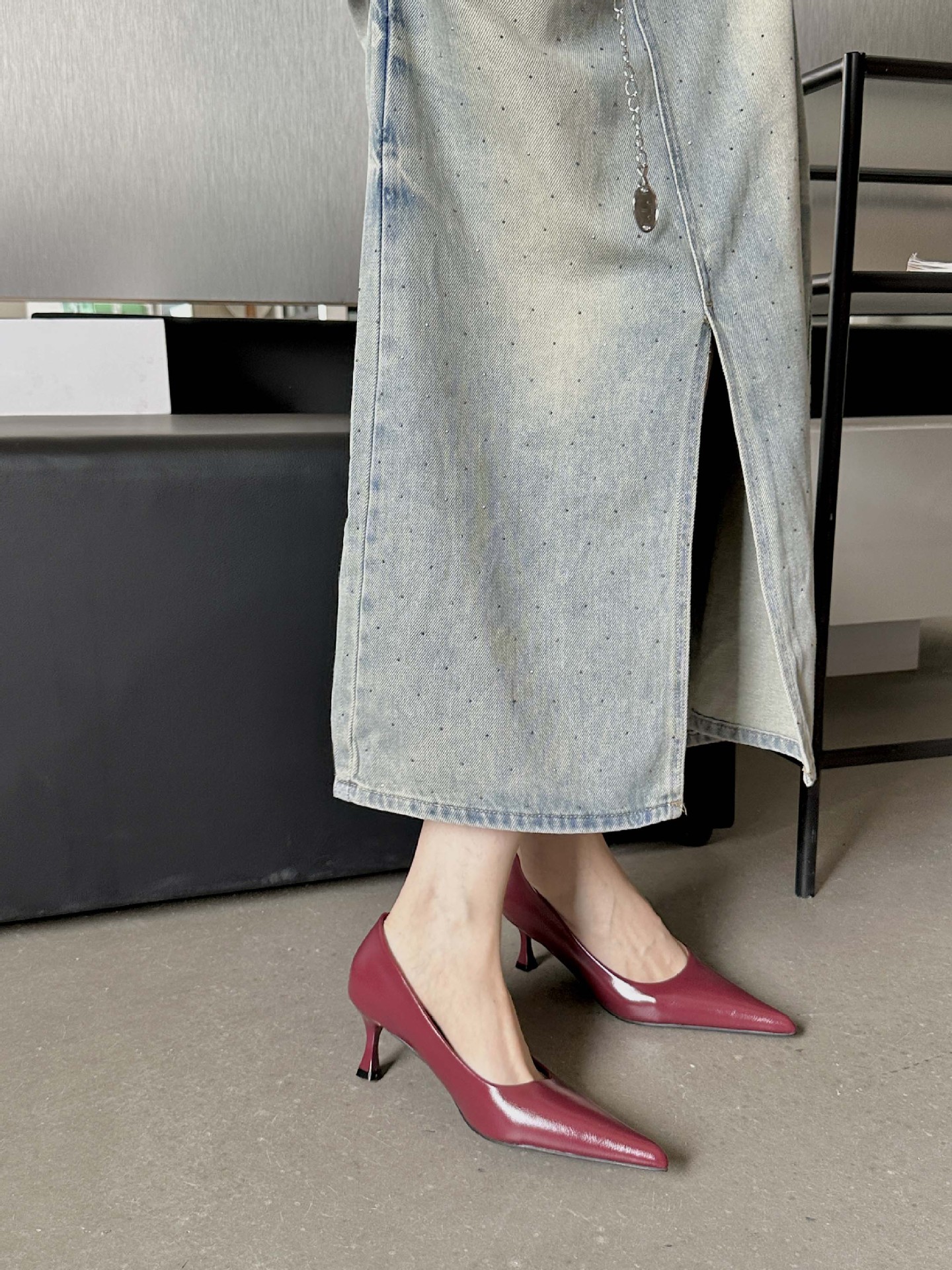 2025 새로운 봄, 가을 여성 신발 얕은 입 슬리밍 싱글 신발 하이힐 여성 뾰족한 발가락 스틸레토 힐스토어 가기