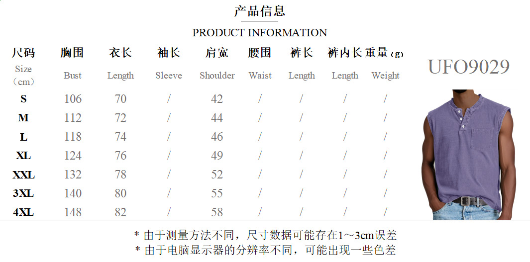 2025 유럽 및 미국 해외배송 남성 조끼 얇은 베스트 아마존 남성 헨리넥 버튼 피트니스 스포츠 탑