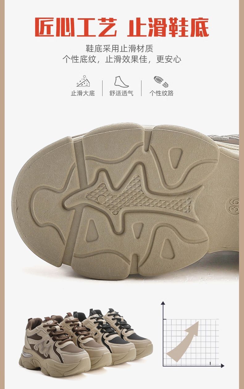 여성을위한 두꺼운 밑창 가죽 아빠 신발 2025 봄 새로운 스타일 작은 부드러운 밑창 여성을위한 다목적 두꺼운 밑창 스포츠 및 캐주얼 신발