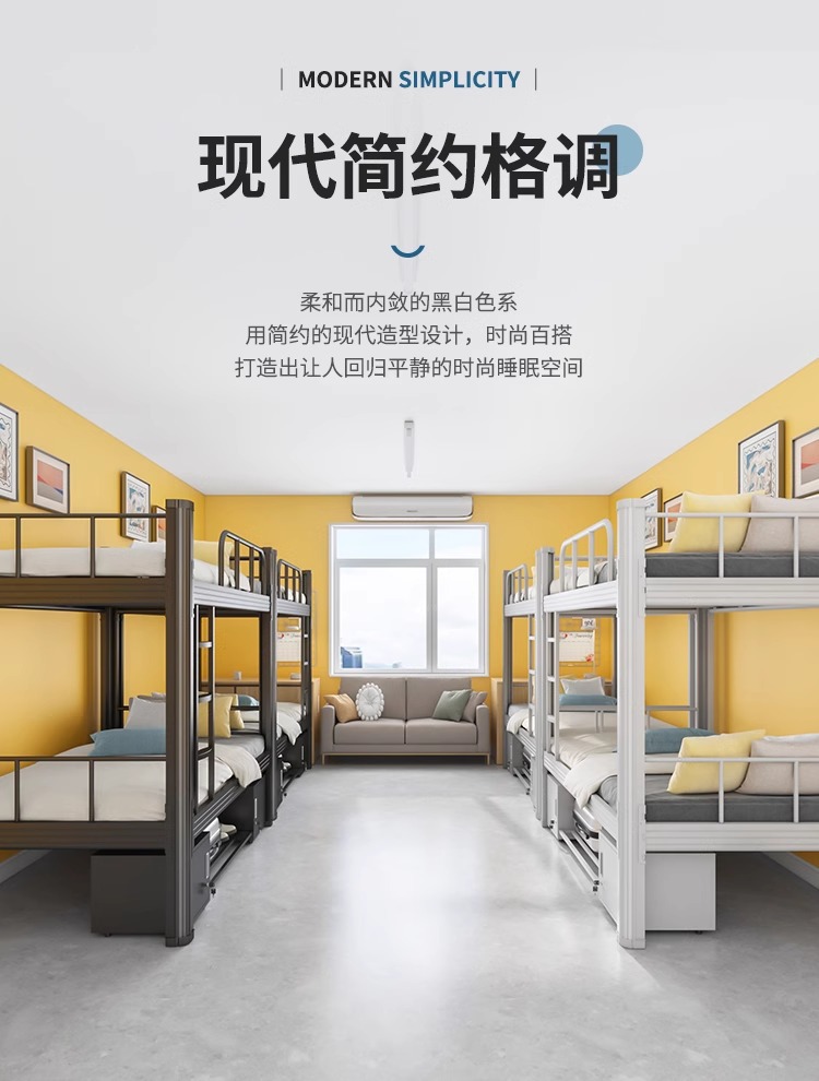 이층 철제 프레임 침대, 이층 침대, 학교 기숙사 하이 및 로우 침대, 직원 기숙사, 두꺼운 철제 침대, 아파트 침대 제조업체