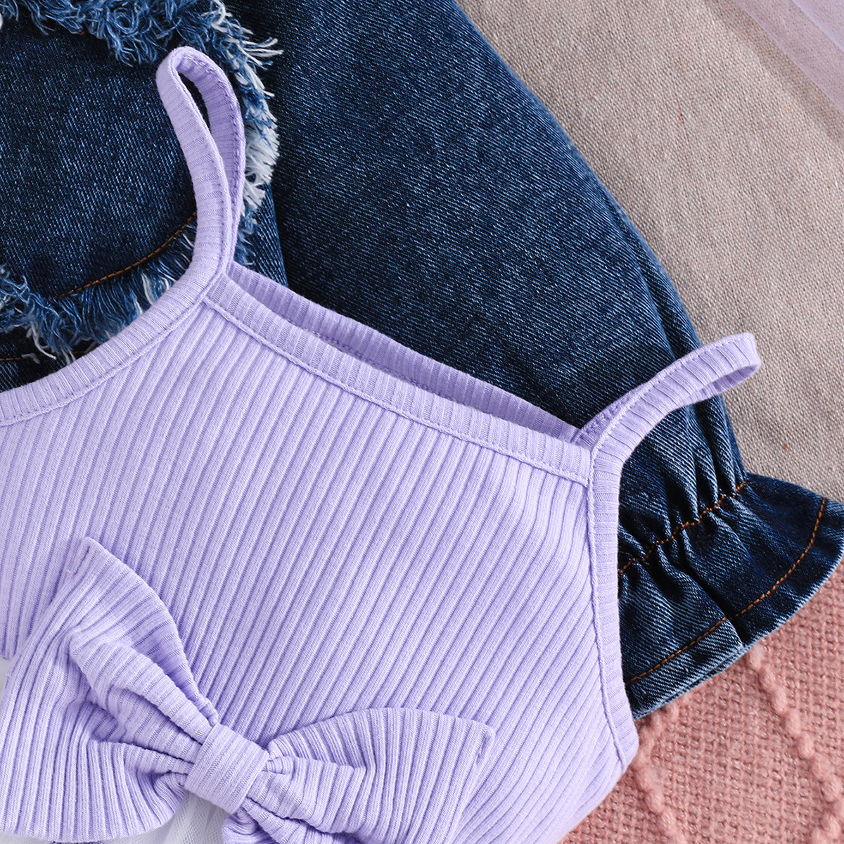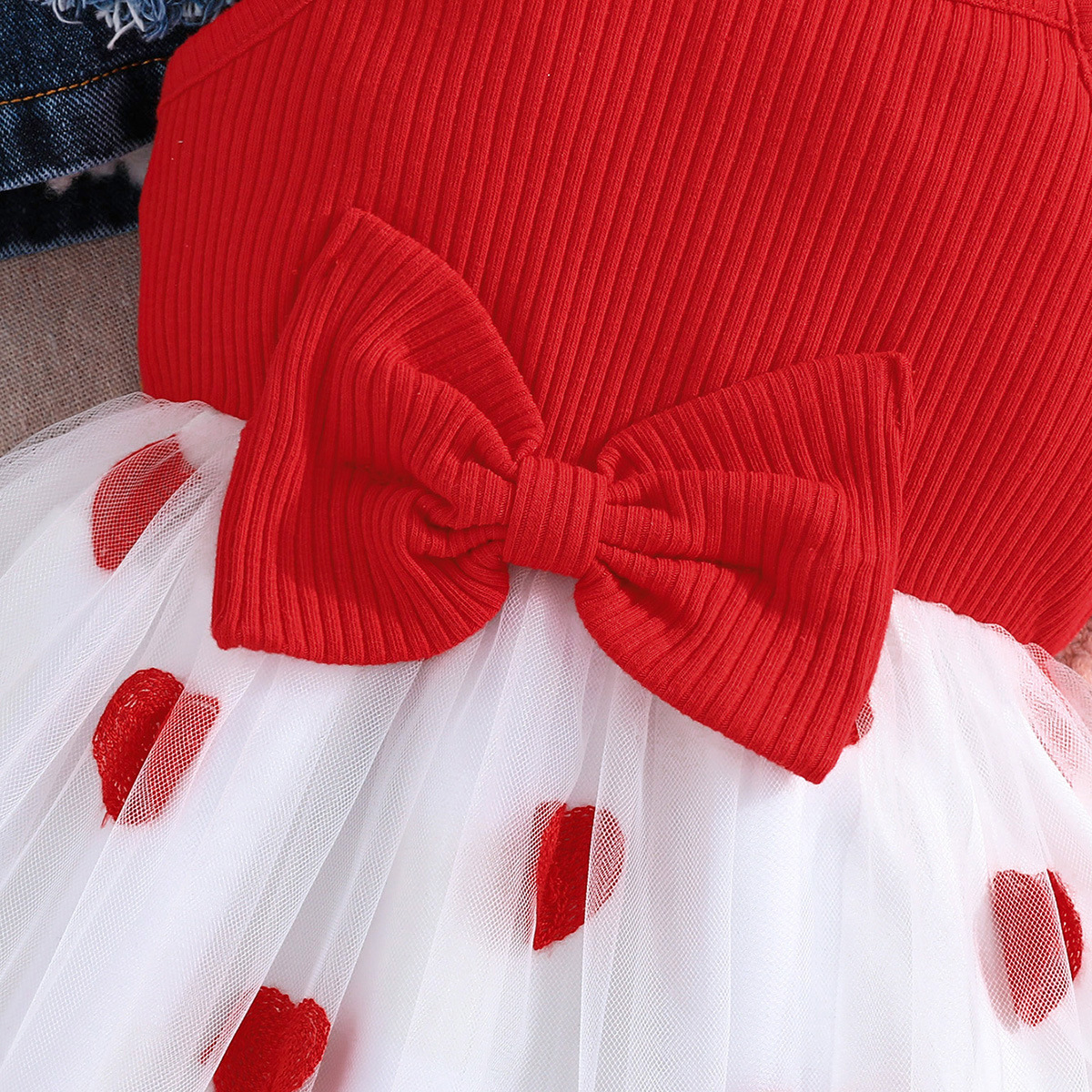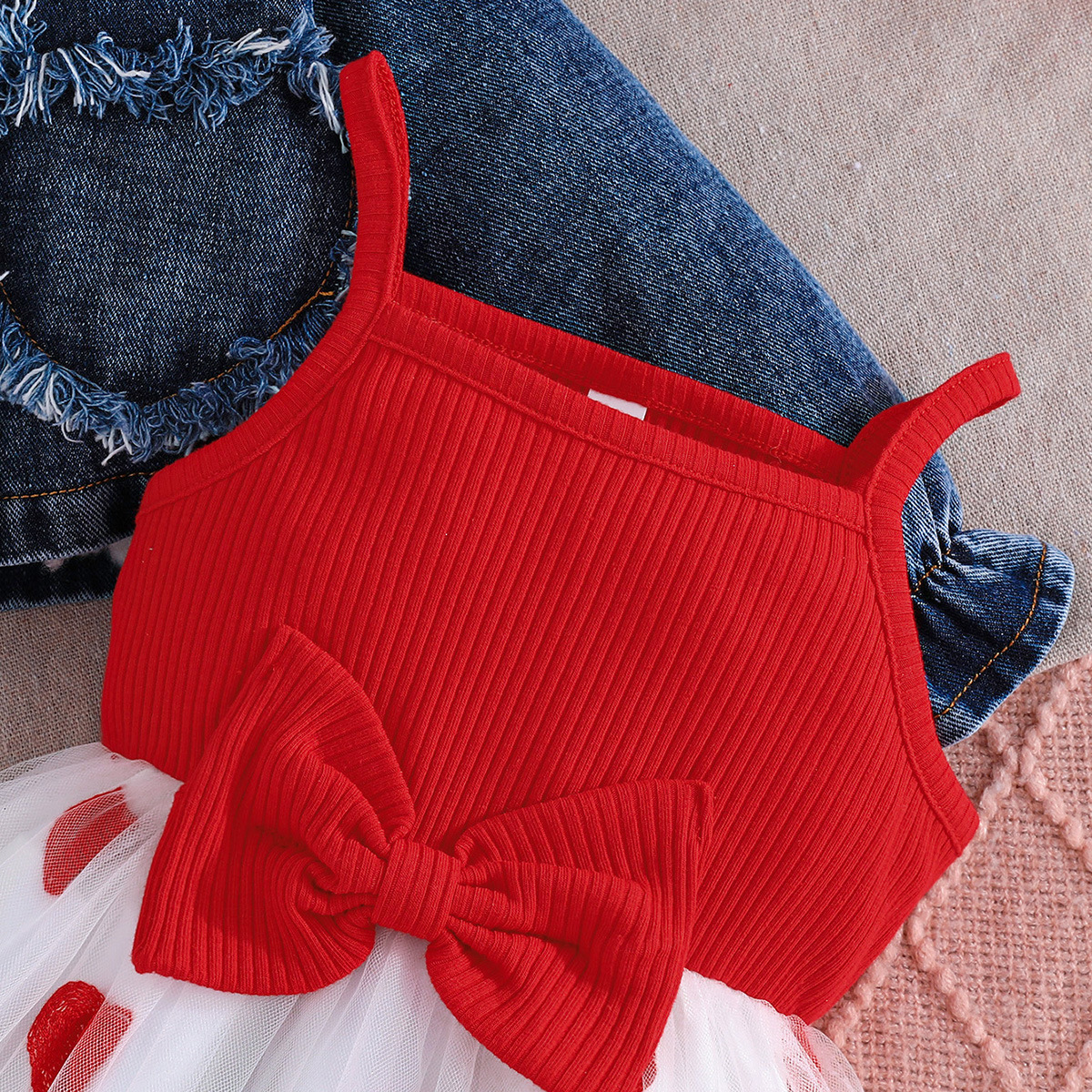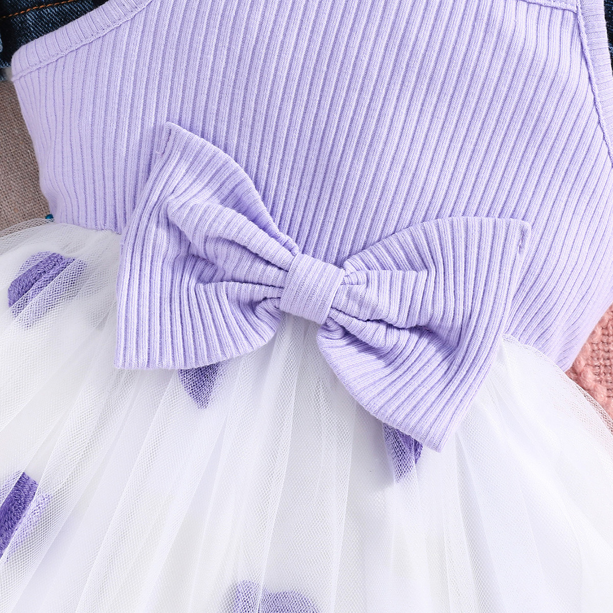 2025 새로운 가을 유럽과 미국 소녀의 패치 워크 러브 데님 재킷 탑 + 서스펜더 보우 러브 스커트