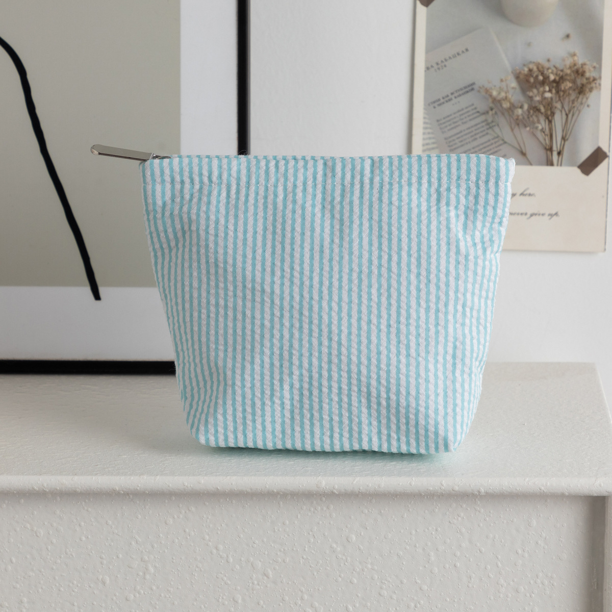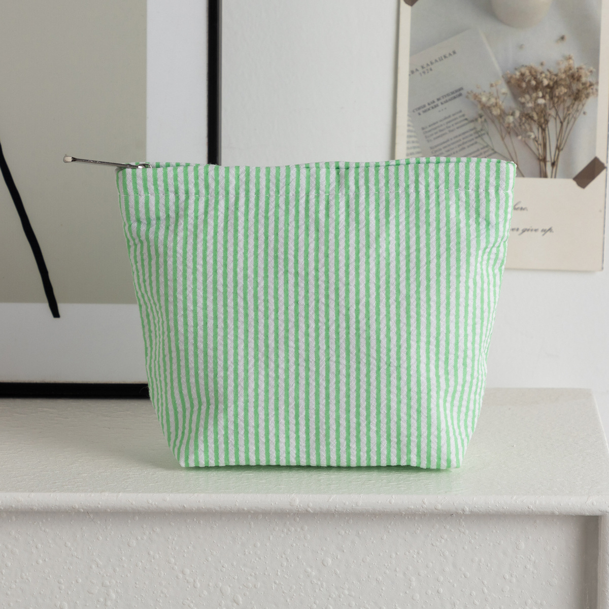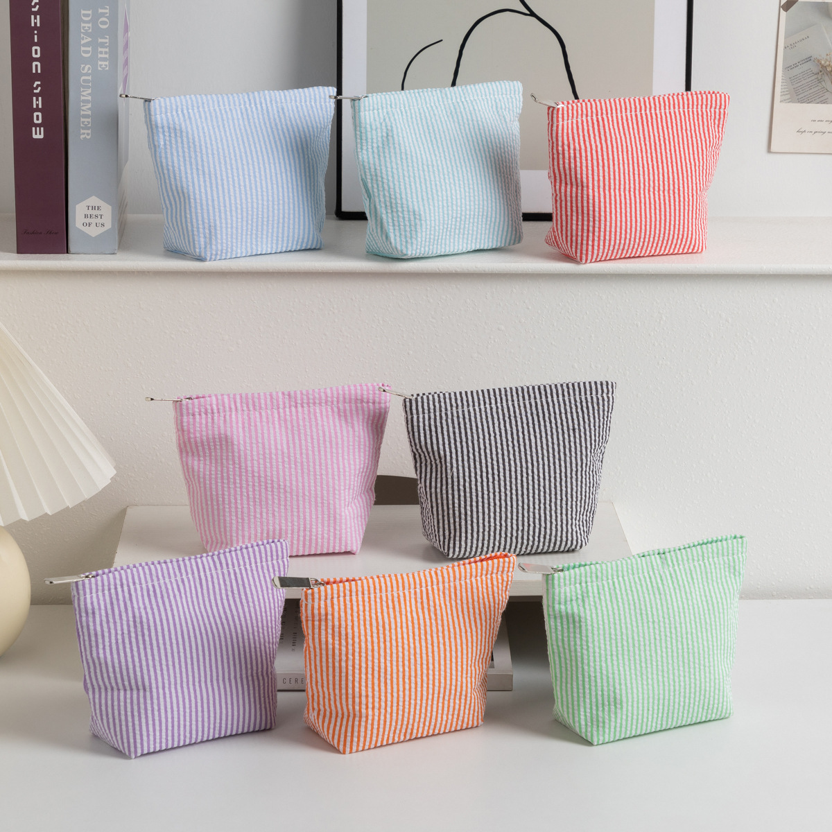 시어서커 화장품 가방, 휴대용 화장품 수납 가방, 여성용 가방, 휴대용 세면도구 가방, 스트라이프 심플 패션 수납 가방