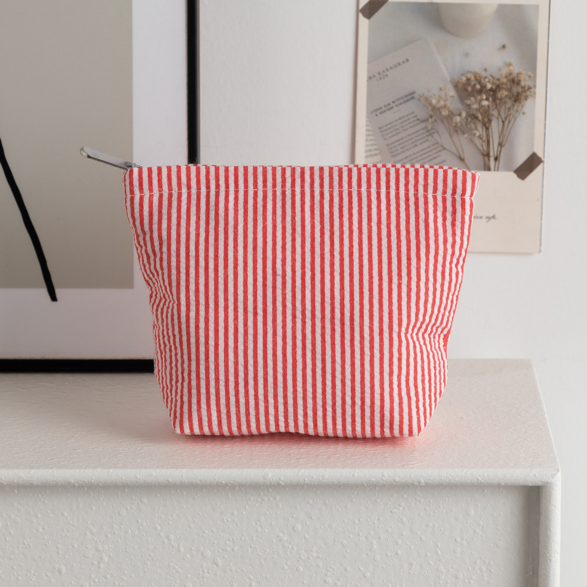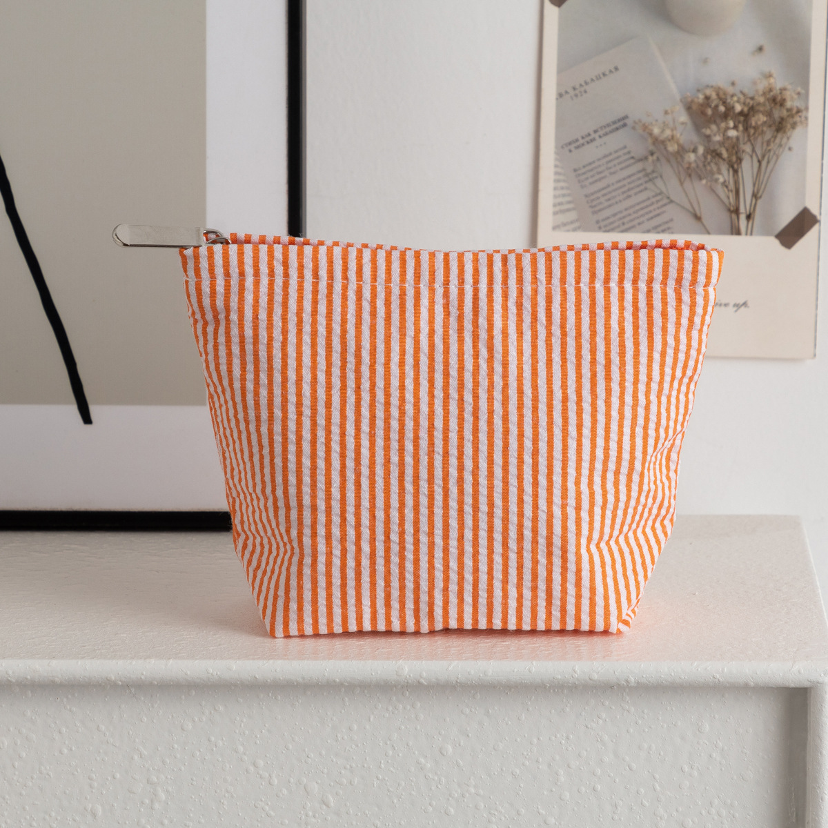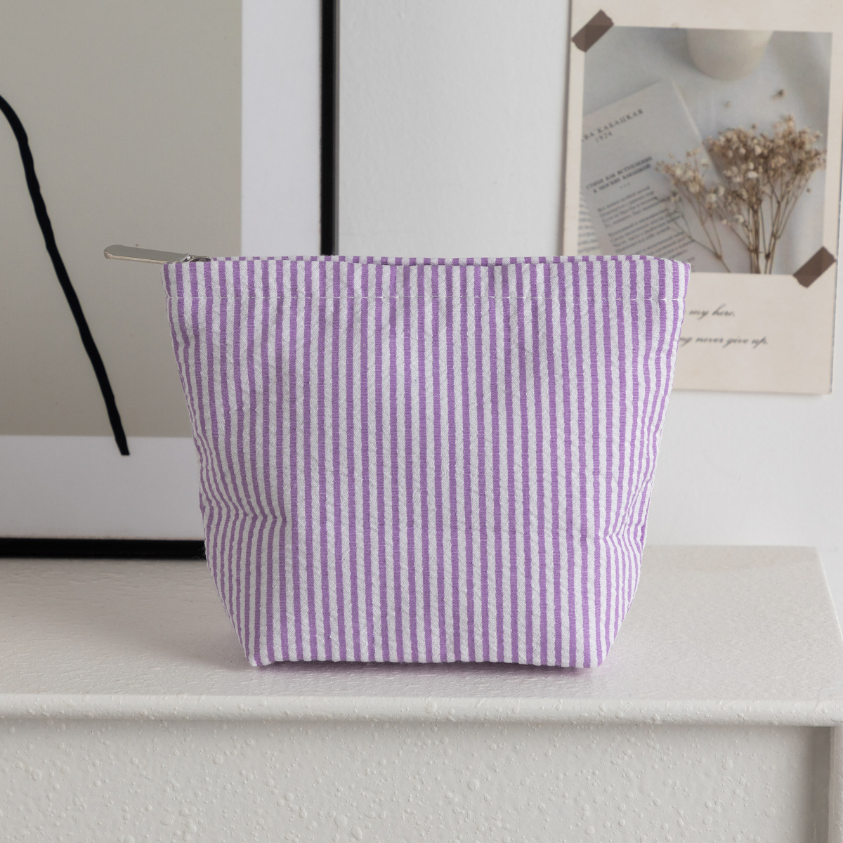 시어서커 화장품 가방, 휴대용 화장품 수납 가방, 여성용 가방, 휴대용 세면도구 가방, 스트라이프 심플 패션 수납 가방