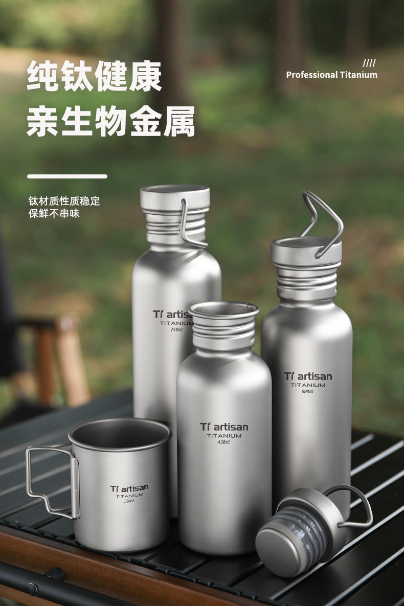 티타늄 컵 야외 순수 티타늄 스포츠 물병 캠핑 사이클링 물병 여행 금속 물병 휴대용 물 컵 티타늄 컵스토어 가기