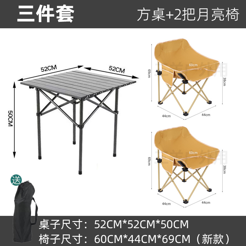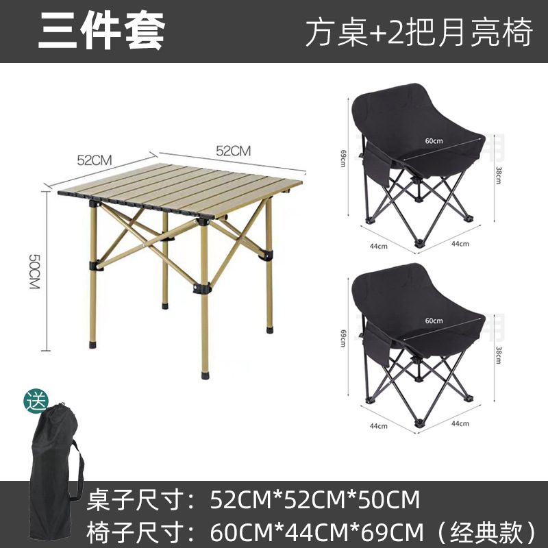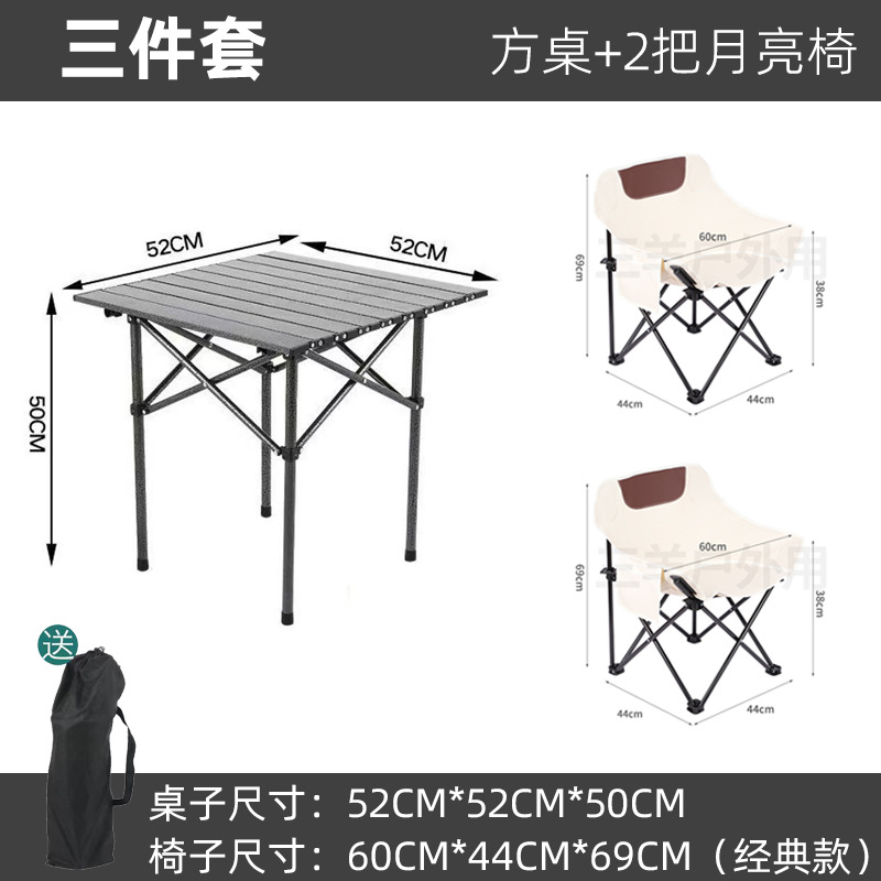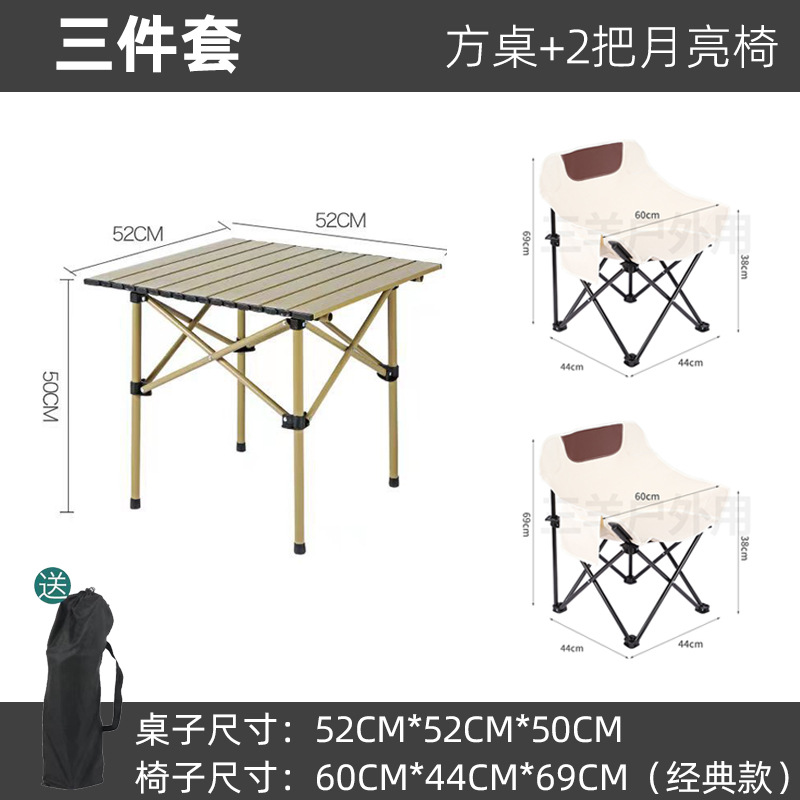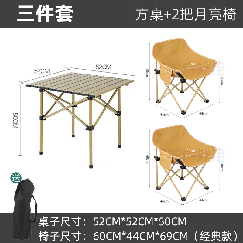 • 3종 세트(베이지색 50각 테이블 + 카키색 달의자*2 클래식 모델)