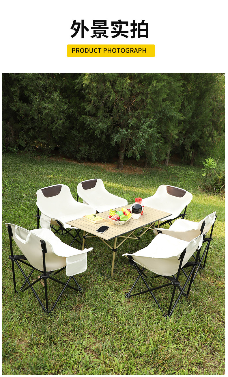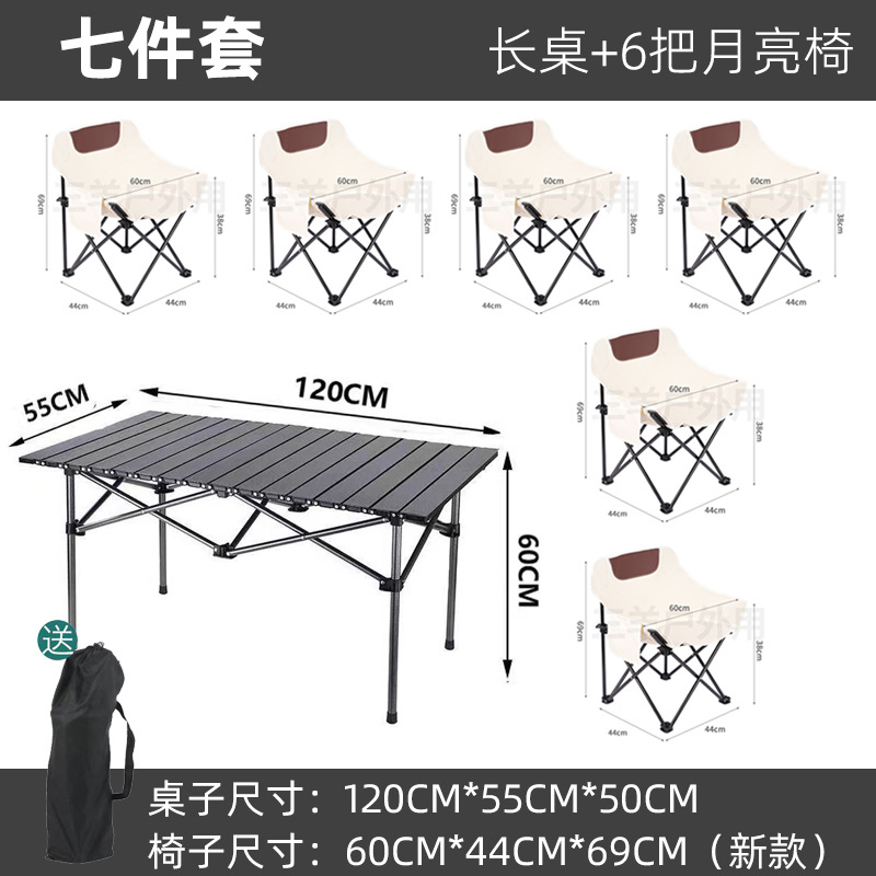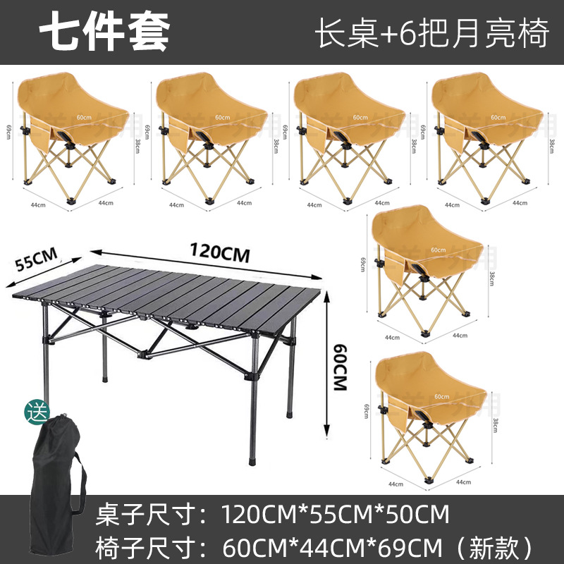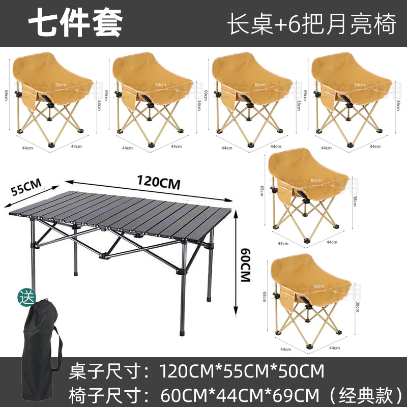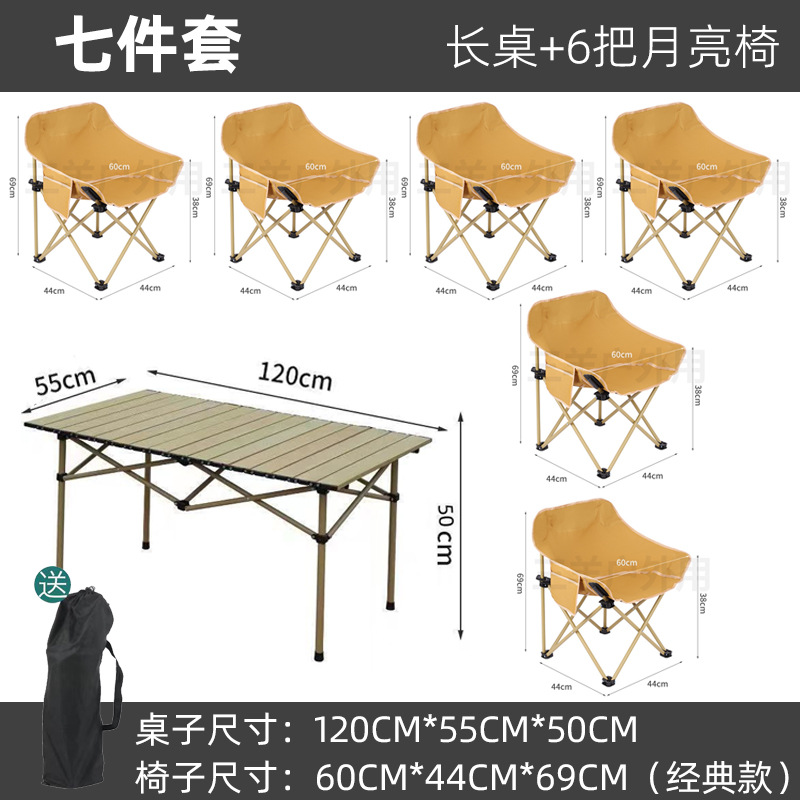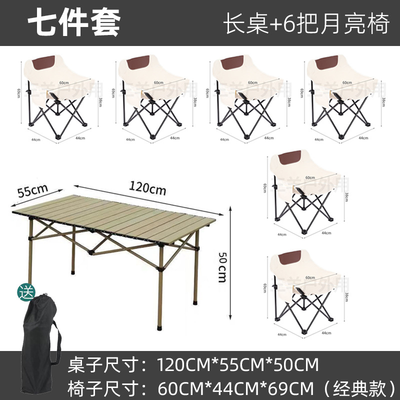 • 7종 세트(베이지 120 롱 테이블 + 카키 문 체어*6, 클래식 스타일)