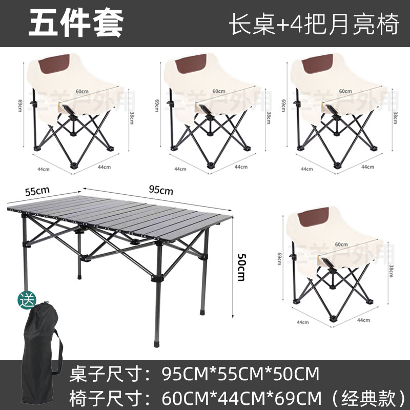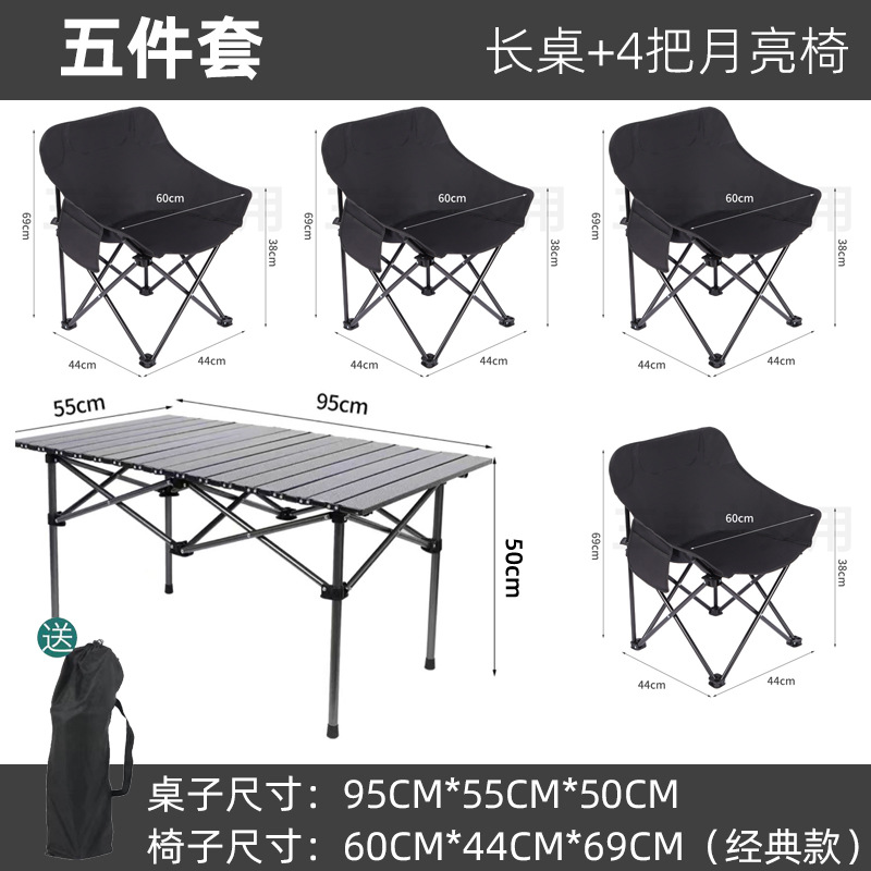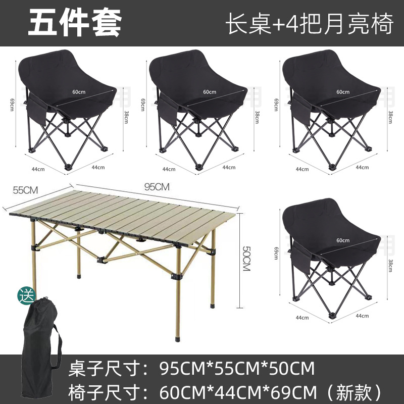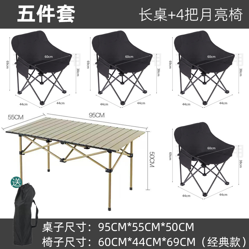 • 5종 세트(블랙 95 롱 테이블 + 카키 문 체어*4 신형)