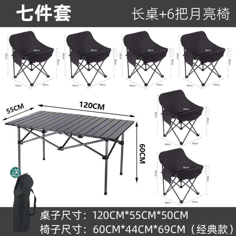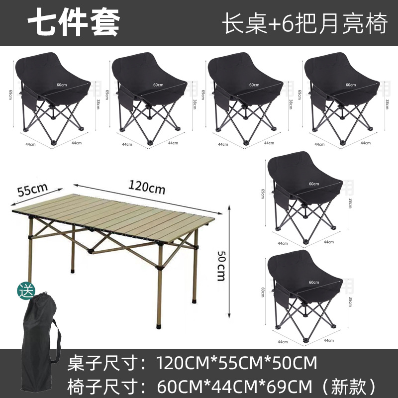• 7종 세트(블랙 120 롱 테이블 + 카키 문 체어*6 신형)