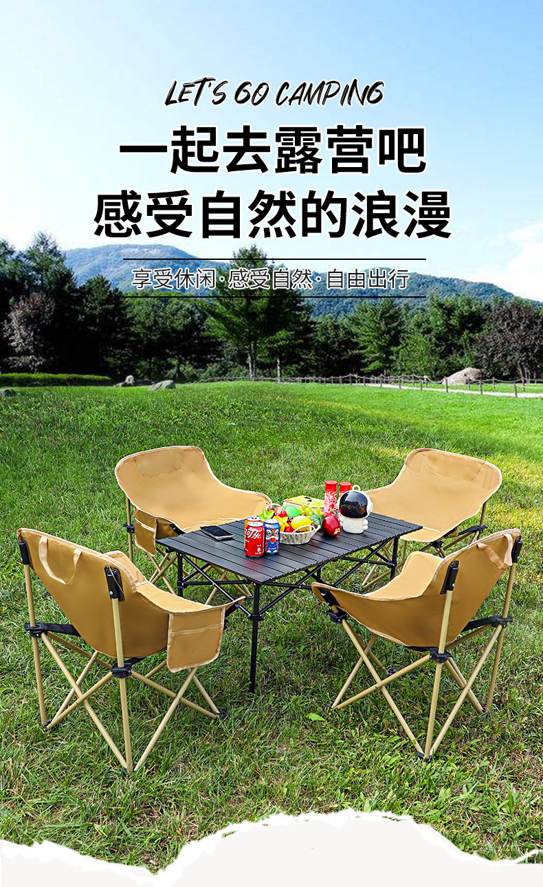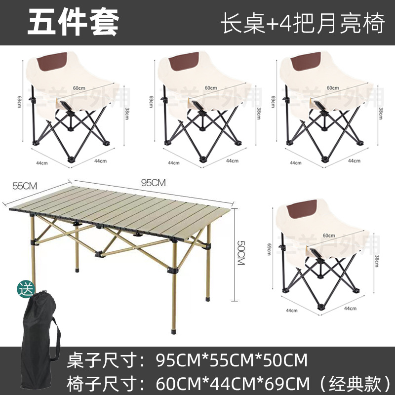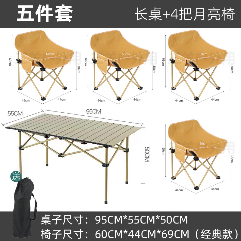 • 5종 세트(베이지 95 롱 테이블 + 카키 문 체어*4 클래식 스타일)