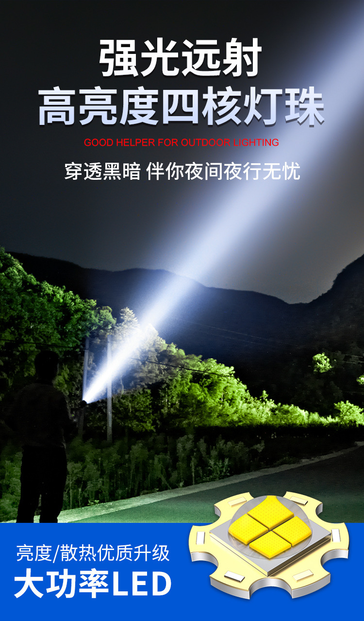 새로운 강력한 빛 손전등 USB 충전식 장거리 야외 장거리 줌 COB 작업 측면 조명 디지털 디스플레이 손전등스토어 가기