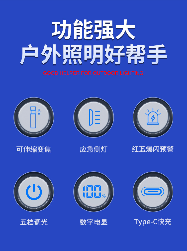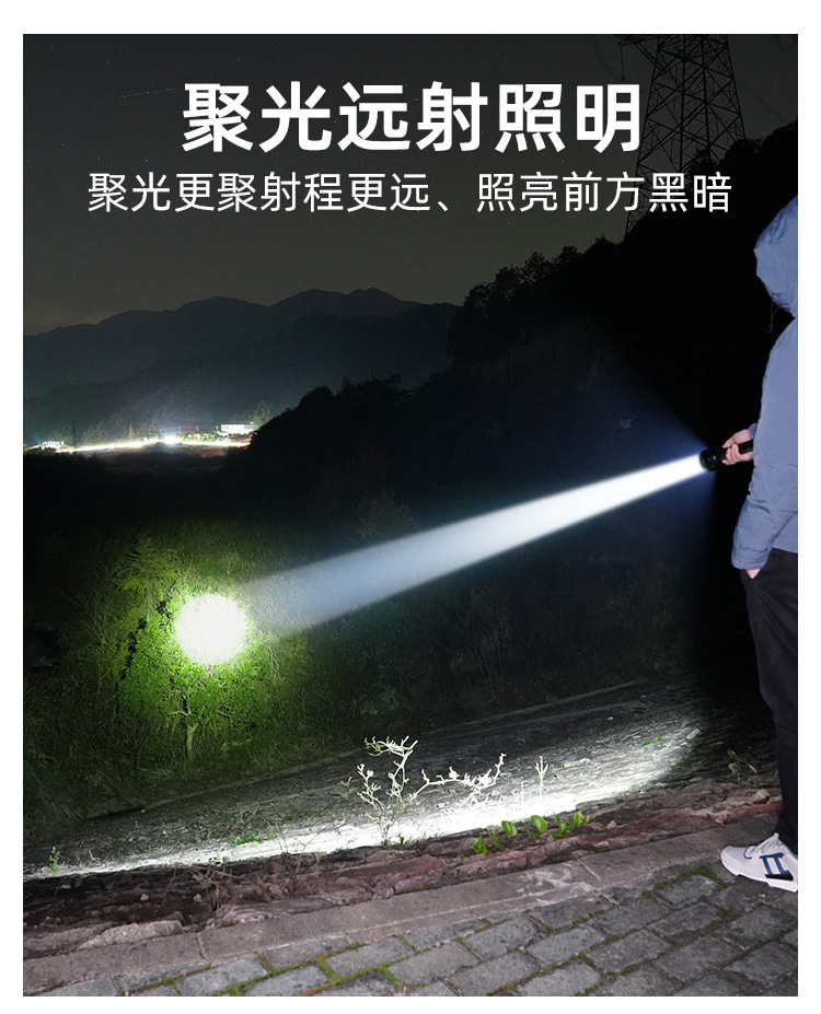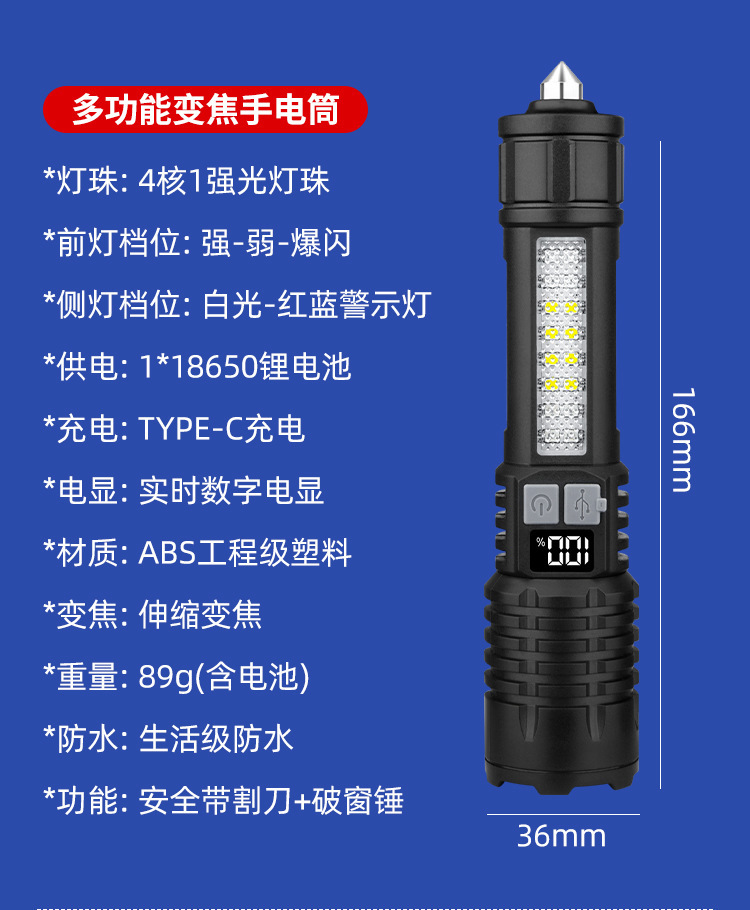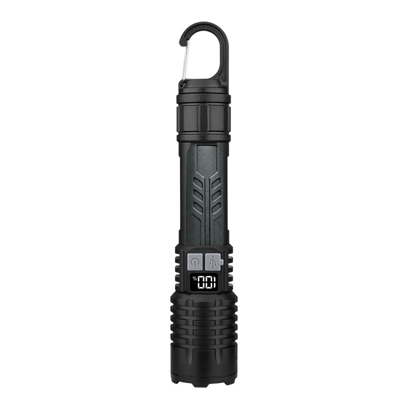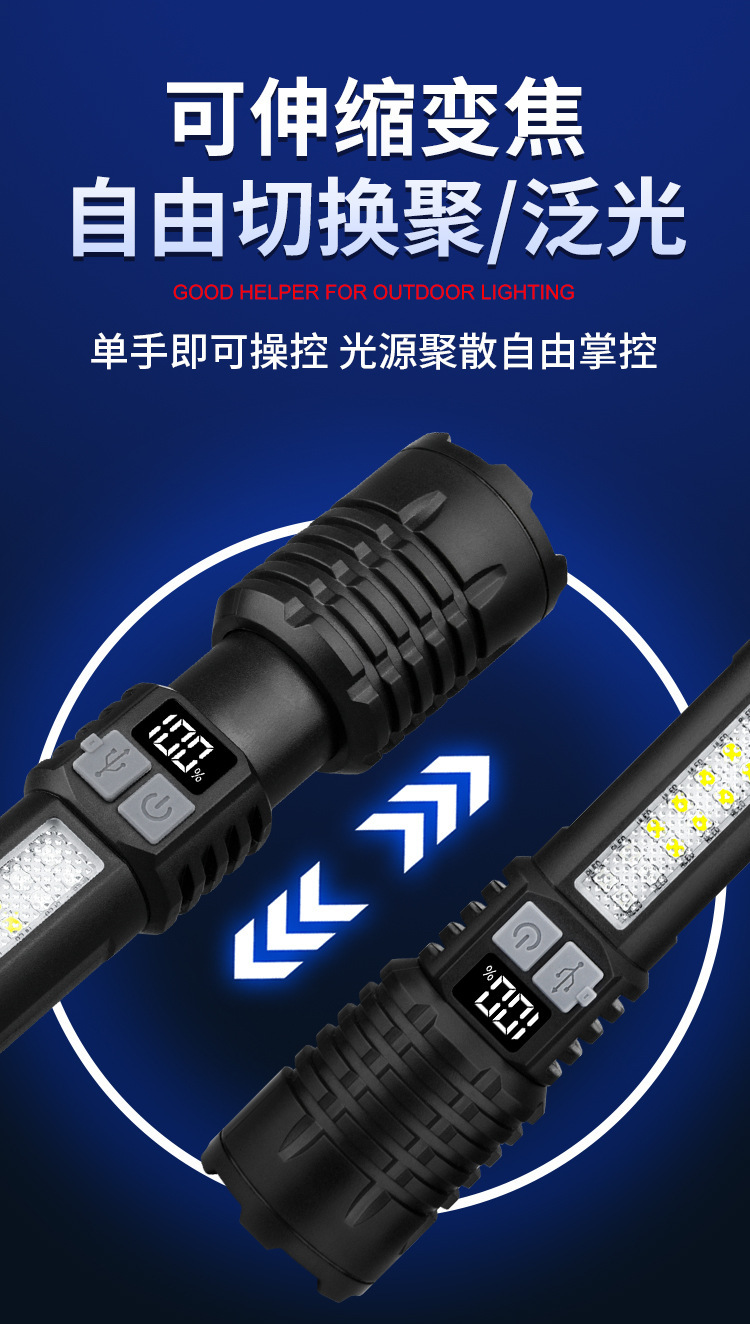 새로운 강력한 빛 손전등 USB 충전식 장거리 야외 장거리 줌 COB 작업 측면 조명 디지털 디스플레이 손전등