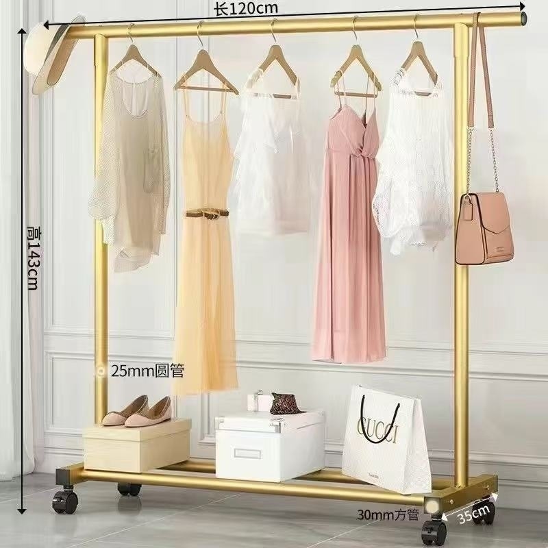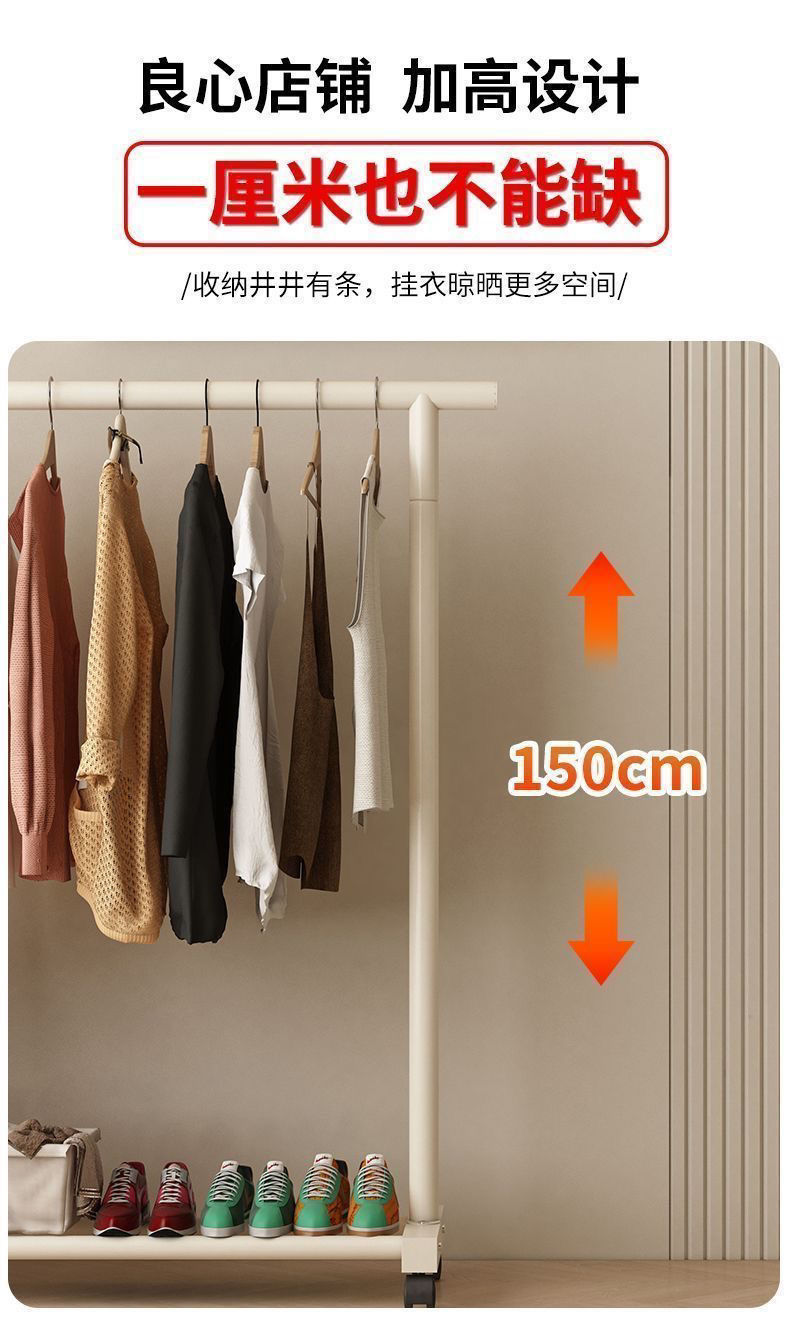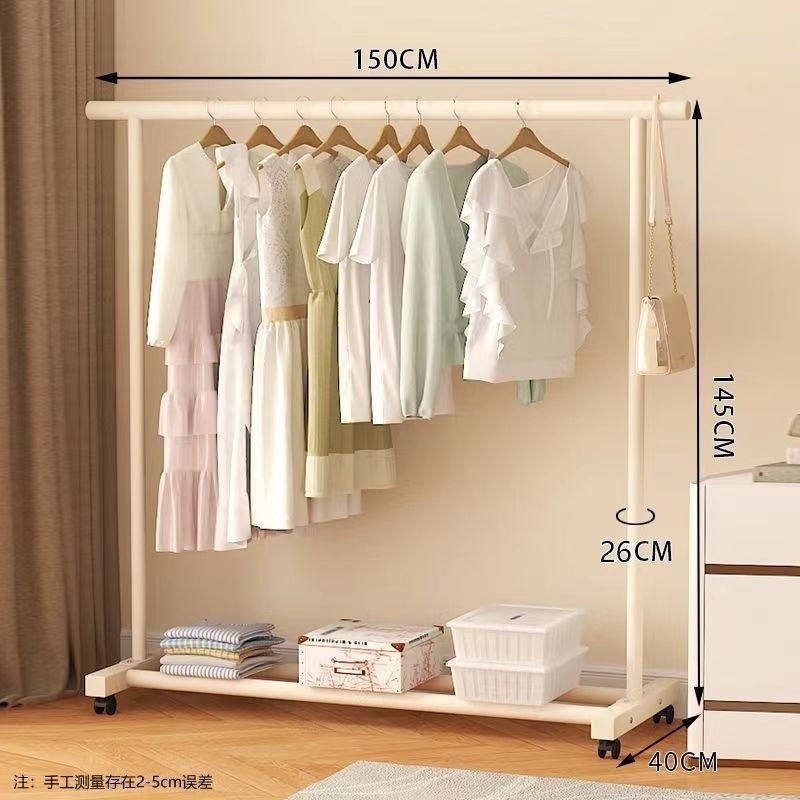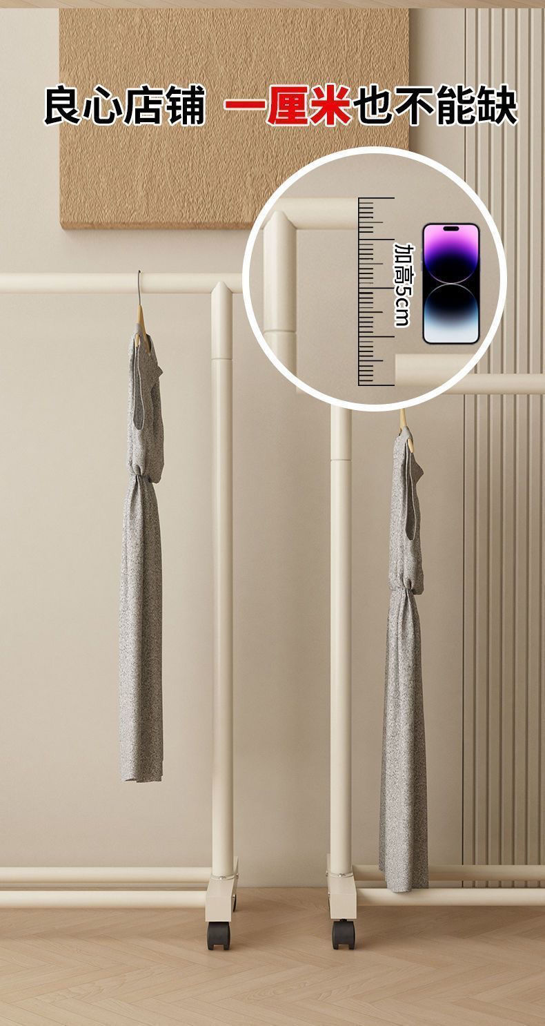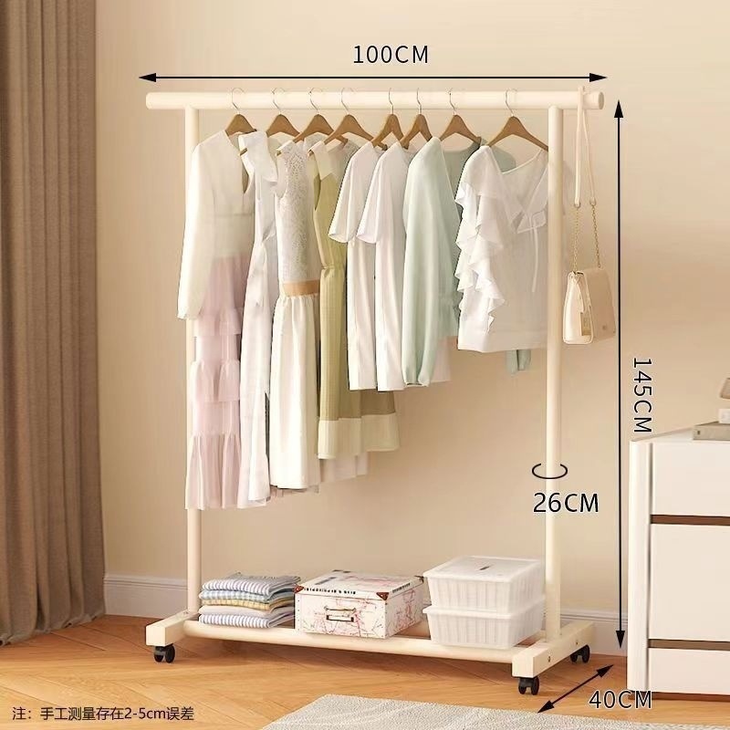 가정용 침실을 위한 매우 두꺼운 코트 랙 바닥 스탠딩 모바일 크림 스타일 옷 걸이 간단한 기숙사 옷 걸이 발코니 수직스토어 가기