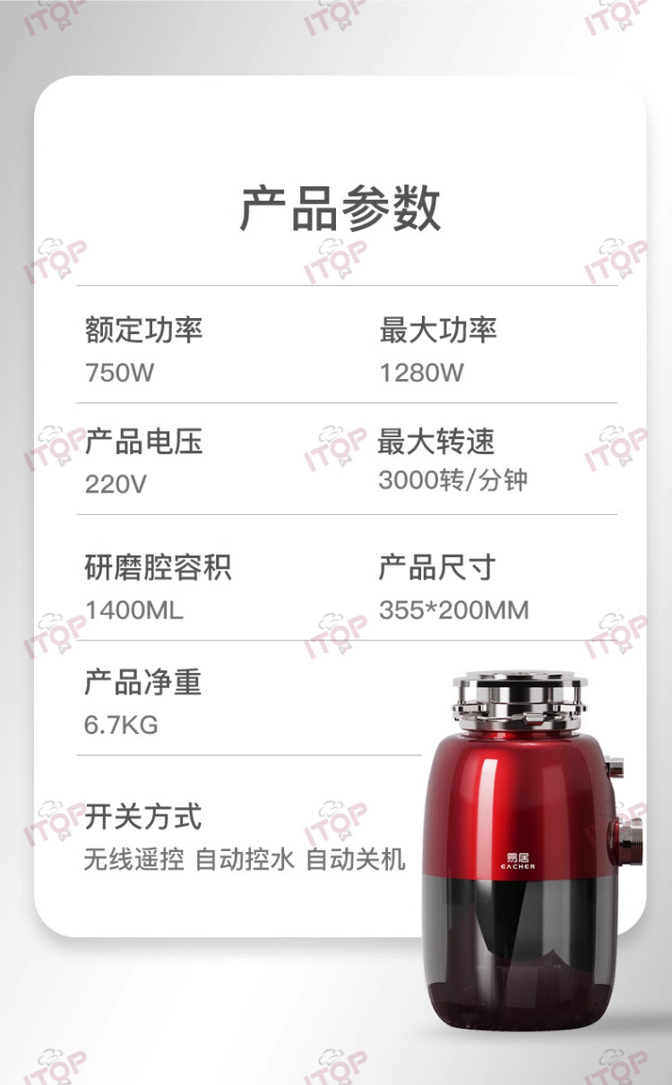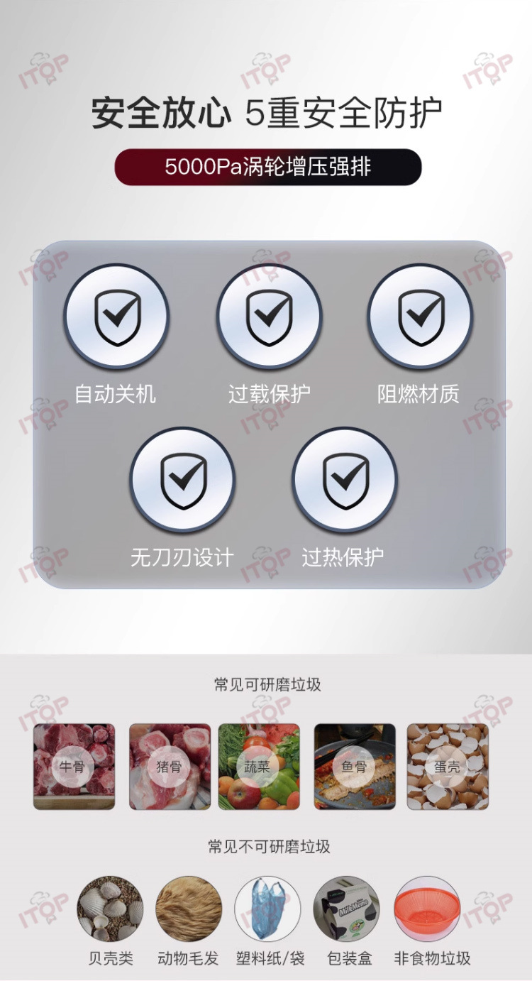 Zantuo X20 음식물 쓰레기 처리기 주방 하수구 싱크 분쇄기 음식물 쓰레기 자동 처리기