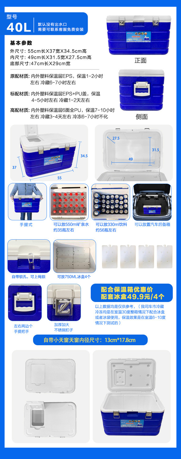 5L-65L 냉동 단열 상자 트럭 운송 가구를 갖춘 신선도 유지 및 보온 및 냉장 식품 판매대