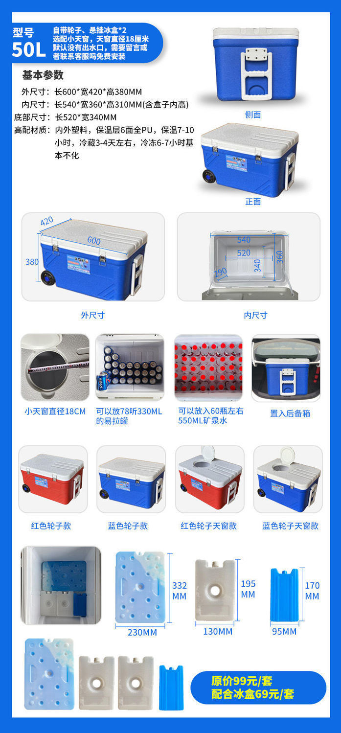 • 50L 고급 구성 + 채광창 + 걸이형 아이스박스 - 블루