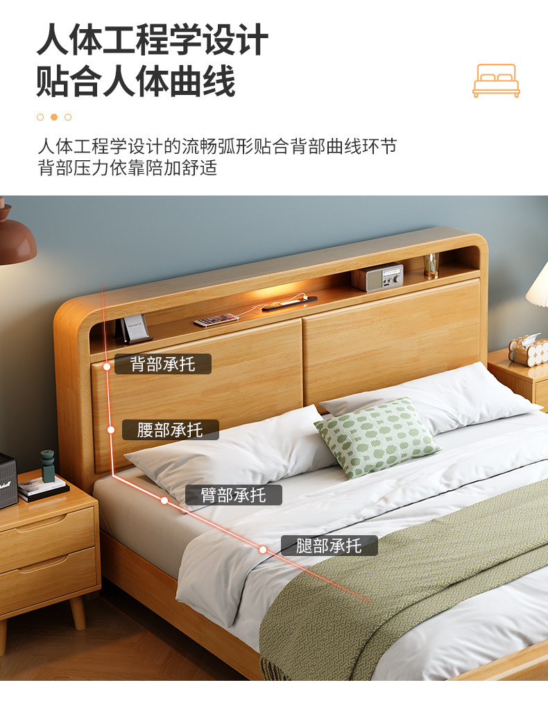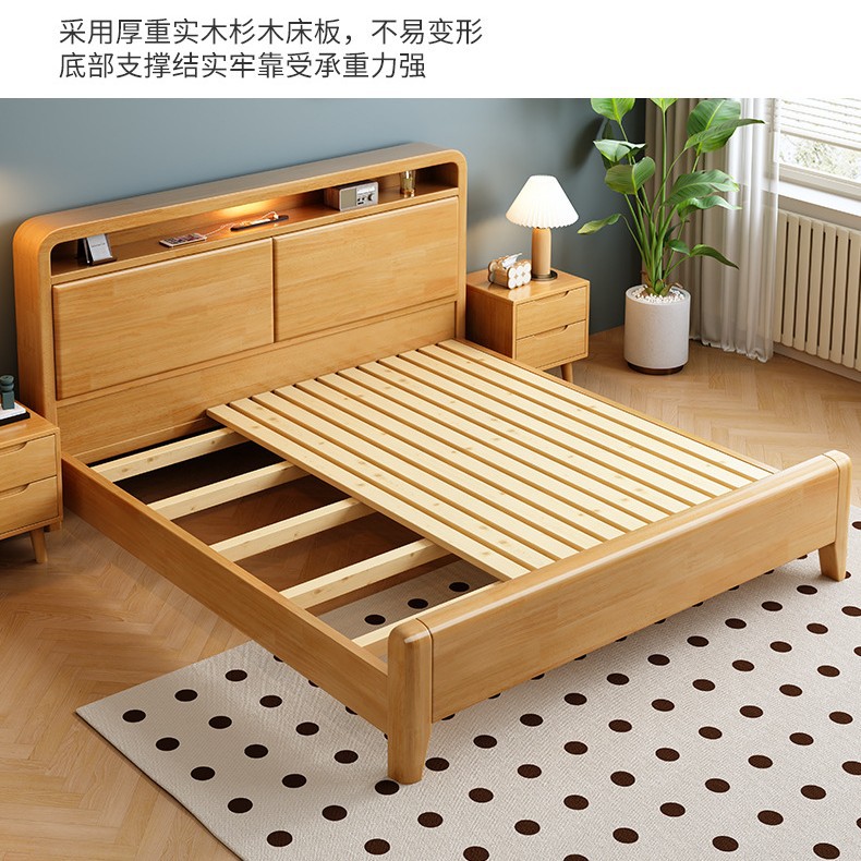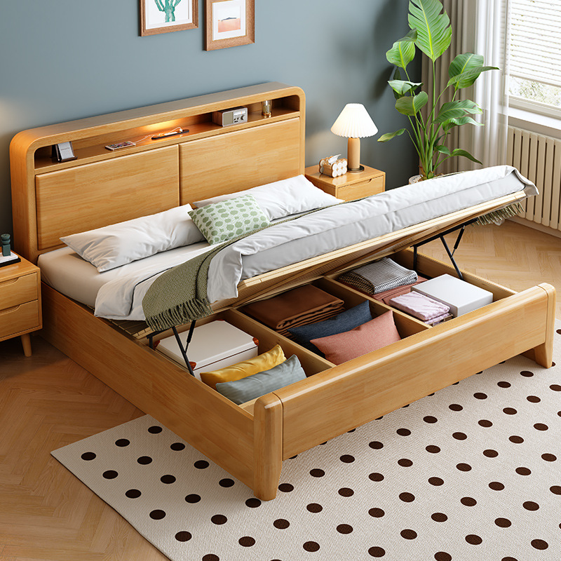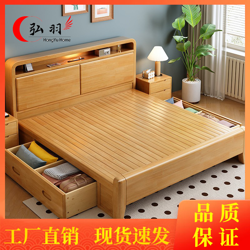 북유럽 단단한 나무 침대 침실 1.5m 오크 현대 미니멀리스트 1.8m 마스터 침실 더블 수납 침대 가구 임대 집