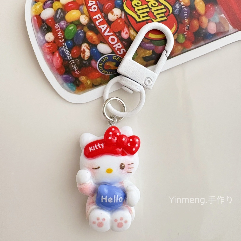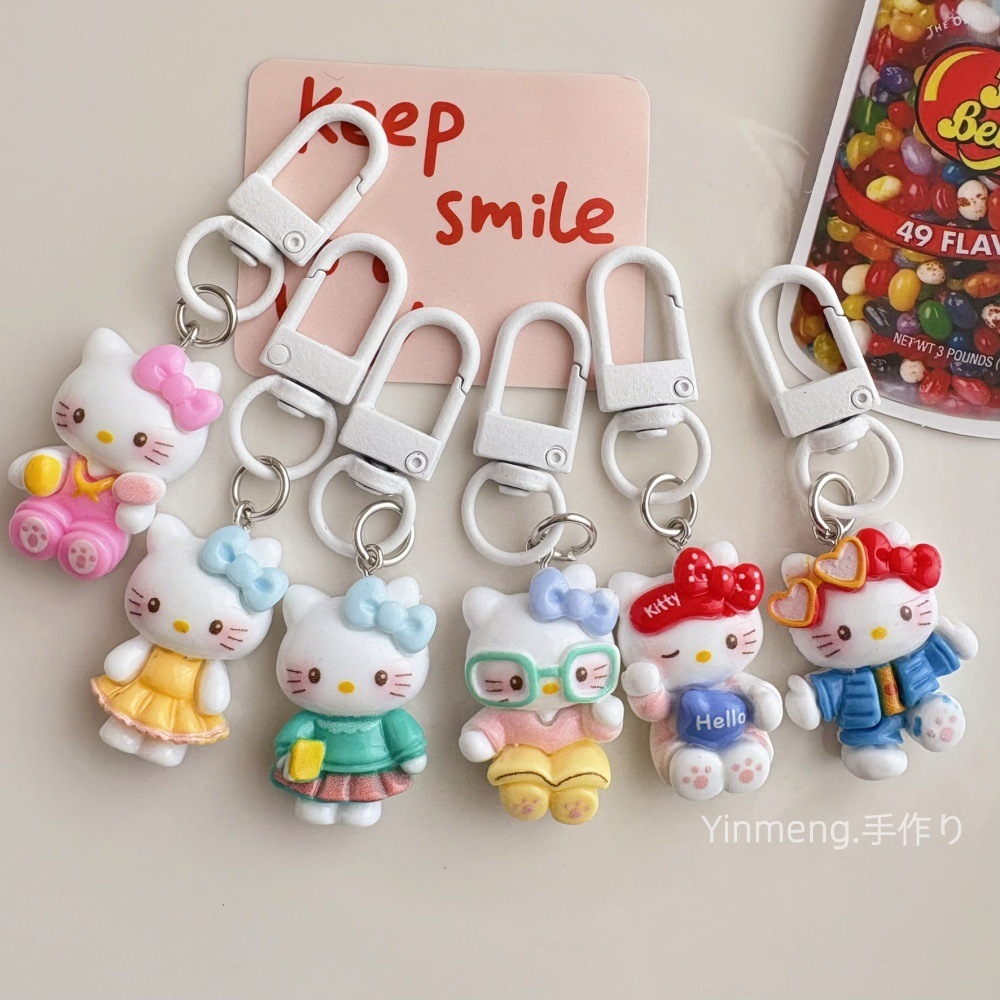 만화 행복한 새끼 고양이 키 체인 펜던트 귀여운 KT 고양이 가방 펜던트 학생 학교 가방 액세서리 가장 친한 친구 작은 선물