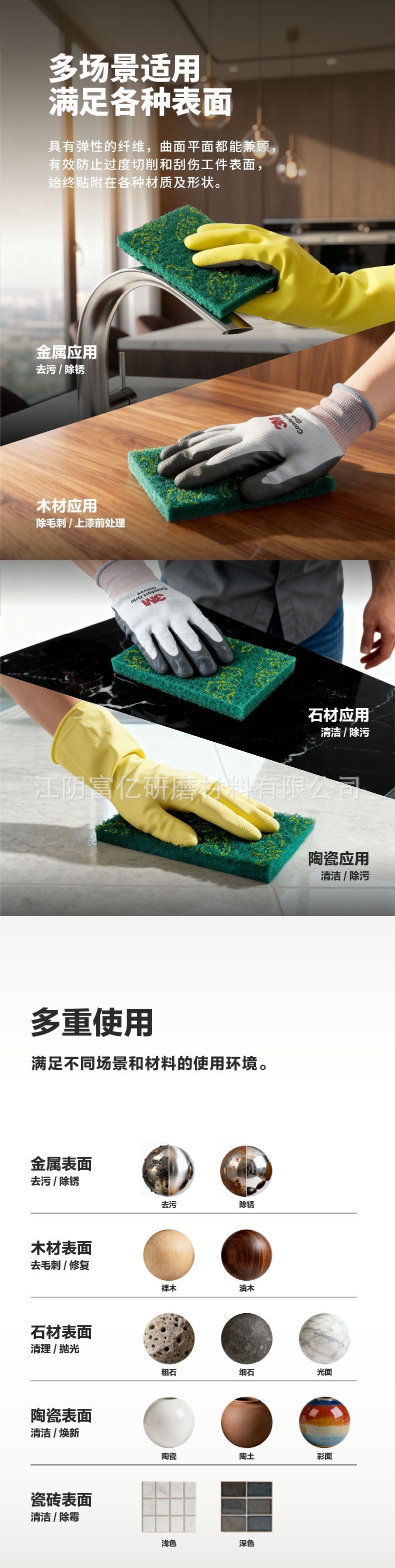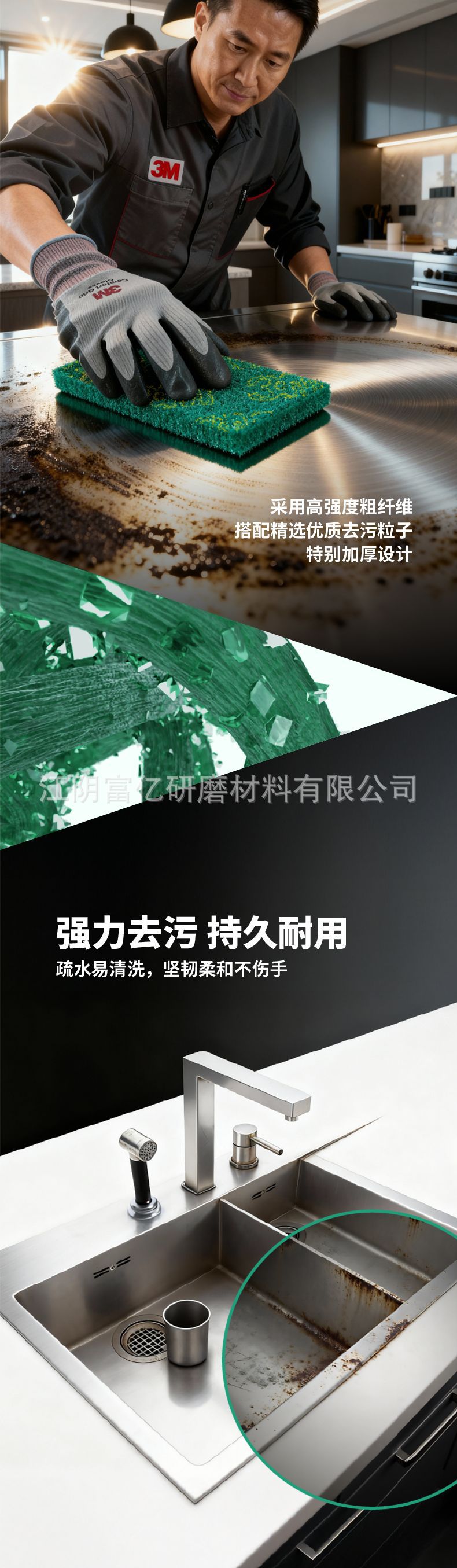 3m 산업용 수세미 7447 다기능 두꺼운 수세미 8698 상업용 기계 연마 및 녹 제거 연마 패드