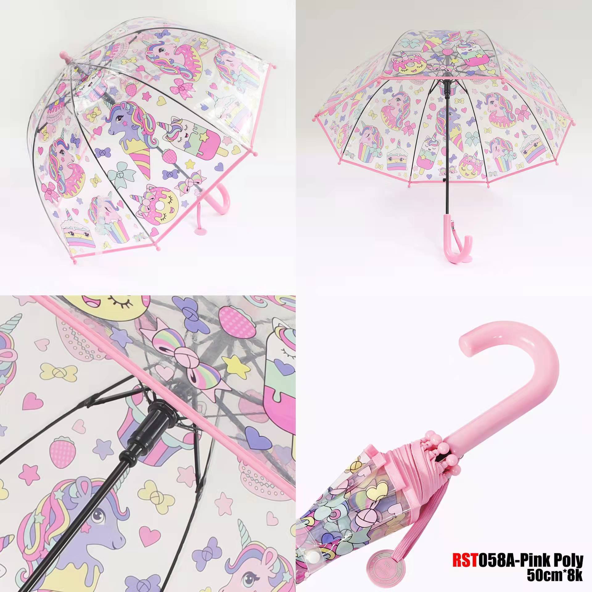 유치원 휴대용 만화 투명 우산 두꺼운 멜팅 스프링 패션 유니콘 귀여운 어린이 긴 손잡이 우산 아기