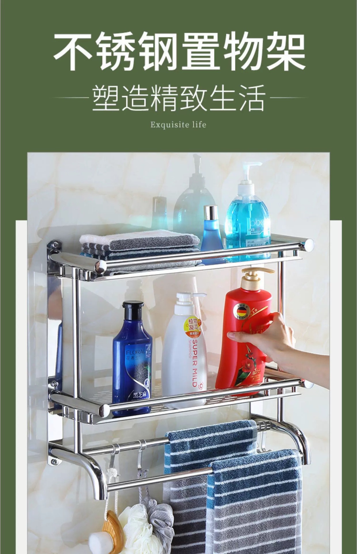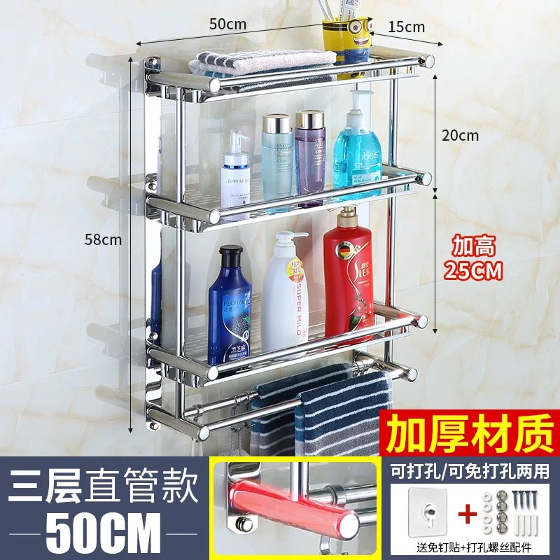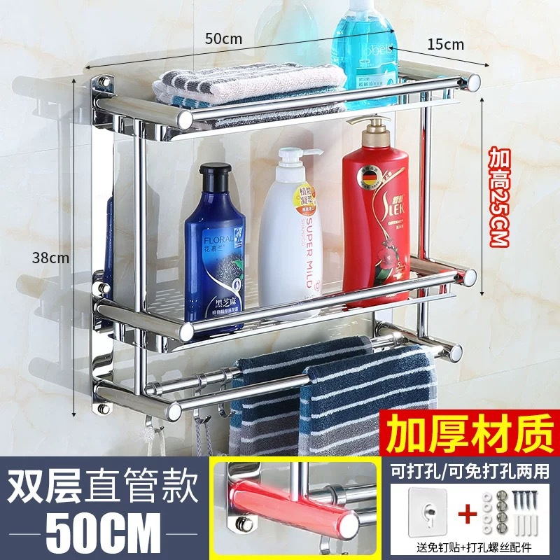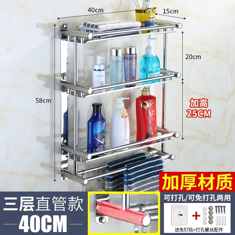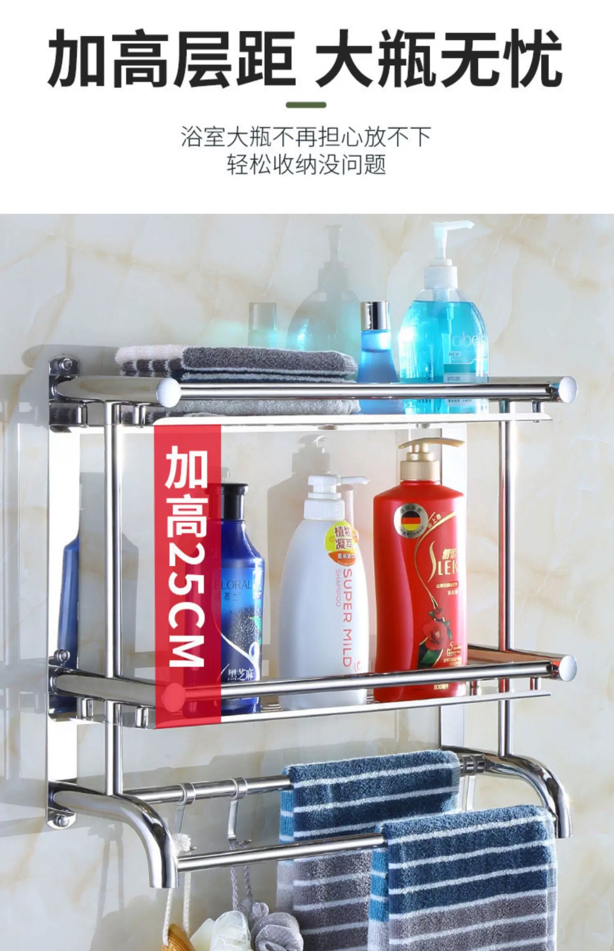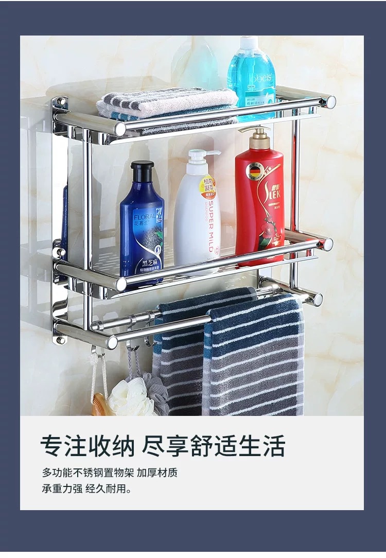 욕실 수건걸이 3층 펀치 없는 스테인레스 스틸 이중층 욕실 수납 선반 욕실 화장실 수납 벽걸이스토어 가기