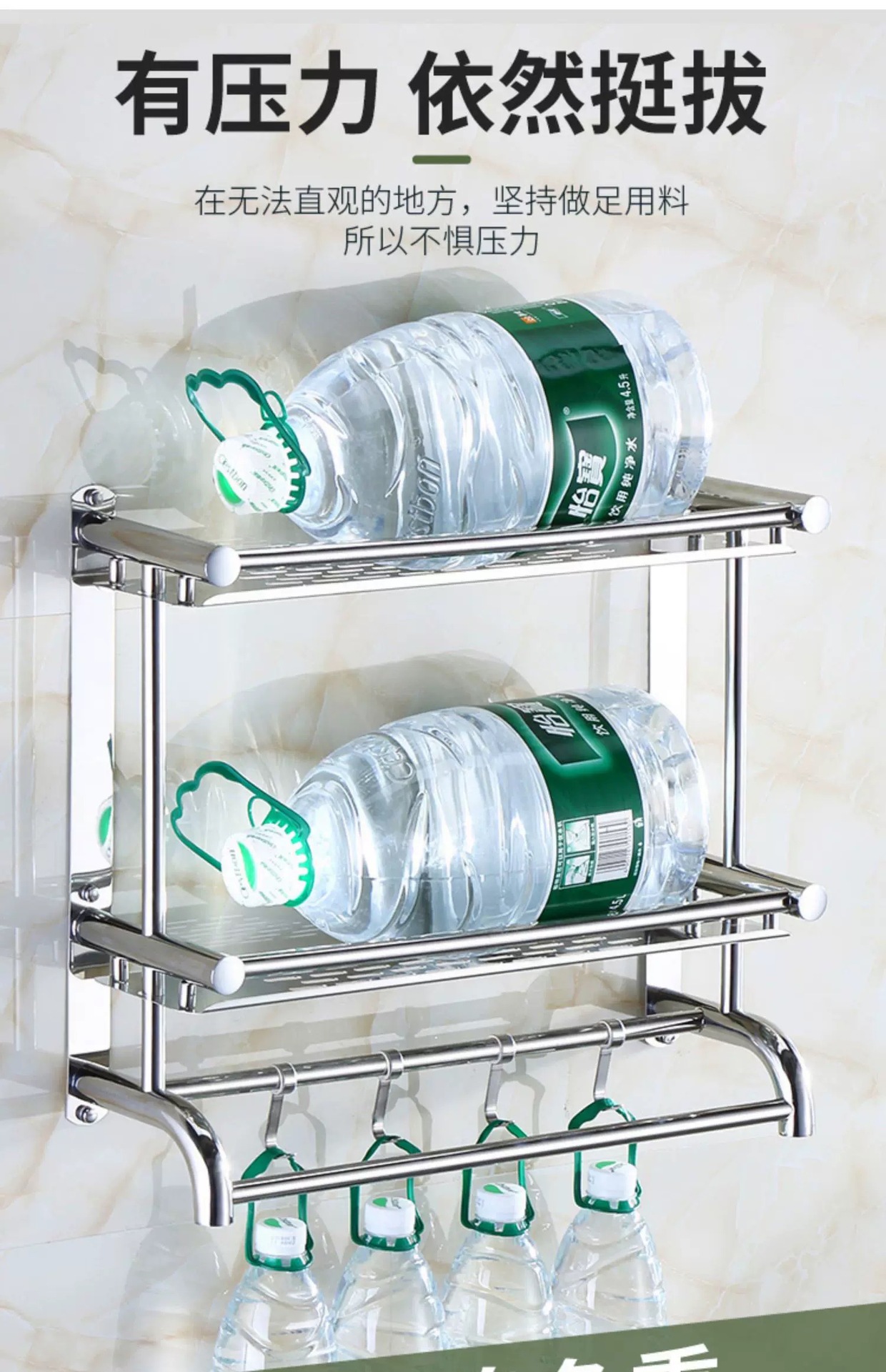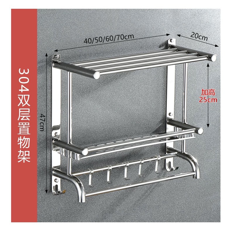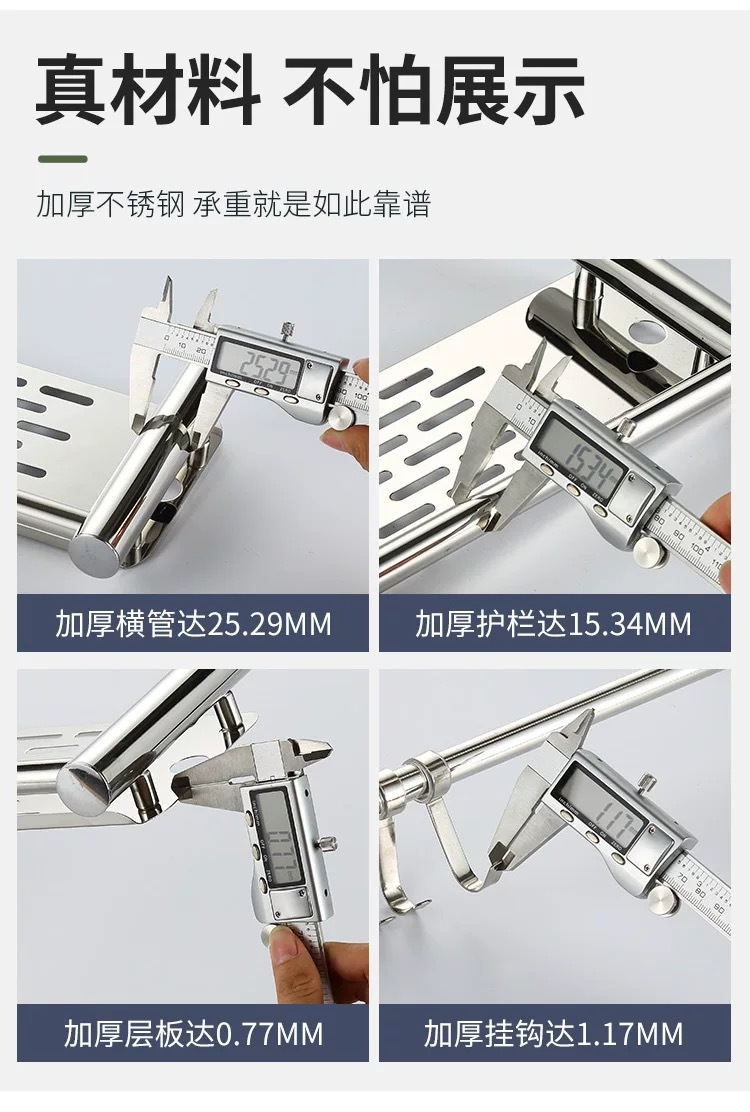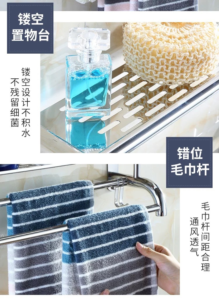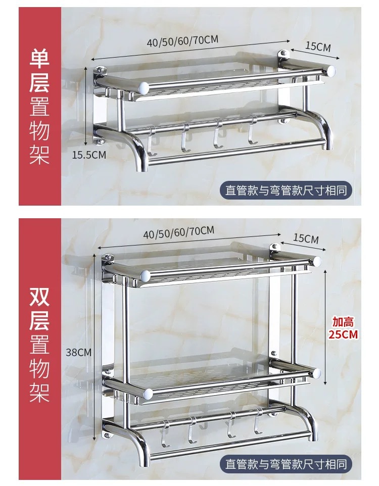 욕실 수건걸이 3층 펀치 없는 스테인레스 스틸 이중층 욕실 수납 선반 욕실 화장실 수납 벽걸이스토어 가기