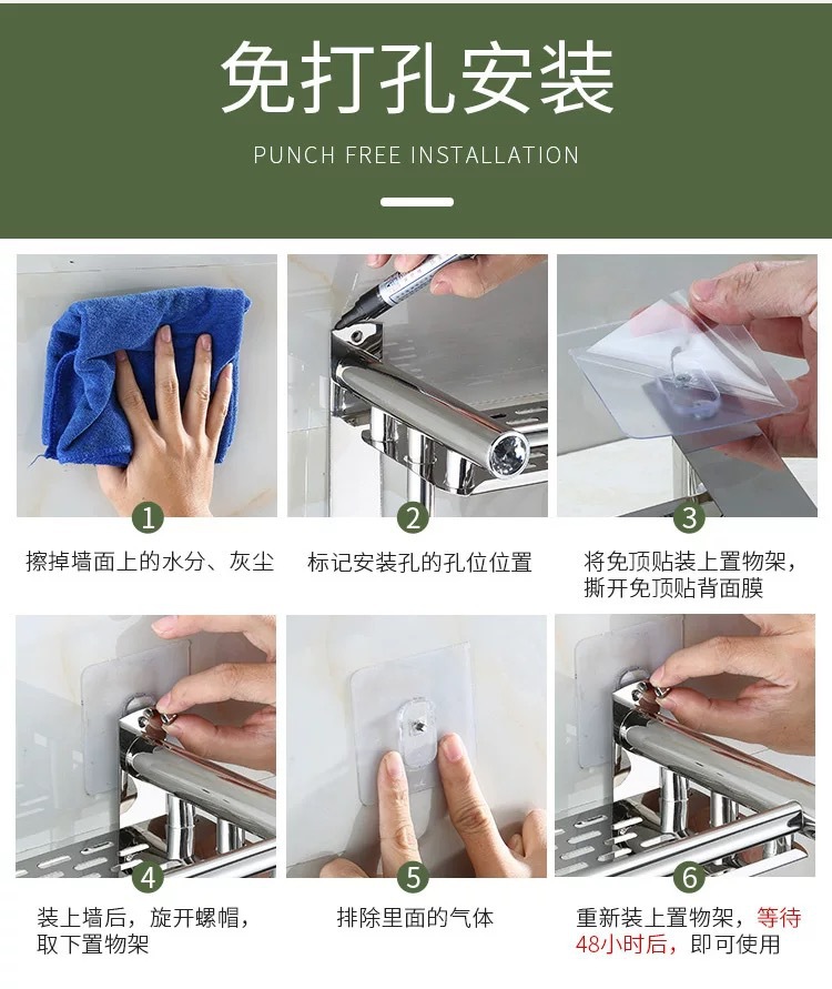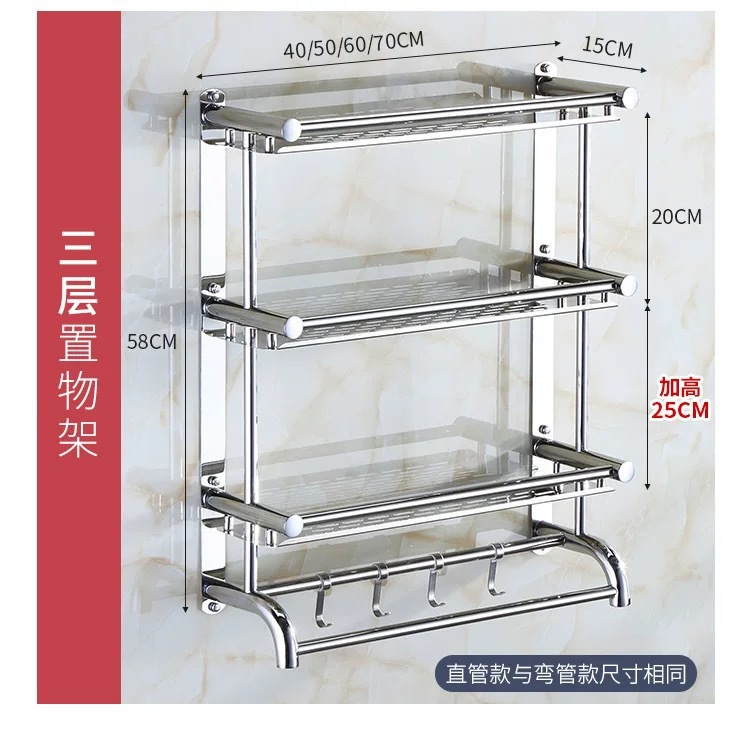 욕실 수건걸이 3층 펀치 없는 스테인레스 스틸 이중층 욕실 수납 선반 욕실 화장실 수납 벽걸이