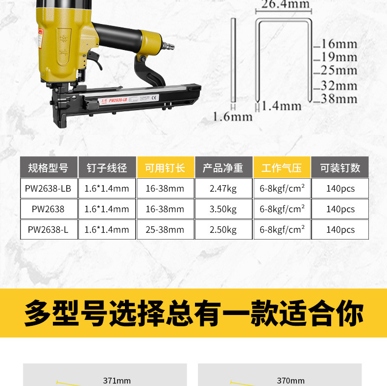 메이테 공압식 코드네일건 PW2638 대형 마네일건 U자형 네일건 가구 나무상자 전문 공압식스토어 가기