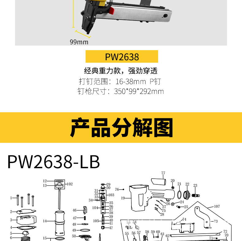 • PW2638-LB 코드 네일건