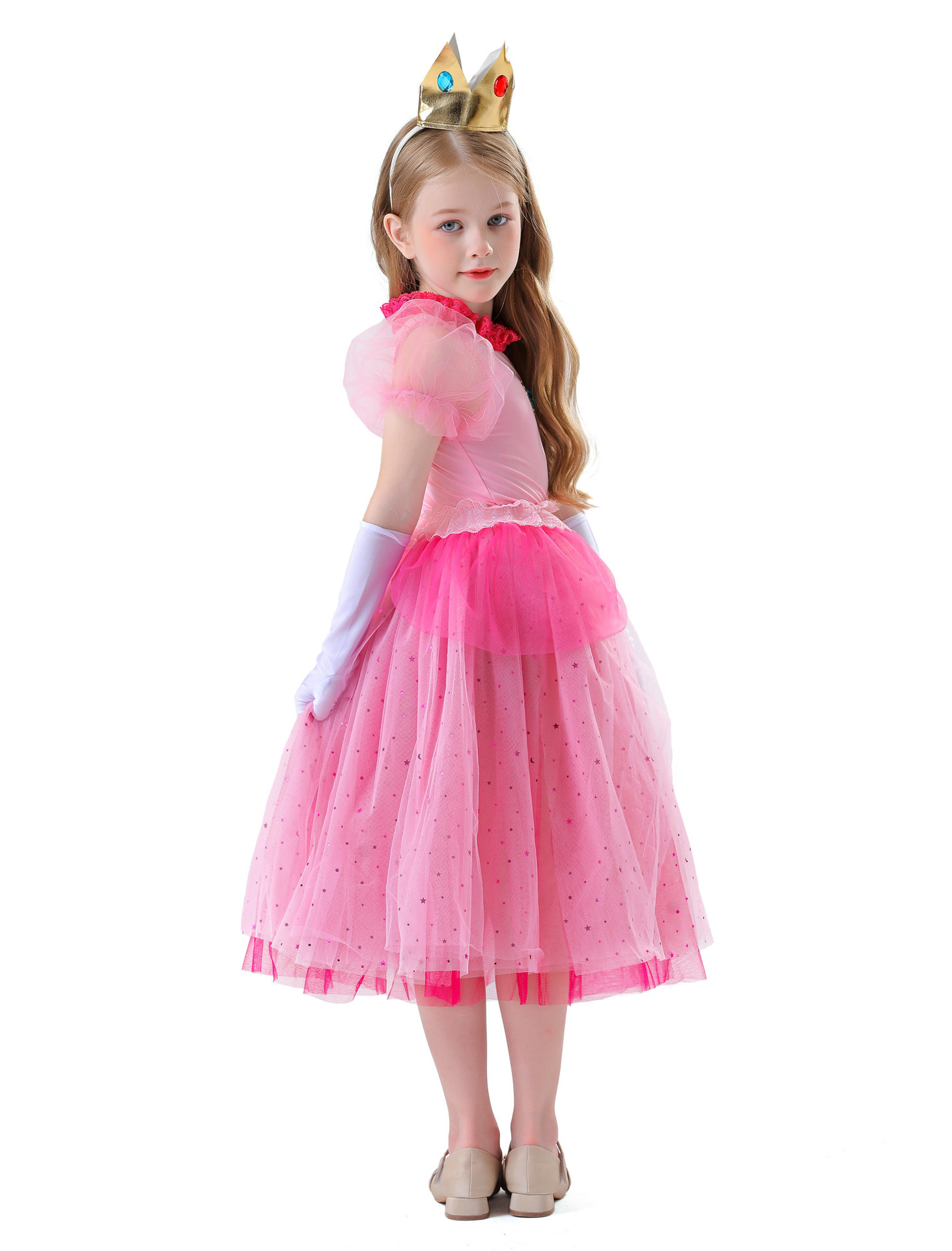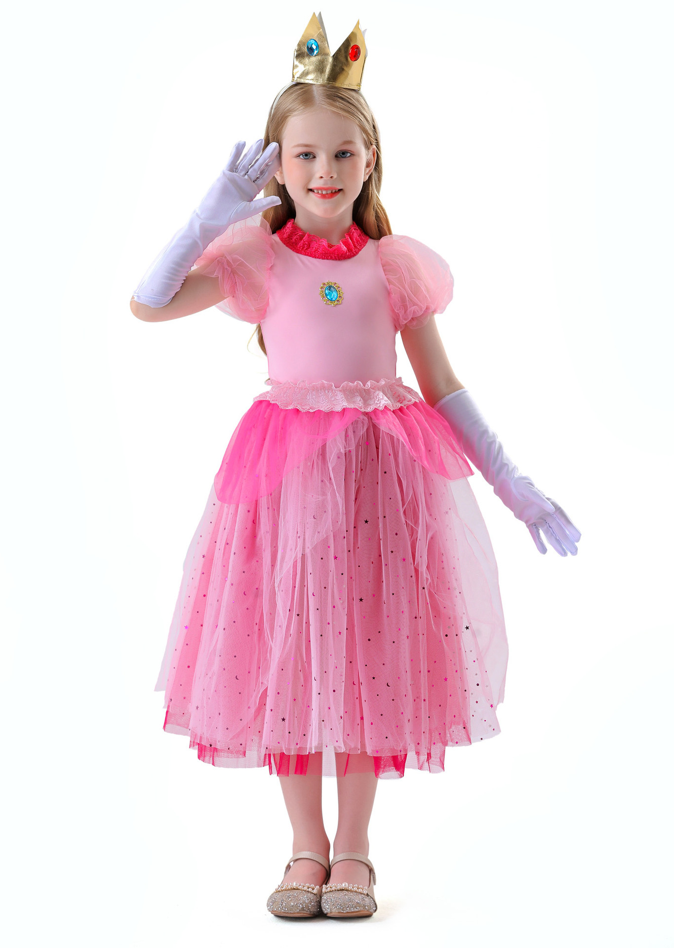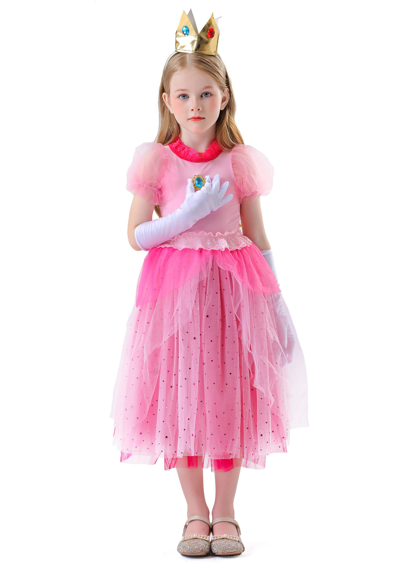 2025 새로운 슈퍼 마리오 어린이 공주 피치 드레스 코스프레 소녀 할로윈 공연 의상
