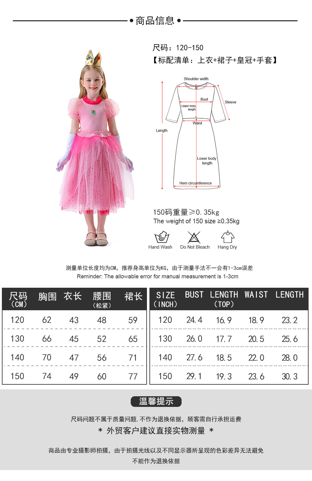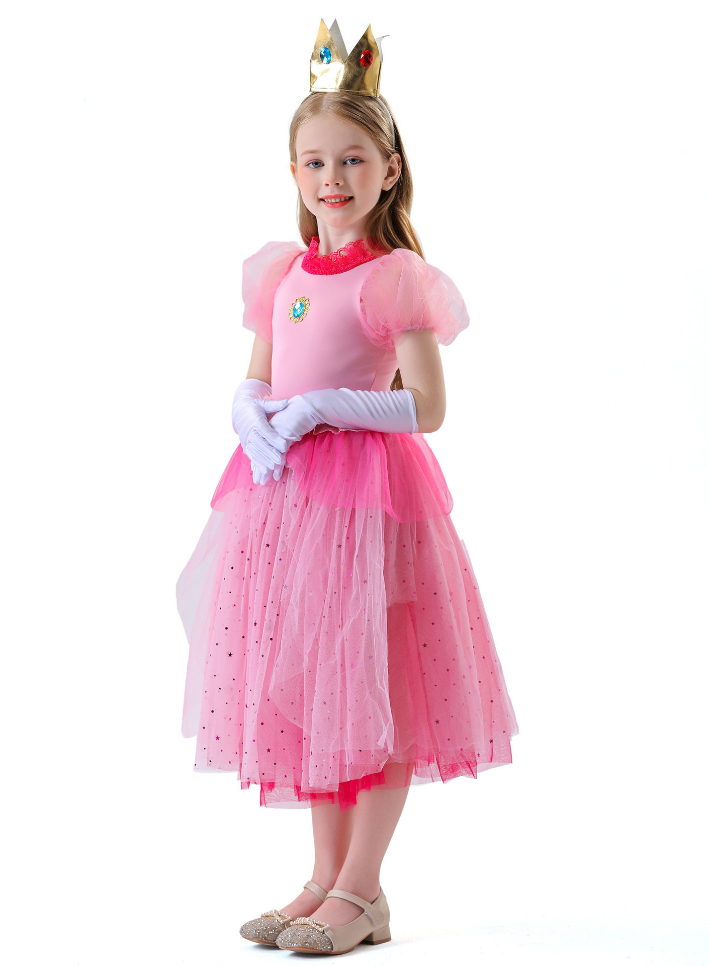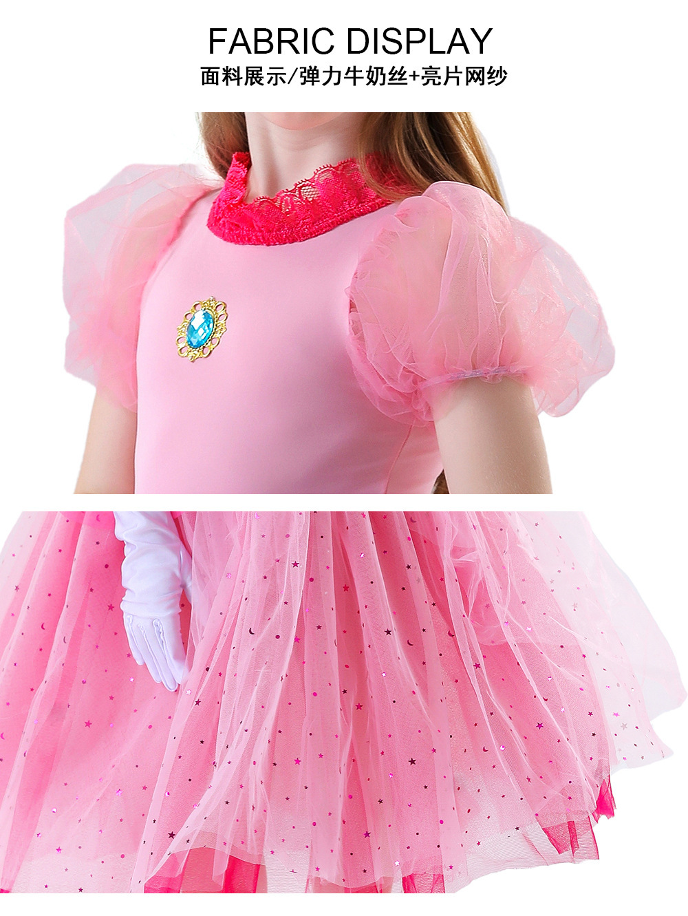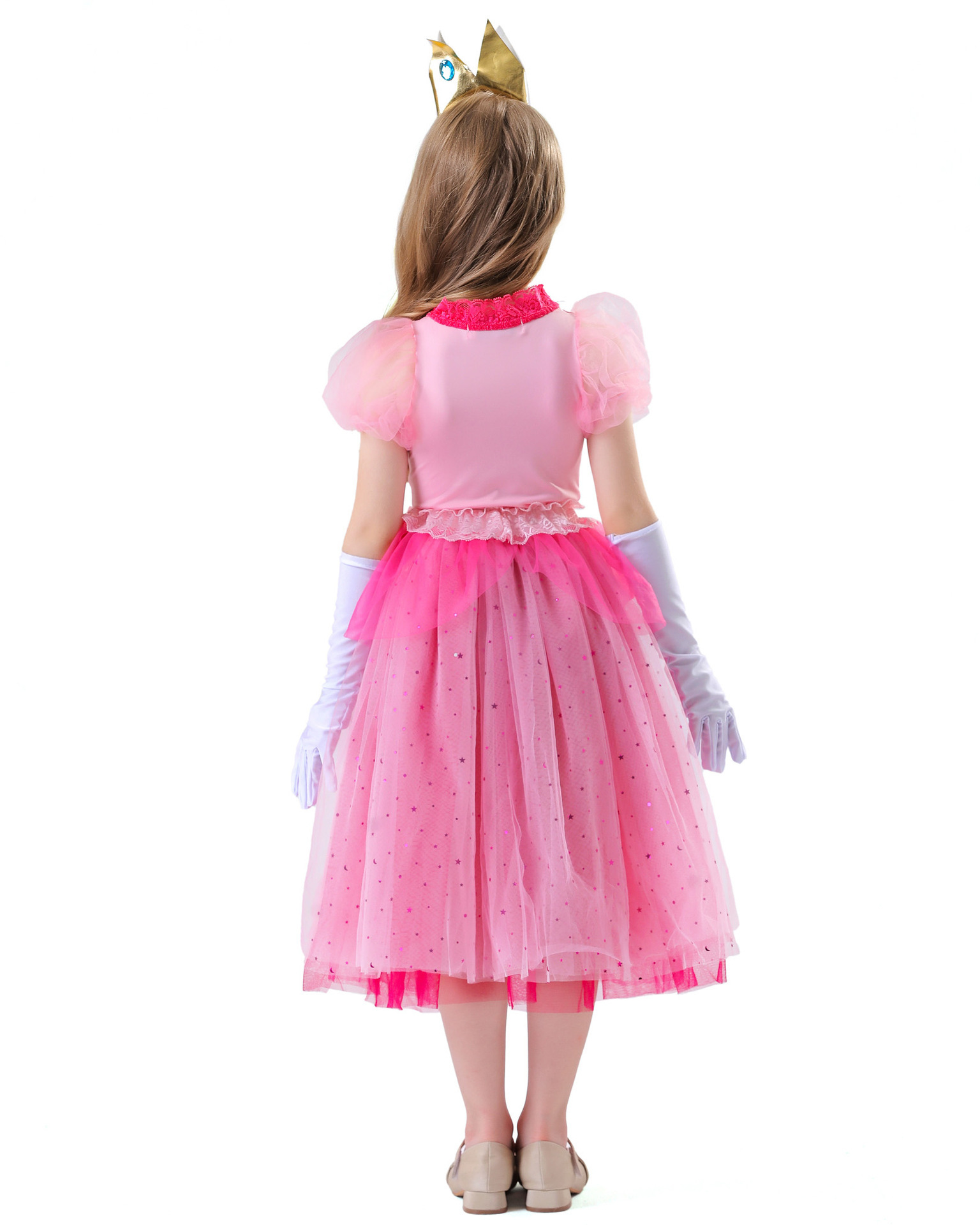 2025 새로운 슈퍼 마리오 어린이 공주 피치 드레스 코스프레 소녀 할로윈 공연 의상