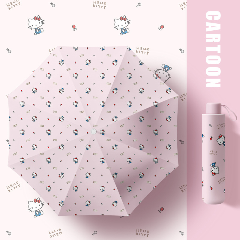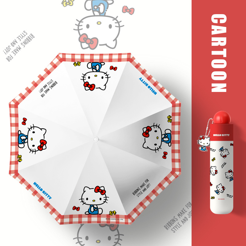 Sanrio hellokitty 헬로 키티 어린이 우산 만화 비닐 자외선 차단제 여성용 우산 비 또는 빛